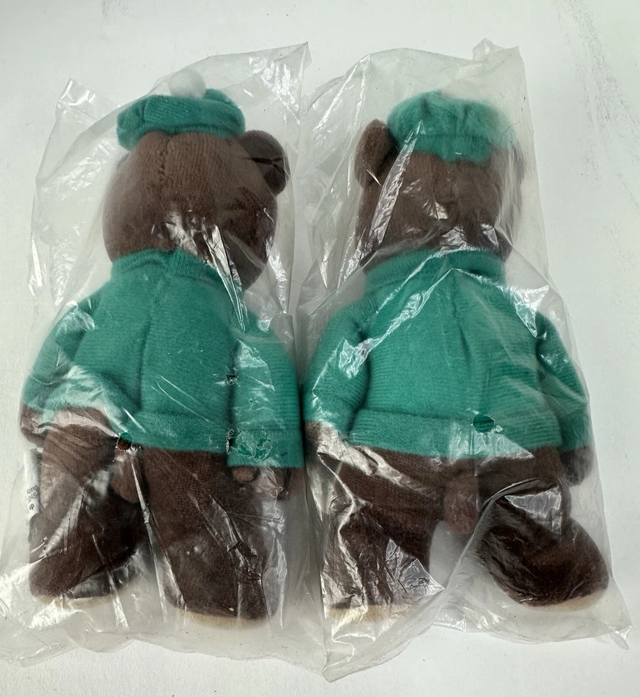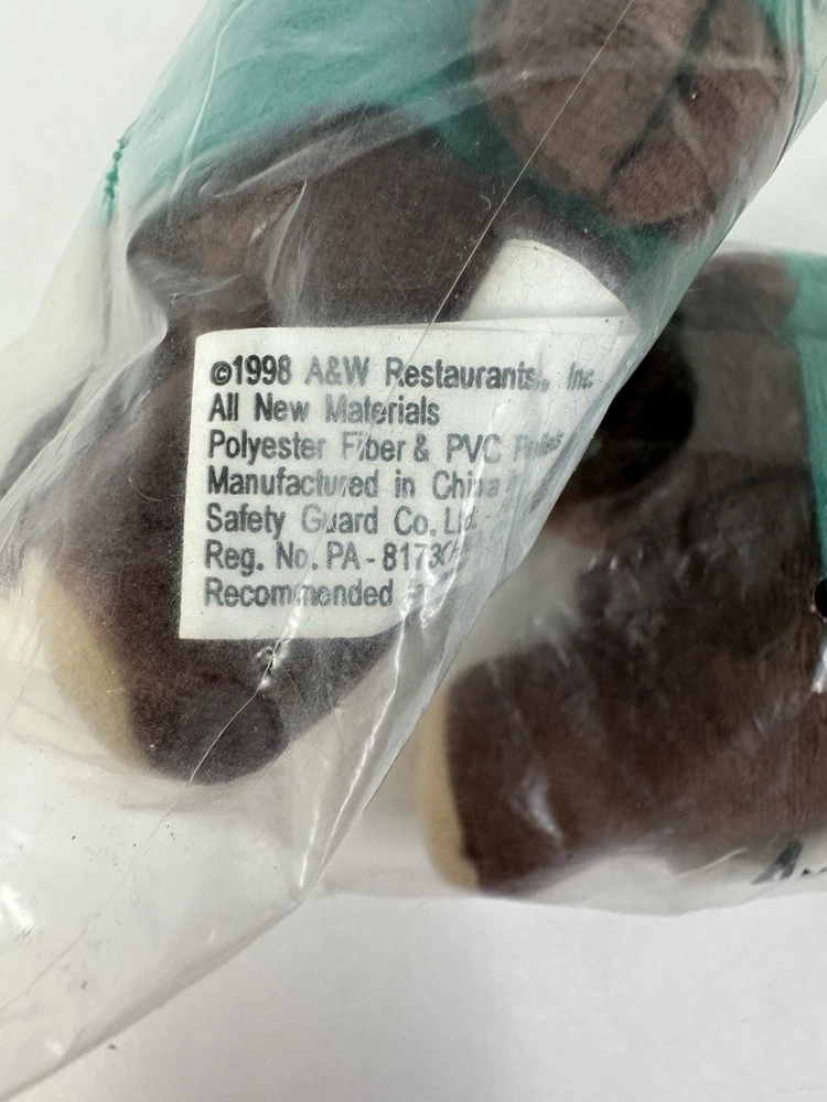 This is a set of 2 1998 A&W Root Beer Bear Rooty 6” Fast Food Toy Plush Stuffed Promo Item - NEW still in bags Please see all pictures for conditions since these are vintage.