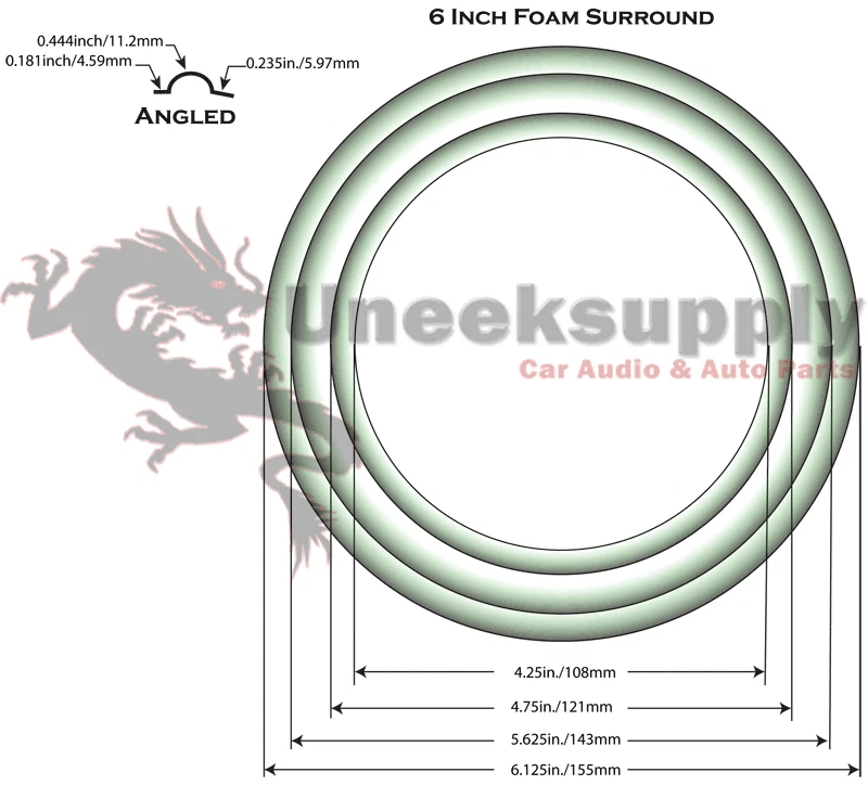 2 Radio Shack Realistic 6.5 Inch Speaker Subwoofer Surround Foams Repair Kit Part Number: 6.5 Speaker Surrounds Kit-15 Description General Features: 6.5" FOAM SPEAKER SURROUND KIT BRAND: IMC Audio USE: To Repair 6.5" Speakers or Subwoofers FEATURES: This package includes the following: 2 - 6.5" Foam Speaker Surrounds 1 - Bottle of Glue (Not Elmer's Glue but Special Glue for Maximum Hold) 1 - Instructions See Picture 2 for the Dimensions Additional Images