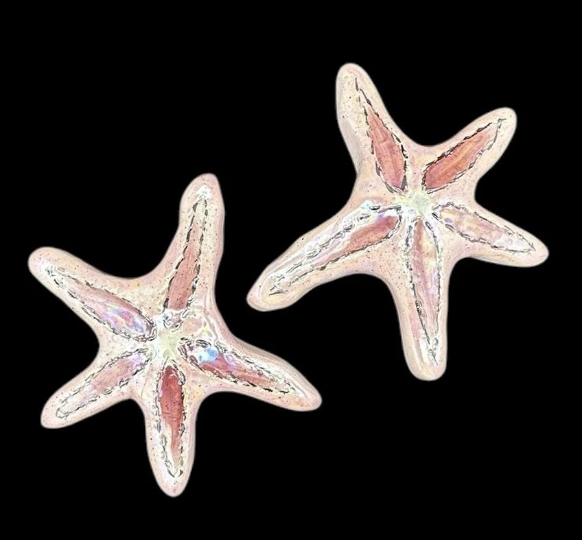 2 Blue Sky Clayworks Starfish Pink Wall Decor Sea Life Beach Ocean Y2K 2000 Vtg Crazing on the backs. A little crazing on the fronts. See pics. Approximately 5” wide.