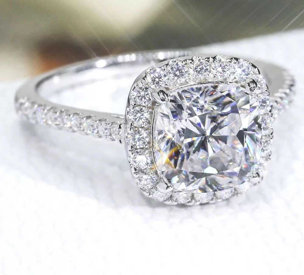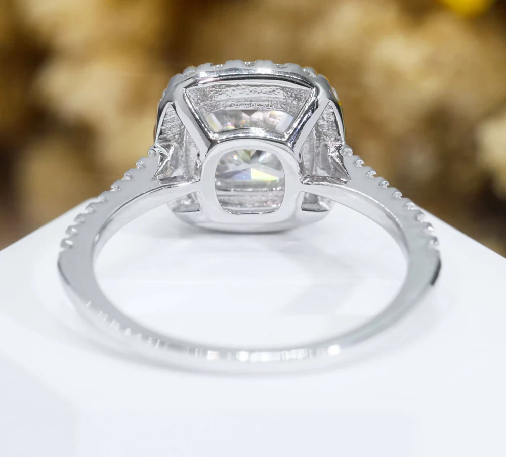 2 Ct Cushion Cut VVS1 Moissanite Engagement Halo Ring 14K White Gold Plated