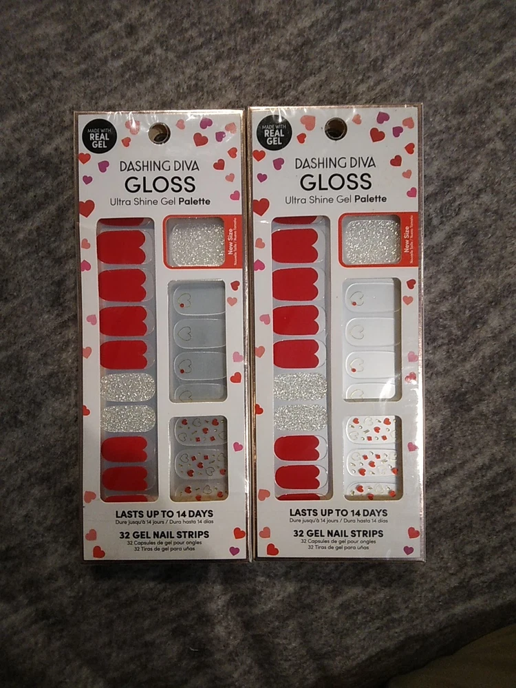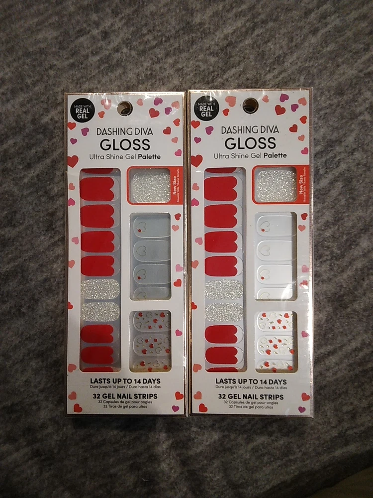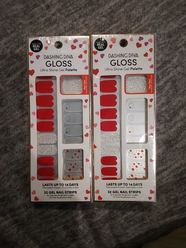 2 Dashing Diva Gloss Ultra Shine Gel Palette. After Glow 32 Nail Strips Each..