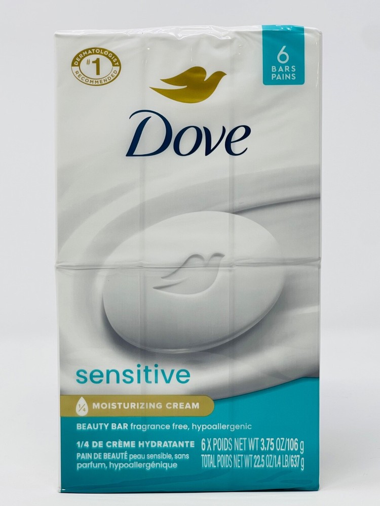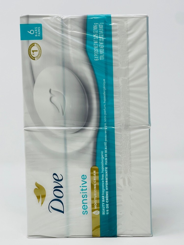 2 Dove Sensitive Moisturizing Cream Beauty Bar 6 Bars 3.75 OZ./ 106g All Items come from a smoke free / pet free environment. All items are 100% authentic / genuine from the manufacture. We do not sell any fake, knockoffs, imitation or fraudulent product. Feedback: We Strive for every purchase to be five-star rated. Please let us know how we can make yours a five-star rated one too!Our goal is to make every customer 100% satisfied with their order. When you receive your order take a minute to leave us positive feedback at eBay. Please do not simply leave a neutral/negative feedback if you have an issue with an item. If you are not satisfied, please let us know before leaving feedback. Please send us a message through eBay and let us know how we can earn your satisfaction! Please know that your positive feedback and 5 star rating on eBay are extremely important to us. The five-star rating system that eBay instituted is also important to the continued success of our business. When we receive positive feedback from you we will automatically leave positive feedback for you. Payment: Paypal is the preferred form of payment. It is the safest form for both the seller and the buyer.Payment must be made within 5 business days. After 5 days ebay will automatically open an unpaid item case.If you need more time to make a payment please just let us know,we are happy to work with you! Shipping & Handling: 1 Business day handling time. Packages shipped Monday through Friday. One Day Shipping is available, please ask for it before paying. Combine shipping: We do combine shipping on multiple items purchased. We will try our best to save you as much as possible. Ebay’s procedures for combined shipping: Add all the items that you would like by clicking "ADD TO CART” for each item. Once you have added all the desired items to your cart, press the "REQUEST TOTAL FROM SELLER" tab at the top of the cart on the right side. Next press "COMMIT TO BUY & SAVE". We will adjust the shipping prices and send you an invoice. International Buyers / International Shipping We ship worldwide. Please Note:Import duties, taxes, and charges are not included in the item price or shipping cost. These charges are the buyer's responsibility. Please check with your country's customs office to determine what these additional costs will be prior to bidding or buying. Please note that international packages can sometimes be held up in customs which may cause delays in receiving your item. Once the parcel is delivered to the post office, we have no control over any delays that may occur. eBay's estimated time of arrive does not include the time your order may take at customs and sometimes that can take up to 30-45 days. Returns- Satisfaction Guaranteed! ! If you are unsatisfied with any part of you purchase please let us know and we will do what it takes to make you a happy customer!Returns are accepted within 14 days of receiving your item.Only unused, unopened items with be accepted.Buyer is responsible for return shipping.Item must be returned in the same condition as it was received.Refund will be made via Paypal as soon as the item is received. Contact Us: Please Contact Us If You Have Any Questions or Concerns.You can reach our customer service thru the eBay messaging system by clicking on contact seller.We try our very best to answer all questions within 24 hours, except for weekends and Holidays which will be answered on our next business day.If you can't find a specific item for sale, contact us and we might be able to get it for you! Thank you so much for shopping with us !!!