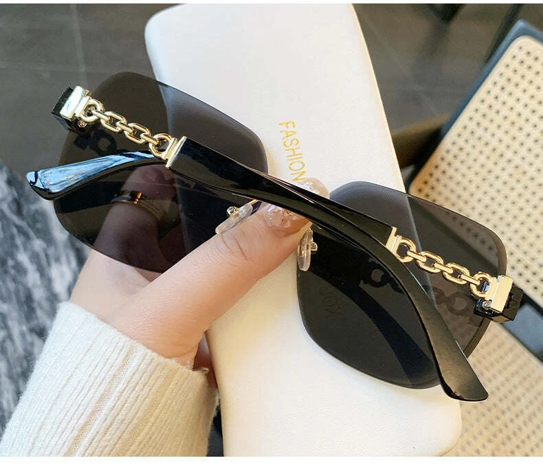Product information: Applicable scenarios: sun protection, travel, fashion, driving, party Frame material: Plastic metal Lens Material: PC Popular elements: chain Style: Elegant, casual, stylish OL, simple, European and American, affordable luxury style Packing list: Sunglasses * 1 Product Image:
