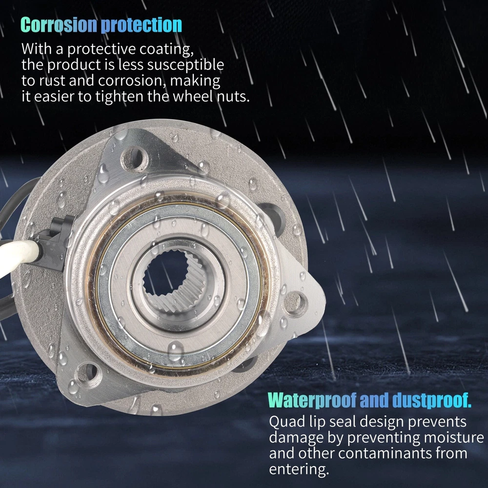 Specification OE Number: 515052 Item Weight(lbs): 9.48 Item Size(LengthxWidthxHeight:inch): 5.91x5.91x5.91 Number of Splines: 27 Knuckle Bolt Circle Diameter: 4.75 in. / 120.6 mm Lugs Included: Yes Material: Steel Finish: Polished,Rust Protected Type: Ball Bearing Wheel Stud Quantity: 5 Flange Shape: Triangular Hardware Included: No Hub Pilot Diameter: 3.94 in. C-Clip Included: No Fitment Type: Direct Replacement Knuckle Bolt Hole Size: M12*1.75 Flange Bolt Hole Quantity: 3 Flange Diameter: 5.88 in. Placement on Vehicle: Front Wheel Hub Bearings Unit: 2 Package Include: 2*Front Wheel Hub Bearings Bearing Generation: G3 Anti Lock Braking System Type: Cable Anti Lock Braking System: Yes Package Dimensions(LengthxWidthxHeight:inch): 5.91x5.91x5.91 ABS Sensor Included: Yes Bolt Size: 1/2-20UNF Bolt Pattern: 5 x 4.5 in. Bolt Circle Diameter: 4.5 in. / 114.3 mm Wheel Pilot Diameter: 2.78 in. / 70.5 mm Brake Pilot Diameter: 2.83 in. Flange Offset: 2.21 in. Bolt Thread Pitch: 1/2-20UNF Package Weight(lbs): 10.58 Fitment 1995-2001 Ford Explorer 2000-2009 Ford Ranger 2001-2005 Ford Explorer Sport Trac 2001-2003 Ford Explorer Sport 2001-2002 Mazda B3000 2001-2009 Mazda B4000 2003-2009 Mazda B2300 1997-2001 Mercury Mountaineer Features & Benefits 1.Material & Qaunlity - Wheel Hub Bearing Assembly is specially quality-tested and engineered to the highest of manufacturing standards, meet or exceed OE quality. The induction-hardened raceway provides superior load-bearing capacities and service life. Worry-free of abnormal noises or faulty connection. 2.Main Function - Hub bearings can fix the tire and support the gravity of the whole body, provides precise guidance for the rotation of the hub. wheel hub bearing enables the wheels and attached components to rotate smoothly and keeps the wheel attached to the car. High quality wheel hub assembly make you enjoy your vehicle in a safe and smooth 3.Premium Features - Our wheel bearing assemblies manufactured by high-quality materials for ensuring precisely matches, durability, reliability and premium performance. The high-quality seal design provides superior anti-pollution protection, ensuring that the hub bearings are clean, long lasting and minimizing noise and vibration. Wheel bolts with protective coating that helps prevent rust and corrosion and makes it easier to disassemble and properly twist the wheel nuts 4.Easy To Installation - Assembling has excellent performance, precise overall structure, easy and quick installation 5.Corrosion Protection - Wheel hub bolts with protective coating, not easy to rust and corrode, and easier to tighten the wheel nuts. Better seal design, which lasts and minimizes noise and vibration. Each item is factory quality inspected according to OEM production standards and meets the highest standards. 6.Keeps Water And Dirt Out -- Quad lip seal design inhibits damage by keeping moisture and other contaminants out 7.Service & Warranty - I-year warranty for all Wheel Hub Bearing Assembly, well-packaged, any problems please feel free to contact us first, let's make it right!