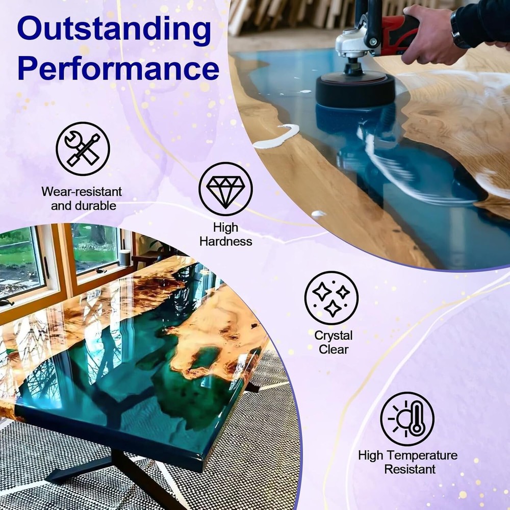 2 Gallon Crystal Clear Epoxy Resin Kit, High Gloss Casting and Coating for River Table Tops, Art Casting Resin, Jewelry Making, DIY, Tumblers, Molds, Art Painting, Fast Curing Resin Crystal Clear and High Gloss: Just mix 1:1 ratio by volume, even new user can make crystal clear artwork and set hard as a rock. Premium formulated to be mixed with any kinds of resin pigment for vivid, stunning results. Resistant to yellowing from UV exposure, keeps your beautiful resin epoxy art always like new Self-Leveling and No Bubbles: epoxy resin is self-leveling and self-degassing, which allows you to create a transparent and smooth finish. Say goodbye to unsightly bubbles, our water-like quality minimizes them, leaving you with a solid glass-like finish that's second to none Fast Curing and More Safe: upgraded epoxy resin formulation. 30 minutes of work time at room temperature 75-80°F to produce your finest work within 8 hours! Specifically formulated for artists with low odor, user friendly for both beginners and pros Ideal for Small and Large Projects: Ideal for all casting, coating, and art projects, including cutting boards, coasters, home decorations, countertops, bartops, resin crafts, resin jewelry, coated artwork, acrylic pour paintings, geode paintings, molds, and river tables Help You Express Your Creativity: provide a detailed user manual to help you understand how to use it. Its stable nature allows you to focus on unleashing your creativity. With , you can create amazing resin artworks Welcome to !