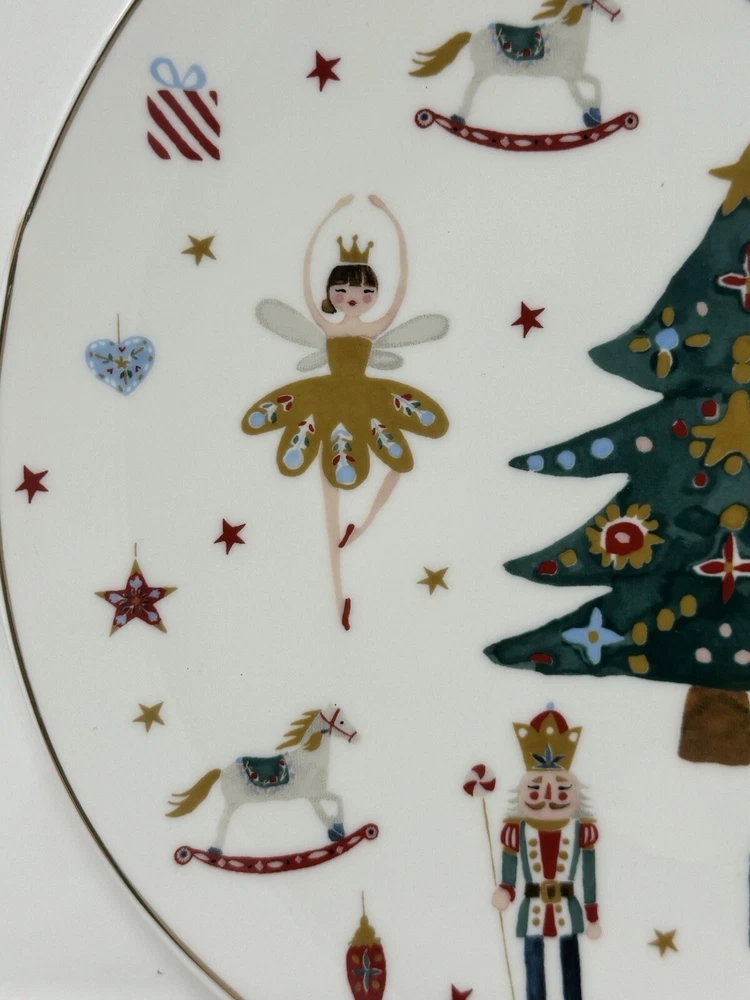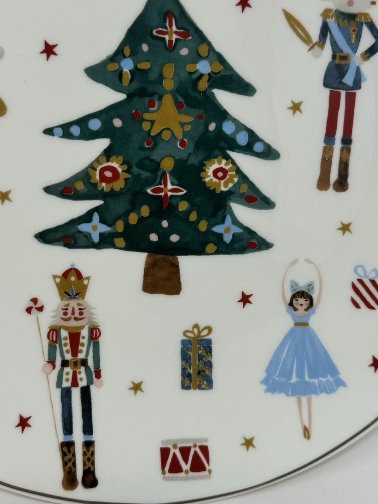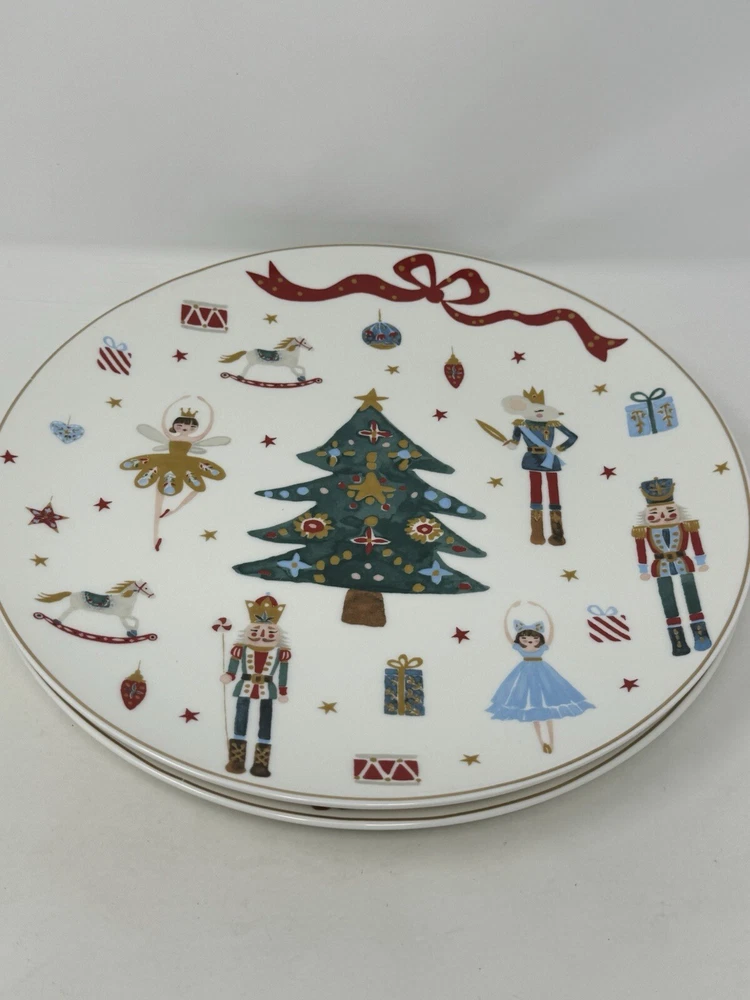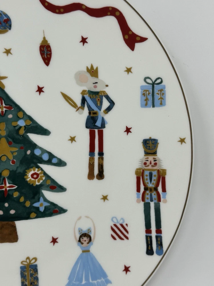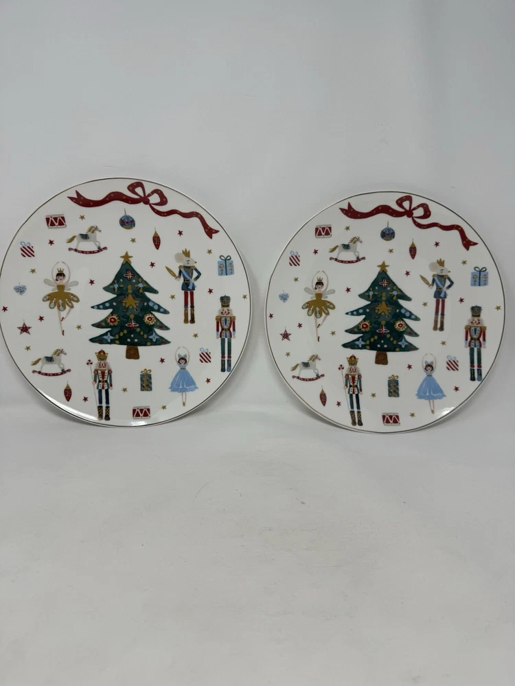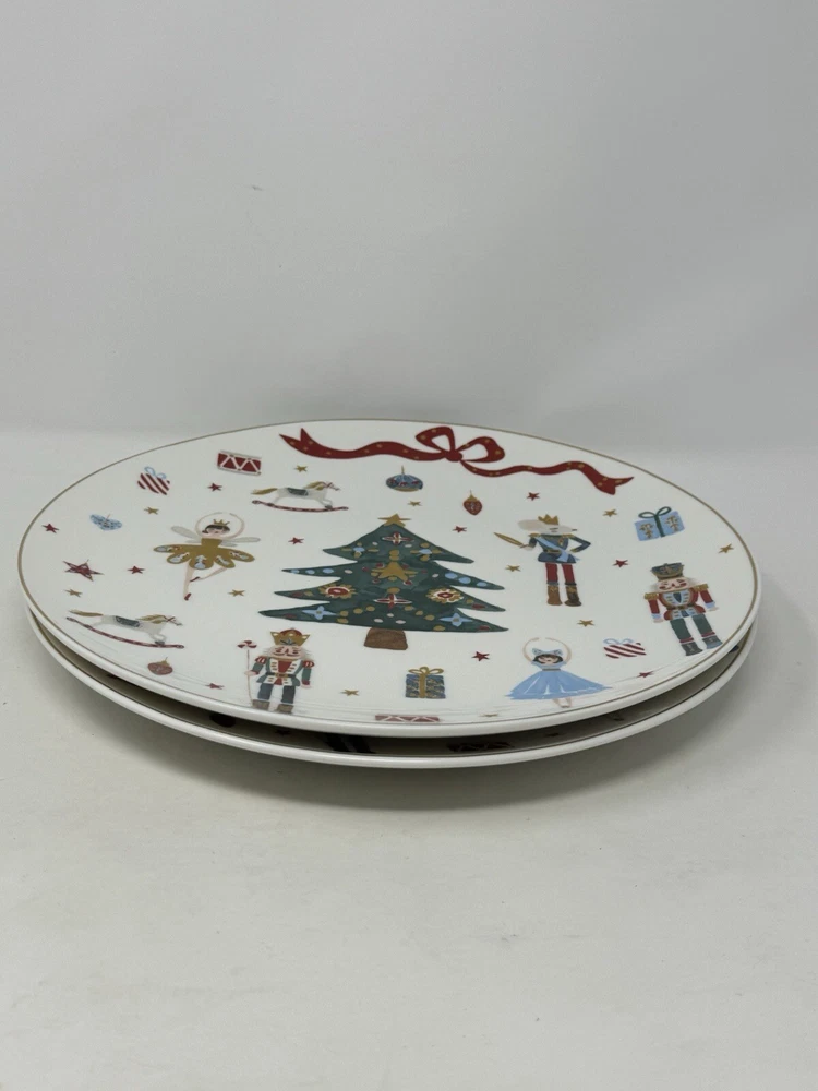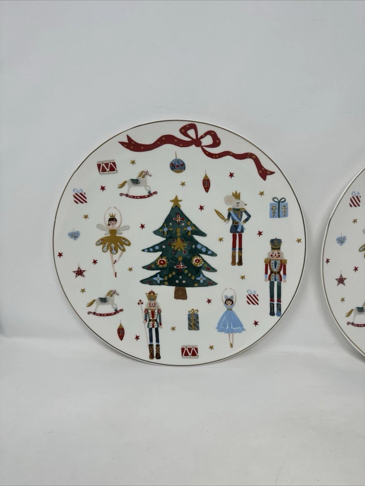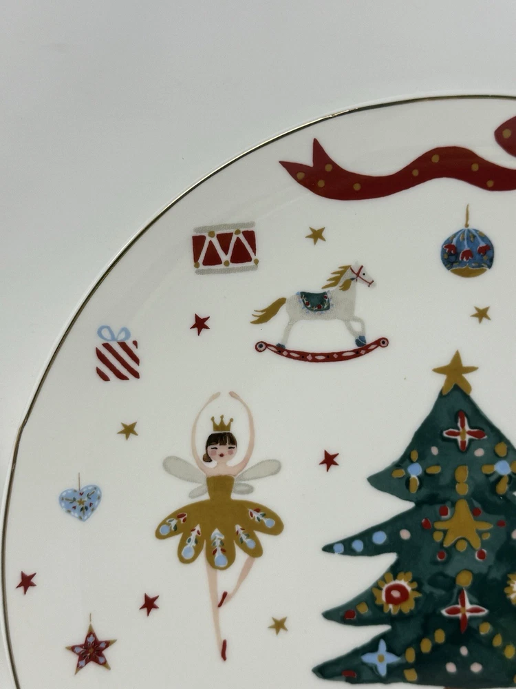 Add a touch of elegance to your Christmas dinner table with these two-piece Grace Teaware dinner plates. The round plates feature a festive Christmas celebration pattern with a glossy finish and gold trim. Made of high-quality porcelain, they are durable and dishwasher safe up to 140°F. The plates are perfect for stacking and displaying, with a diameter of 10.5". These original art pottery plates are produced using pottery techniques and are printed with the brand's backstamp. They are perfect for any Christmas occasion and make a great addition to your decorative cookware. Get your hands on these stackable and dishwasher safe dinner plates today! brand new 2024 release! very hard to find! amazing details on these! great to use for display! limited quantity! please follow our store for more