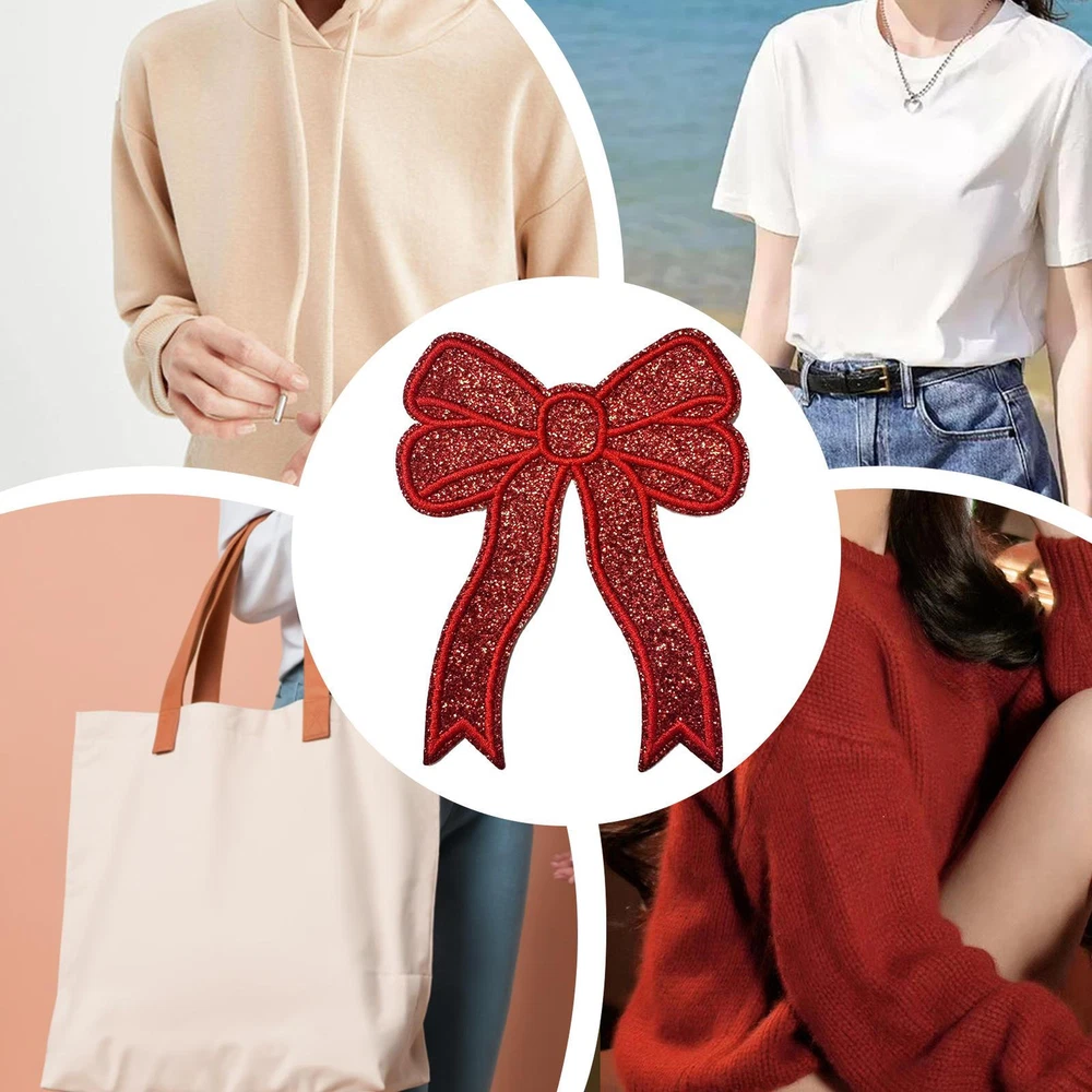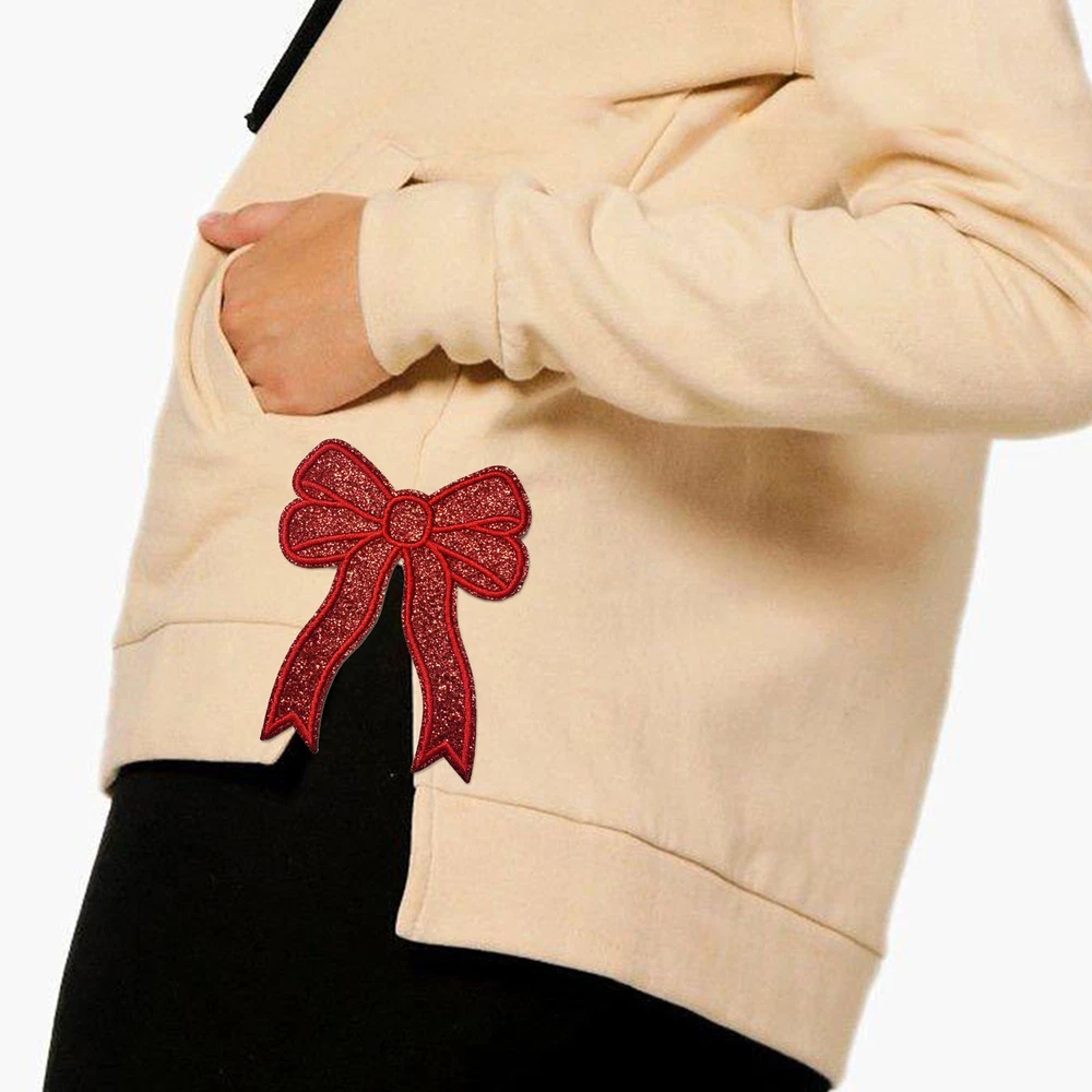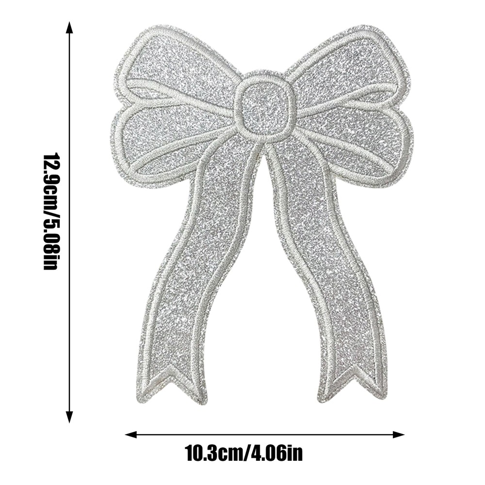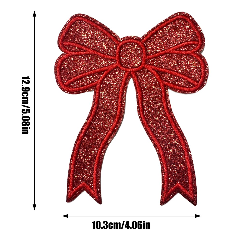 Bullet Points: Trendy Accessory: Our iron on bow patch is a versatile solution for enhancing your apparel with ease. With its effortless application, it's perfect for both quick repairs and decorative enhancements, making it suitable for any style-conscious individual Eye-Catching Design: Get that extra charm with iron-on bow patches. Apply on your clothing and backpacks for a cute and stylish touch. The sparkling sequins and shiny finish will make you shine and stand out among the crowd Reinvigorate Your Fabric: Our iron-on bow patch adds a touch of brilliance to your fabric projects. Make your crafts stand out with a shimmering and elegant finish that's sure to turn heads Wide Applications: Perfect for adding a chic touch to sweatshirts, jeans, jackets, bags, socks, shoes, and more, this iron-on bow patch ensures your items stand out with elegance Convenient to Use: Add charm and personality to any outfit with our iron-on bow patch. Whether you want to show off your side or give an old piece of clothing life, this patch can be simply ironed on or sewn on for high durability and convenience Add a touch of style to your clothing and accessories with our bow embroidered patch. Specification: Product size: about 12.9x10.3cm/5.08x4.06 inches Product material: cloth Pack List: Iron on bow patch*2