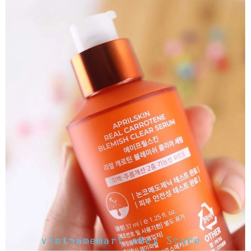 Free eBay listing template designed by vietnamemart Aprilskin Real Carotene Blemish Clear Serum 37ml Acne Cleansing Essence Brand : Aprilskin Origin: Korea of Republic Contains: Jar of 37ml (1.25 fl oz) Expiry : 2 years from manufacture date Condition : New Packing : 2 Jars Description: Made with 20,000ppm niacinamide and beta-carotene, Real Carrotene Blemish Clear Serum contains 10 times more carrot juice and carrot protein than version 1.0. Stops the acne cycle and speeds up skin cell regeneration. Helps soothe your irritated skin, while preventing breakouts from returning. Upgraded with dual function for a more powerful brightening and smoothing effect! With our patented "Sebum Cleaner Complex", it will also control the oil and moisture composition of your face! Using: 1. Use morning and night after cleansing and toner 2. Using 1-2 presses, gently apply the entire face from the center. 3. Apply 2-3 more layers on sensitive areas Skin care routine: 1. Carrot Acne Foam Cleanser: Deep cleansing face wash 2. Real Carrot Blemish Clear Serum: Clear blemishes and acne Contact us If you require any further information, feel free to contact us. We will respond to you within 24 hours and do our best to help you out! We encourage our customers to contact us with any questions or concerns! We'd like to be sure you are completely satisfied with your purchase. SHIPPING - We ship by VIETNAMESE POST OFFICE to WORLDWIDE - We endeavour to pack your orders carefully and ship your items within 0 3 business days (normally within 24 hours) after receiving your payment. We ship internationally on every day from Monday to Saturday to ensure prompt delivery. INTERNATIONAL SHIPPING - Most times you will receive your order within 10-25 working days after we transfer your package to the delivery company. Some countries like Russia, Brazil, Canada or some European countries may take an additional 2 weeks for arriving. - Please note that international shipping may incur customs fees, including import duties and taxes. These charges are the responsibility of buyer and are not included in our rates or shipping charges. When ordering from our website, you are considered an importer and must comply with all national laws and regulations upon receipt of the products. - Please check with your country's customs office to determine what these additional costs will be, prior to bidding or buying. PAYMENT - We only accept PayPal or buyers can pay credit card through PayPal. RETURN - Accept return or exchange within 60 DAYS ONLY if items have been unopened, unused, in original packaging and are resellable or if the item is determined not as described or defected or damaged during shipment. Buyer will be responsible for their own shipping fee to return the package back to us. FEEDBACK - Your satisfaction and feedback are very important to us. Please leave positive feedback if you are satisfied with your item and service. If you have any problems with your item or service, please contact us first before you leaving any feedback . We will do your best to solve problem with you . Thank you for your understanding. - Please contact us via eBay messages if you have any questions. You will get a response within 24 hours. Thank you for shopping with us!