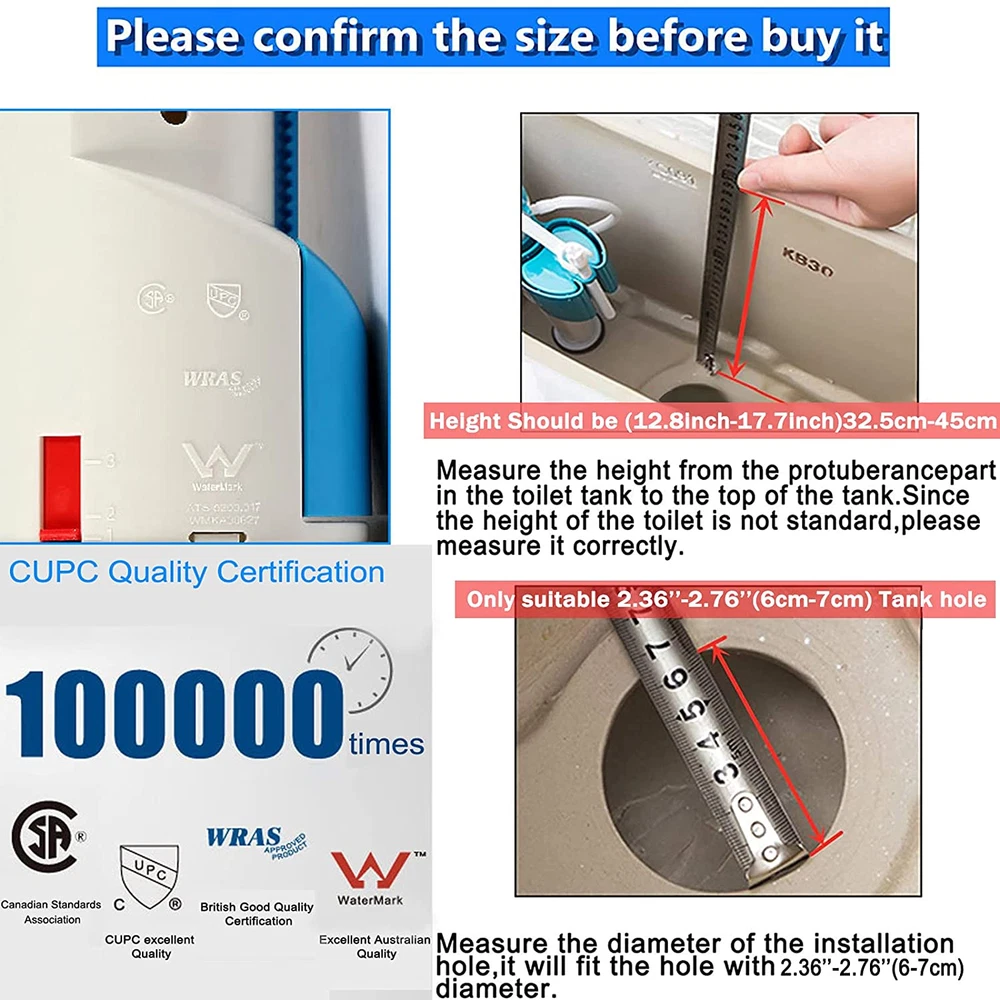 ✔UNIVERSAL DESIGN: Flush valve repair kit suitable for most 2-Inch 2-piece with top push button toilet. ✔MEASURE TWO SIZE: This item is only applicable to 2.36"-2.76" (6cm-7cm) Toilet tank hole Diameter,and it cannot be used if it exceed this size.Measure the Tank Height: Height Should be 12.8"-17.7"(32.5cm-45cm),Please measure the size including ceramic cover for water tank, otherwise , it won't fit. ✔DUAL FLUSH WATER-SAVING TYPE: Dual flush water-saving type: for all drainage you can adjust water in the water tank; for half drainage, you can use the water in the water tank to adjust the silicone seal, it with good sealing effect, will not have leaking. ✔QUICK AND EASY INSTALLATION: Our toilet drain valve is suitable for most toilets, easy to install in 10 minutes or less, and saves time and effort,get your toilet flushing like new again. ⚠NOTES: Please check the size in the second image before buying. Fit For TOTO THU435 flush valve,can works great with the old part THU224 and most 2 inch two pieces toilet. Product Description PROFESSIONAL TOILET REPAIR SHOP Get Rid Of Toilet Issues QUICKLY! Get the Solution for hissing and leaking TOTO toilets. Fixes leaky TOTO flush valve, running toilet, double flush, worn TOTO toilet flush valve. Best replacement for the old, leaky TOTO THU435,THU224 flush valve. Installation drawing How to Install? 1. Turn off the water valve to the toilet. 2. Hold the button down and drain out the water from the tank. 3. Remove the old flush valve. 4. Replace the new valve in the same place. If the button torsion bar is too long you need to cut the button to the right length. 5. If the original button lever is too short to be used, you will need to purchase a new button.We all have sell.ASIN:B091FC5JBP. 6. Done! Does this work with my toilet? How to confirm if it works? Turn off the TOTO toilet angle valve. Hold the button down and drain out the water from the TOTO tank. Removing the TOTO 2-piece toilet's water tank. Measure the diameter of the flush valve drain opening at the bottom of your tank. Confirm whether the diameter is 6cm-7cm (2.36inch-2.76inch)(about the size of a baseball).And the hight Should e 32.5cm-45cm (12.8inch-17.7inch)If so, congratulation on finding the perfet toilet flush valve. Fits for 2 pieces & 2 Inch Flush Valves Toilets Compatible with TOTO THU435 THU224 flush valve Other brands can also be used if the height is right, the tank diameter is right, and it is the top button Easy installation Easy installation in a few minutes Fit for Compatible with TOTO THU435 THU224 flush valve Fits 2 Inch, 2 pieces and top button flush valve toilets. The the tank height should be 32.5cm-45cm (12.8inch-17.7inch) Dual flush water-saving type For all drainage you can adjust water in the water tank. For half drainage, you can use the water in the water tank to adjust the silicone seal, it with good sealing effect, will not have leaking