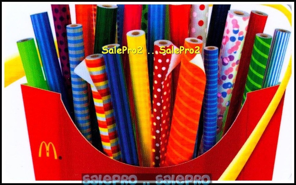 2x McDONALD CHRISTMAS WRAPPING PAPER ROLL FRENCH FRIES COLLECTIBLE GIFT CARD LOT CARDS HAVE ZERO BALANCE & FOR COLLECTOR'S ONLY BRAND NEW, NEVER SWIPED (once) , USED or LOADED CONDITION Please visit our eBay store for more Collectible Gift cards ... Great Variety Shipping : 2.55 CANADA, 2.95 USA & 4.95 International (Worldwide) We ship rapidly on daily basis in Safe & Secure packaging to all destinations ~ Additional item shipping fee is 25¢ (Canada & USA) as well as (International) ~ We ship all orders within 24-48 hours as soon as your payment reaches us cleared All pictures are Watermarked with our User id or Store name to prevent image piracy Paypal is our online payment method, other methods are available during the checkout