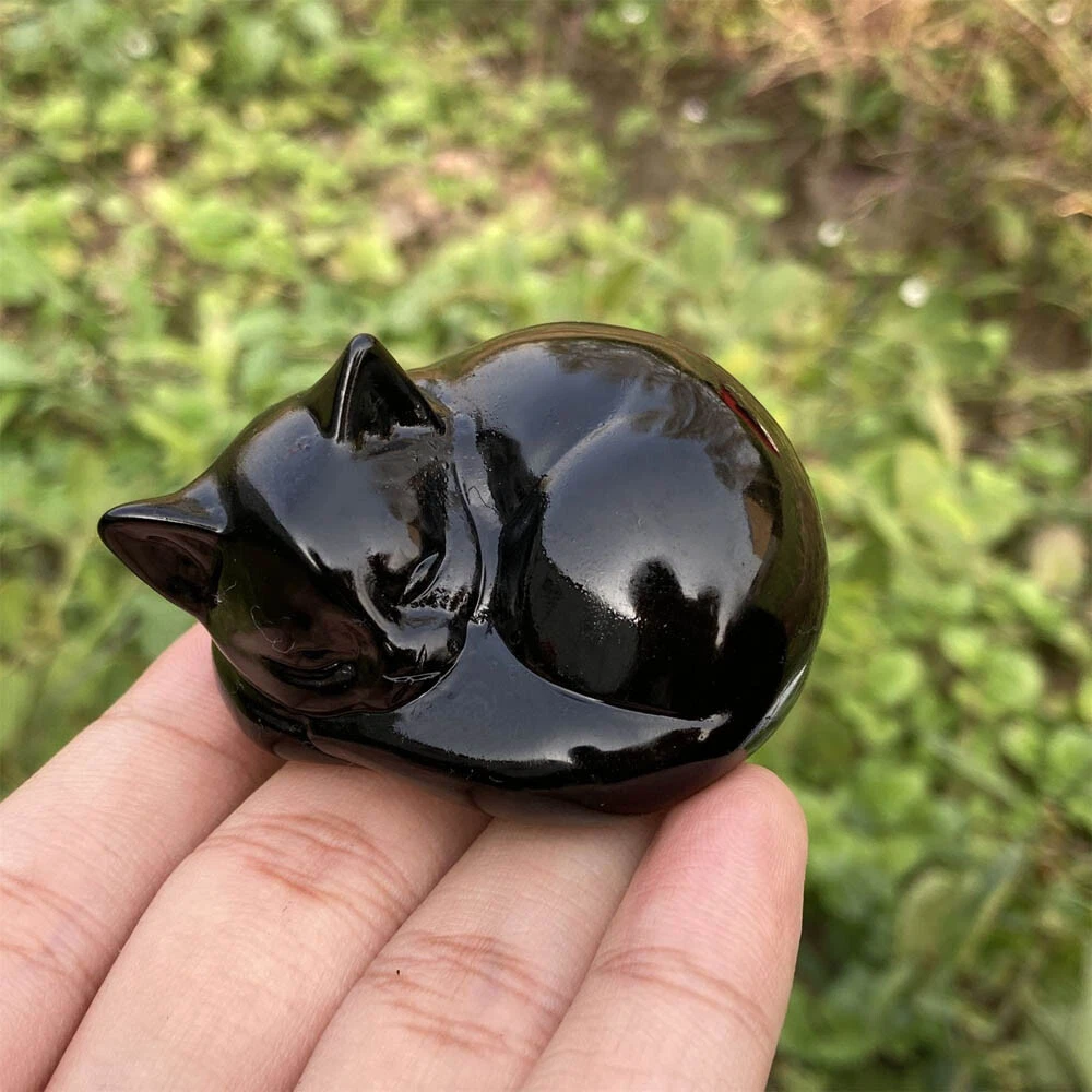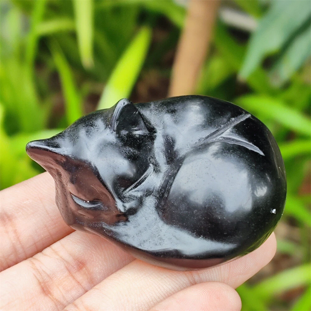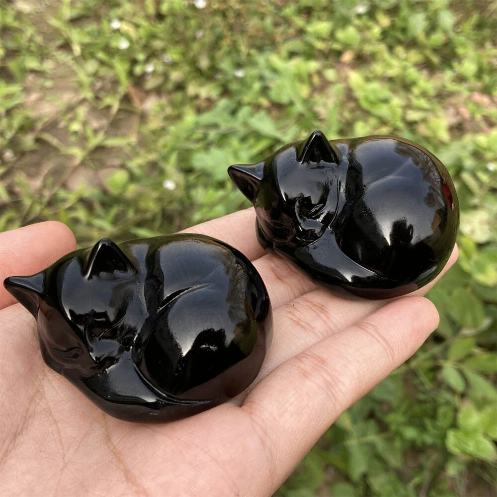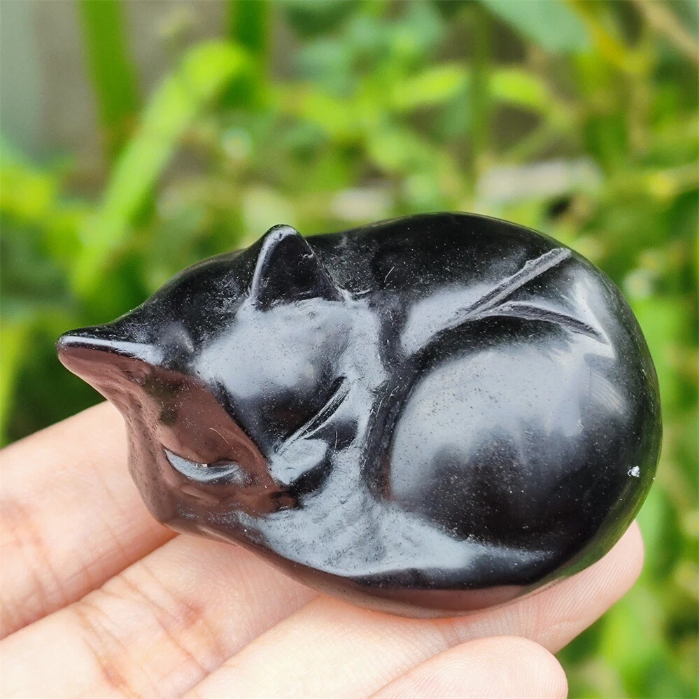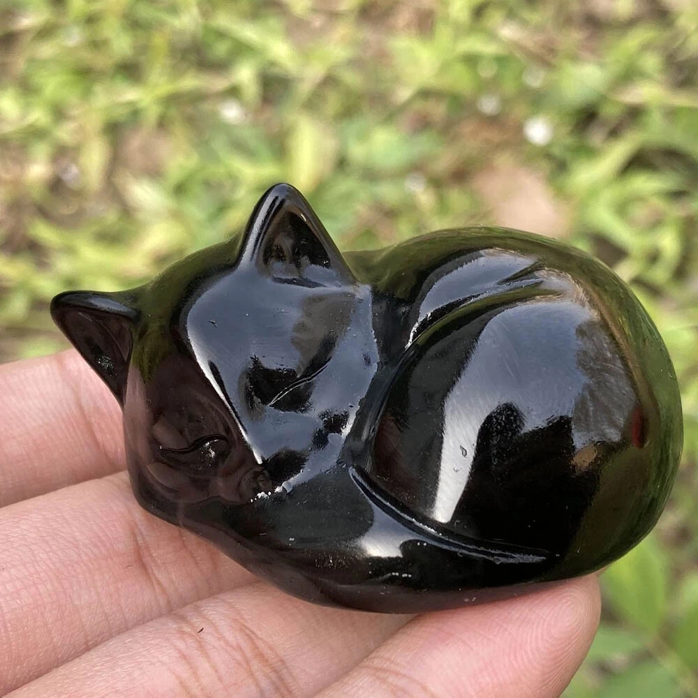 2" Natural Obsidian Quartz Crystal Hand Carved Cat Skull Reiki Healing Gift 1pc