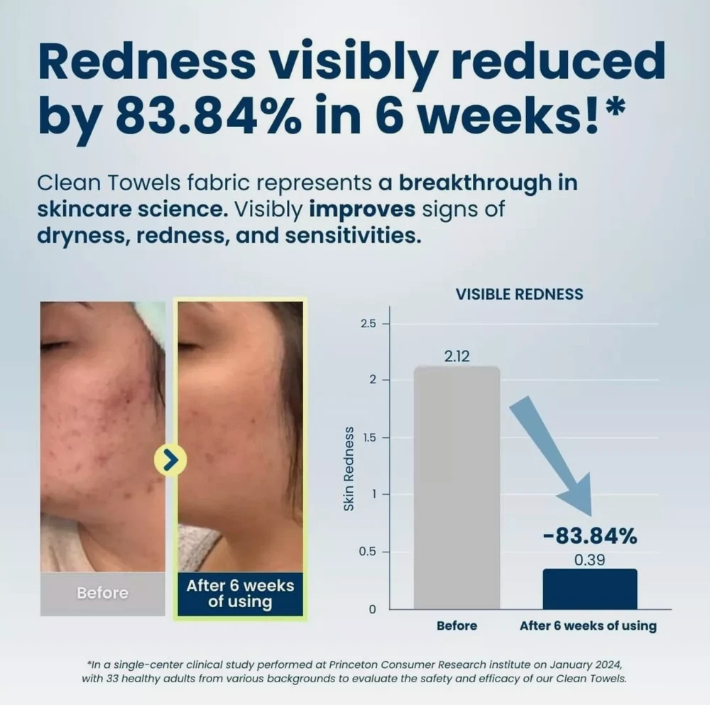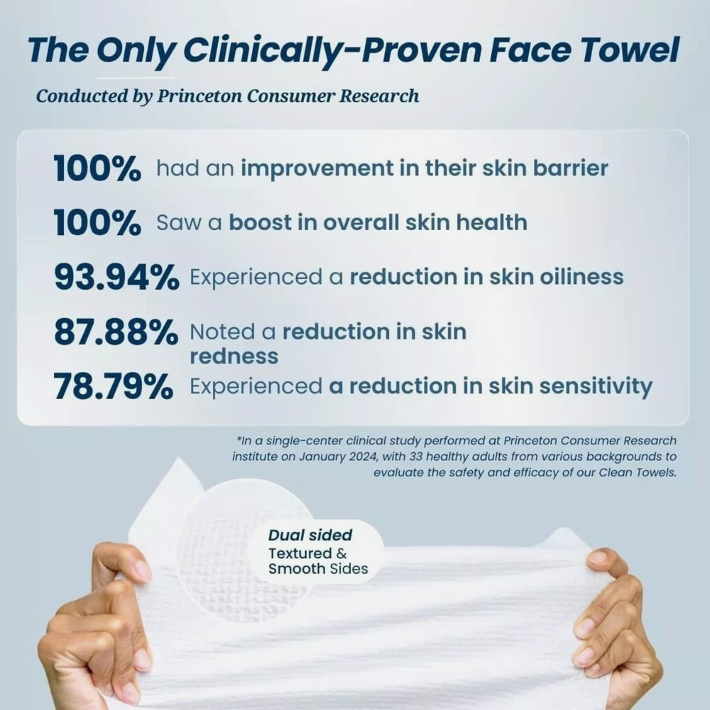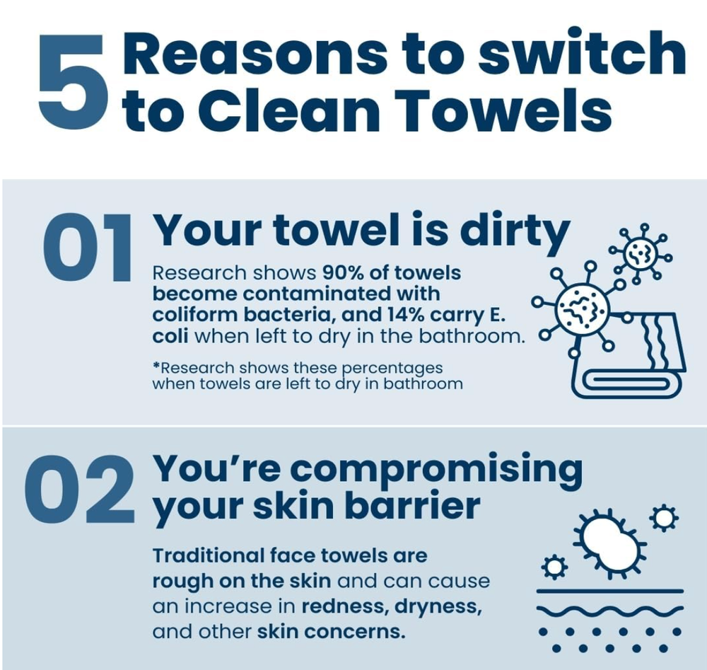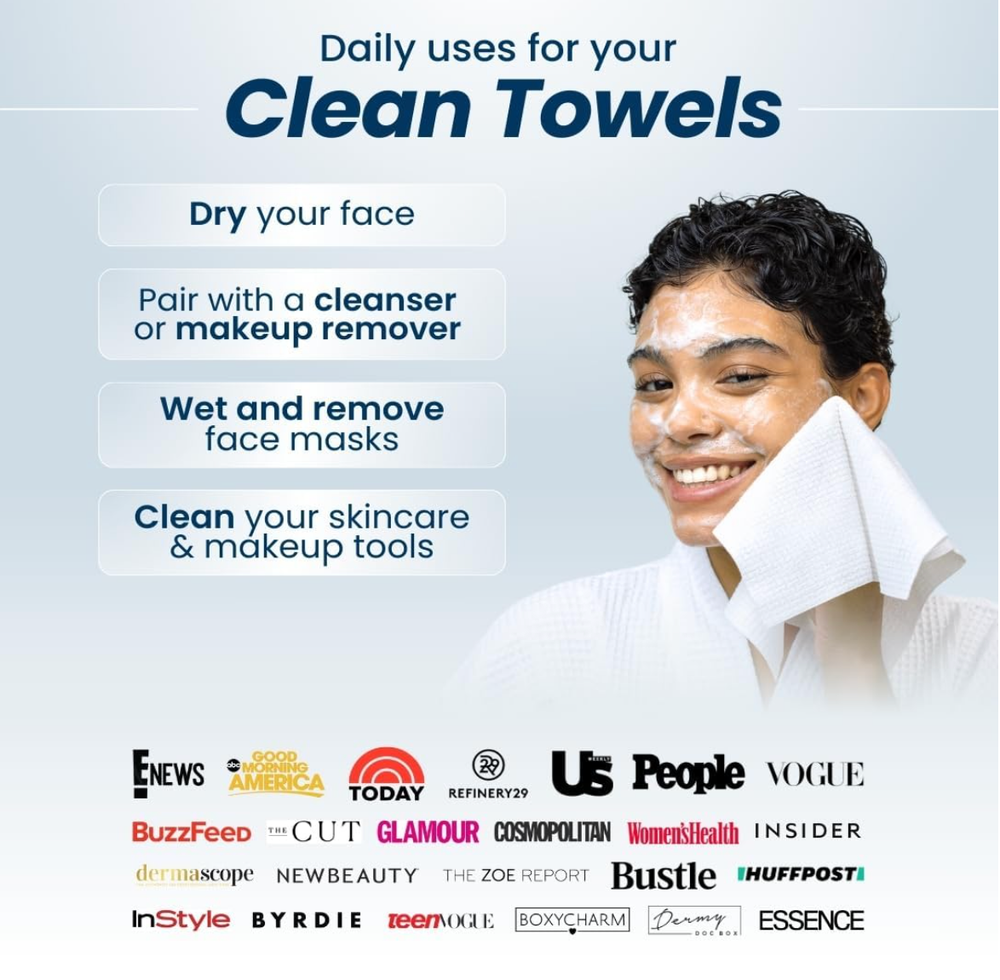 2 PACK Clean Skin Club Clean Towels XL 100% USDA Biobased Dermatologist.