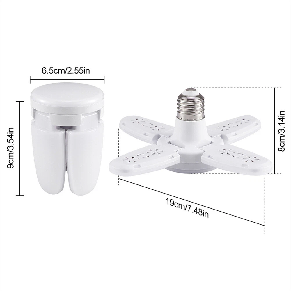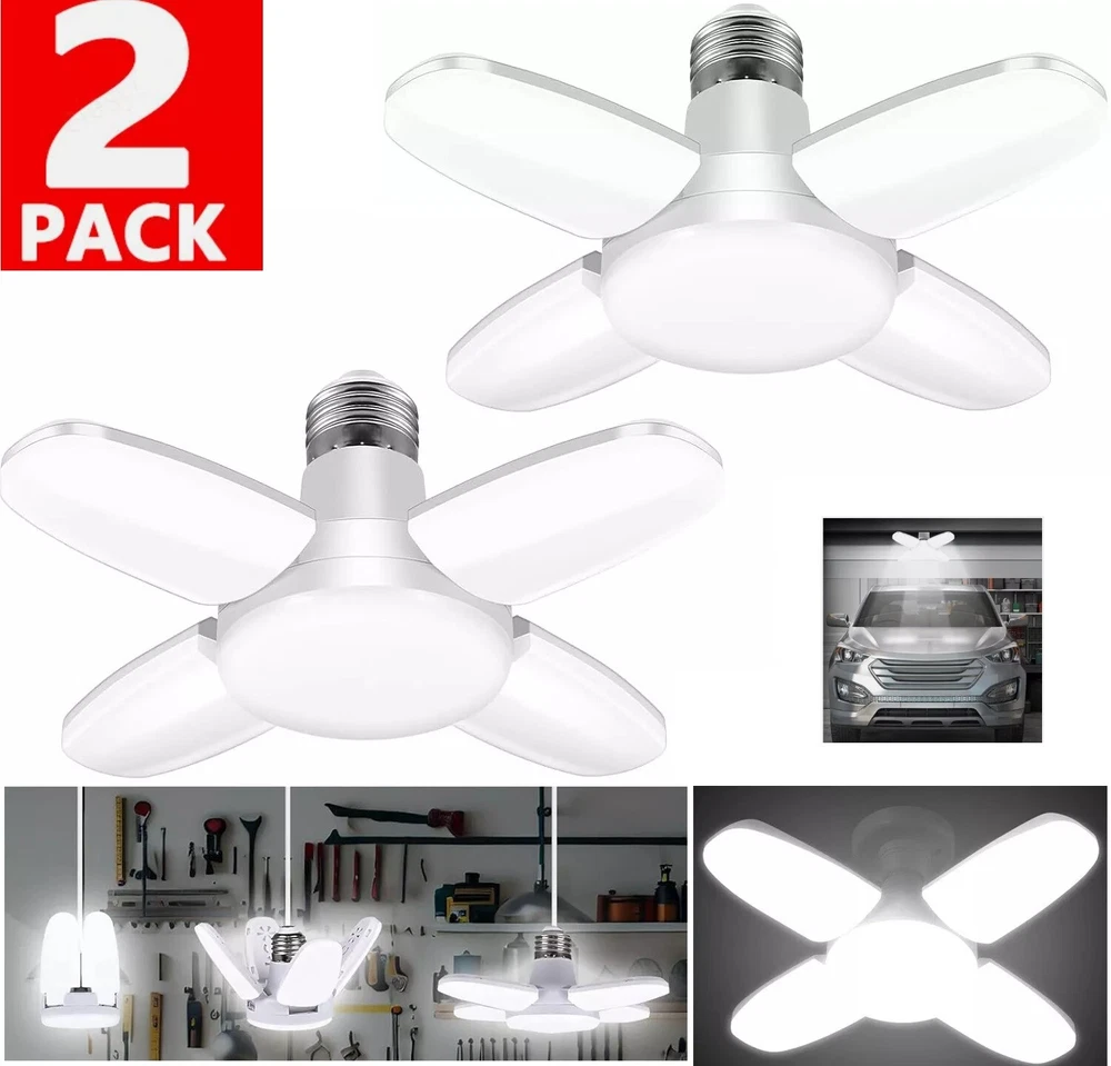 2 PACK E27 LED Garage Light Bulb Deformable Ceiling Fixture Lights Workshop Lamp Features: 【Mini Led Garage Lights 】It features LED technology top quality,28W, 6500K daylight for your garage, warehouse,providing the best indoor lighting experience. With 4 ultra-bright adjustable LED heads for your convenience to adjust the angle of light to focus the area your work. 【360°Illumination】The led garage lights. With 4+1 ultra-bright flexible LED leaves,The maximum coverage Angle of the light is 360 degrees. The garage lights provides 4000 lumens brightness for the best lighting experience. The Led garage ceiling lights for garage bathe your room in a natural glow that is vision-friendly and without glare. 【85% Energy Saving & Longlife】Equipped with SMD high quality LED chips, bigger emitting area, more brightness, efficient and energy saving, ensure the flex led panel bulb last up to 50,000 hours! Mind: When the adjustable garage lights are working, please DO NOT touch panels by hands directly, the panels are dissipating heat. 【 Easy To Install 】Just screw into E26/E27 socket base, you can install it easily just like screwing a traditional light bulb, no need for extra tools, no more wiring, and professional electricians. Note: Please turn off the power before installation. Specification: Combined size: 9cm * 6.5cm * 6.5cm Unfolded size: 19cm * 19cm * 8cm Net weight 80g (can be merged and expanded) Material: PP Product color: White Luminous color: Cold white 6500k Lamp holder clip: E27 Luminous: around 900 Lamp bead model: 2835 Total number of LED beads: 40 (8 per leaf) Adjustable angle: 180 ° Applicable to: rooms, hotels, restaurants, gardens, garages, factories, shopping malls, schools, restaurants, garages, kitchens, workshops Input wide voltage: AC85-268V 50/60Hz Power: 28W Usage: Install the E27 lamp holder and use the control switch directly Packaeg Includes: 2 Pack Deformable Lamp Shipping Payment Return & Refund policy Feedback Customer Support - Contact Shipping FREE SAME BUSINESS DAY MONDAY- FRIDAY SHIPPING FROM USA. All orders and payments received before 4PM EST (1PM PST) will be shipped the same business day. All other orders within 1 business day. No shipping on Weekends or US Public Holidays. No responsibility for any custom duty Shipping information will be updated when available. Payment We accept payment via PayPal. Use PayPal at checkout to pay with credit or debit. Immediate payment is required. Shipping will be arranged within 1 business day once payment is cleared. Return & Refund policy 1.We stand behind our items and offer 60 days warranty. All items are in new and working condition unless specified otherwise elsewhere in the description. 2.All Returns - defective or otherwise - MUST BE PREAUTHORIZED to guarantee refund or exchange. Please contact us to get an authorization and return address. 3.Buyer agrees to pay for the cost of re-shipment for undeliverable or wrong addresses. 4.Buyer is responsible for Return Postage as well as a 20% restocking fee if return/replacement is not a result of our mistake such as wrong item. 5.Replacement or Refund will be made upon receipt of the returned item. Please include tracking number so we can process ASAP. If you do not wish to wait for a replacement, please repurchase the item. 6.ALL REFUNDS will be processed via PayPal. Please double check via PayPal history and transaction for confirmation. PayPal will send it back to whatever you used to pay within 3-5 days. Feedback We strive to provide the best products and services. If anything about your transaction did not meet expectations, please CONTACT US and give us the opportunity to make things right. We are always here to help. Customer Support - Contact Please do not hesitate to CONTACT US. You can message 24/7 on eBay for all questions and inquiries. We will get back to you within 1-2 business days at the latest.