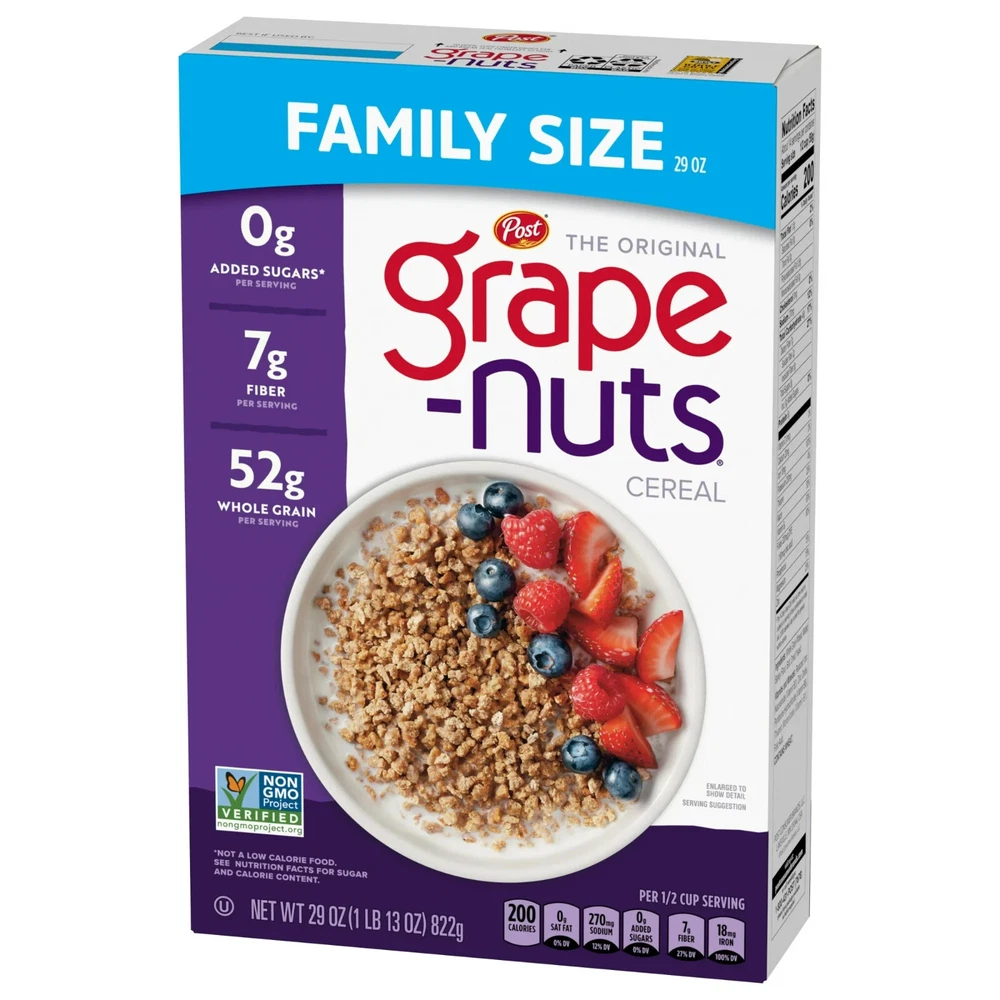 (2 PACK ) New Post Grape Nuts Original Breakfast Cereal, 29 oz BUY WITH 100% RISK FREE DESCRIPTION: Post Grape-nuts Original Breakfast Cereal Packs Plenty Of Punch And Even Bigger Crunch For The Modern-day Active Lifestyle In An Instant. Post Grape Nuts Cereal Is Non-gmo Project Verified And Features Whole Grain Wheat And Barley Baked Into Sweet, Uniquely Crunchy Nuggets Of Cereal. An Excellent Source Of Fiber With 7 Grams Per Serving, Grape-nuts Is A Heart-healthy (2) Option With 52 Grams Of Whole Grain Per Serving (1) For 100% Of Your Daily Whole Grain Recommendation. It's Also High In Iron And Folate. Enjoy A Crunchy Bowl Of Ready-to-eat Breakfast Cereal In The Morning To Help Get Your Day Off To A Great Start. With Its Extreme Crunchiness, This Whole Grain Wheat And Barley Cereal Adds Texture And Crunch To Ice Cream, Yogurt Parfaits And Other Favorites. Keep A Cardboard Box Of Shelf-stable Grape-nuts On Hand For A Crunchy Breakfast Everyone Will Go Nuts Over. (1) Nutritionists Recommend Eating 3 Or More Servings Of Whole Grain Foods Per Day (About 16g Whole Grain Per Serving Or At Least 48g Per Day). (2) Diets Low In Saturated Fat And Cholesterol, And As Low As Possible In Trans Fat, May Reduce The Risk Of Heart Disease. FEATURES: One 29 oz box of ready-to-eat Post Grape Nuts Original Breakfast Cereal Post Grape-Nuts Cereal is a heart-healthy (2) breakfast cereal option that offers an extremely crunchy texture in your morning cereal bowl Grape Nuts Cereal is Non-GMO Project Verified and made with whole grain wheat and barley baked into sweet crunchy nuggets Contains 52g of whole grain (1) and 7g of fiber per serving and is high in iron and folate in an instant Enjoy a bowl as part of breakfast or add crunch and texture to yogurt parfaits and ice cream Stock up on boxes of Grape-Nuts for a crunchy, delicious breakfast cereal option Fuel your sense of adventure with Post Grape-Nuts Breakfast Cereal Shelf-stable cardboard box WE SHIP TO LOWER 48 STATES ONLY. WE CANNOT SHIP TO APO/FPO OR PO BOXES. WE OFFER 30 DAY MONEY BACK GUARANTEE COMMUNICATION If you have a problem or question regarding your transaction please contact us before leaving any type of feedback. We will work with you to resolve any problem you may have. Customer Satisfaction Is Very Important To Us. If You Have Any Problem With Your Order, Please Contact Us And We Will Do Our Best To Make You Satisfied, Please Do Not Leave Negative Feedback Before We Resolve Your Problem, We Guarantee That Your Issue Will Be Solved Quickly.