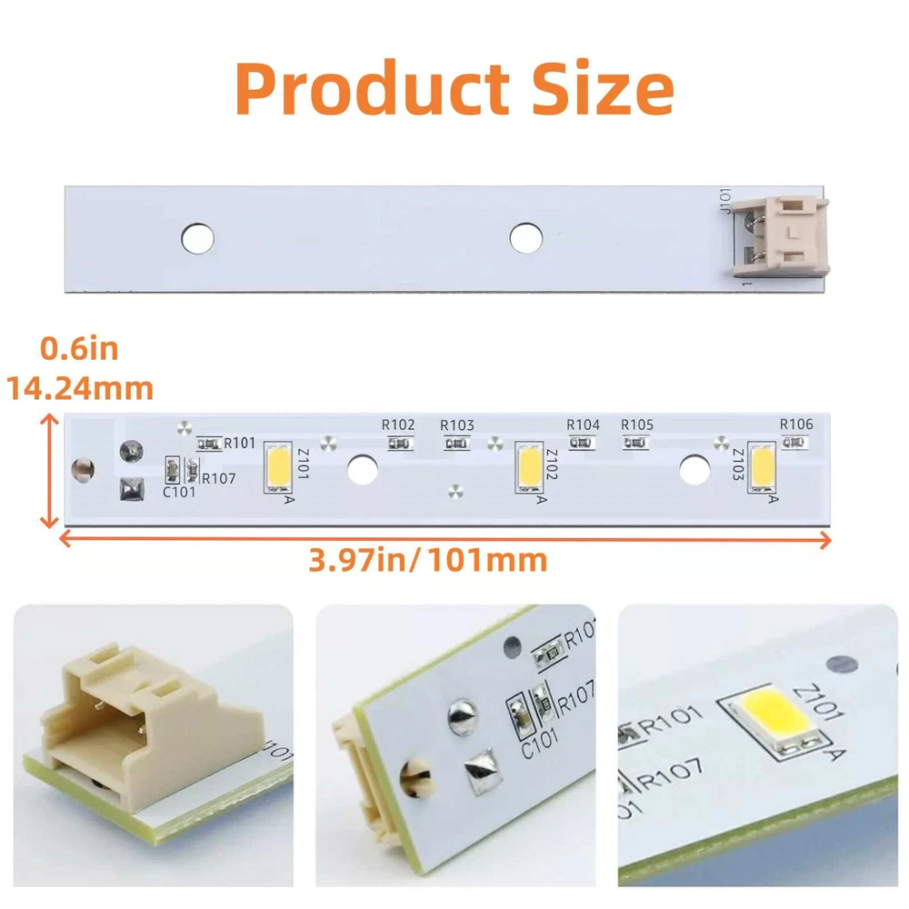 Product Description 2 PACK Refrigerator LED Light Board WR55X26671 4468532 For GE Replace Part Features: Seamless replacement, quick return to bright: Designed to solve the problem for GE refrigerator LED lights flashing, dimming or not bright, perfectly match the original light slot, no complex tools or expertise is required, and the refrigerator is immediately bright after quick replacement. Wide compatibility, model worry-free: Suitable for a variety of refrigerator models, showing excellent compatibility, to ensure that each refrigerator can find the right solution, one replacement, long-term peace of mind. Bright energy saving, economic choice: The use of high-efficiency LED chips, significantly improve brightness, while greatly reducing energy consumption, long-term use for family savings, is an economical and practical lighting upgrade. Durable, quality assurance: After careful design and rigorous testing, LED light replacement parts are durable and stable, and the center reinforcement design effectively prevents damage, providing lasting light protection for the refrigerator. Waterproof and moisture-proof, safety guard: Pay attention to safety performance, LED light replacement parts after waterproof treatment, stable work in humid environment, prevent short circuit and other safety hazards, create a safe use environment. Easy DIY, universal solution: The replacement kit is simple in design, and users can quickly replace their fault lights without relying on professional help. In just a few simple steps, you can restore the interior of your refrigerator and enjoy convenient DIY fun. Specifications: Material: PCB+LED Size: 3.97*0.6in / 101*14.24mm Quantity: 2pcs OEM Part Number: WR55X26671 Replacement Part Numbers: PS11767930, AP6035586, 4468532, EAP11767930 Compatible Brand: For GE Compatible Models: CZS22MP2NBS1, CZS22MSKEHSS, CZS22MSKKHSS, DSE25JEMGCDS, DSE25JEMKCDS, DSE25JGHECBB, DSE25JGHECWW, DSE25JGHKCBB, DSE25JGHKCWW, DSE25JMHECES, DSE25JMHKCES, DSE25JSHECSS, DSE25JSHKCSS, GSE23GGKJCBB, GSE23GGKJCCC, GSE23GGKKCBB, GSE23GGKKCCC, GSE23GGKKCWW, GSE23GSKJCSS, GSE23GSKKCSS, GSE25GGHJCBB, GSE25GGHKCBB, GSE25HEMKHDS, GSE25HGHJHBB, GSE25GGHJCCC, GSE25GGHJCWW, GSE25GSHJCSS, GSE25HEMJHDS, GSS25GMHJCES, DSE25JGHGCBB, DSE25JGHGCWW, DSE25JMHGCES, PSE25KBLJHTS, PSE25KGHGHBB, PSE25KGHGHWW, PSE25KSHGHSS, PSS28KSHGCSS, PZS22MMKEHES, PZS22MMKGHES, PZS22MSKEHSS, PZS22MSKGHSS, 4468532, AP6035586, PS11767930, EAP11767930, DSE25JBLJCTS, DSE25JSHGCSS, GSS23GGKJCBB, GSS23GGKJCWW, GZS22DGJNFBB, GSS25GMHNCES, GSE23GSKNCSS, GSS25LSLPCSS, GSE25GGHNCBB, GSS23GGKNCBB, GSS25IGNBHWW, GZS22IYNPHFS, GSS25LSLNCSS, GSS25GMHPCES, GSS25IBNBHTS, XSS25GGHNCWW, GSS25GGHPCBB, GSE23GGKPCWW, GSE23GGKJCWW, GSE23GGKKCBB, GSE23GGKKCCC, GSE23GGKNCBB, GSE23GGKPCBB, GSE23GGKPCCC, GSE23GGKRCBB, GSE23GGKRCCC, GSE23GGKRCWW, GSE25GGHKCCC, GSE25GGHRCCC, GSE25GGHRCWW, etc. Package Included: 2 x LED Light Board Payment Shipping Returns Contact Us We accept all verified payments from ebay. Orders will be shipped after receiving cleared payment. Payment due within 7 days after auction ends and for buy it now listings. We ship most of our orders within 24 hours, and may up to 48 hours. If you want faster shipping way. Please contact us before making payment. Sometimes due to problems with our transportation company system, your shipping information may be delayed to update. We recommend that you try again after 3-4 days. If you still haven't checked the shipping information, you can contact us by ebay message. Always believe we can figure things out with communication, if it comes to return, the pacakge must be intact and the same as you receive. If you have any questions, please feel free to email our service specialists 24 Hours a Day, 7 Days a Week. We will reply you ASAP. Return/refund is accepted within 30 days after the buyer receives the item. NO exchange will be accepted after 30 days from the date when the item is received. Please contact us first before returning your product!!! If you have any questions, our Customer Service staffs welcome you to email us. We strive to answer all questions and resolve any problems as quickly as possible. You can contact us 7*24, we will reply at the first time, and we will surely solve your problems. Note: 1.We try our best to reply to your emails as soon as possible, however, due to high volume of daily incoming emails and time zone difference, we may not be able to reply your emails immediately. Please allow 1 business days for us to response. If you do not receive any reply from us, please check your email ensuring your mailbox has not reached full size. 2.Due to some ISP SPAM filter settings, you may not be able to receive our replies; if you have problems receiving our emails, you may need to use a different email account to contact us. 3.Please give us the opportunity to resolve any problem. We understand the concerns and frustrations you might have, and will try our best to resolve the issues. Please email us before leaving any negative feedback or open any dispute on PayPal. 4.We care about our valued customers, and will always try to help you. So if you have any problems, please e-mail us immediately. Payment We accept all verified payments from ebay. Orders will be shipped after receiving cleared payment. Payment due within 7 days after auction ends and for buy it now listings. Shipping We ship most of our orders within 24 hours, and may up to 48 hours. If you want faster shipping way. Please contact us before making payment. Sometimes due to problems with our transportation company system, your shipping information may be delayed to update. We recommend that you try again after 3-4 days. If you still haven't checked the shipping information, you can contact us by ebay message. Returns Always believe we can figure things out with communication, if it comes to return, the pacakge must be intact and the same as you receive. If you have any questions, please feel free to email our 
