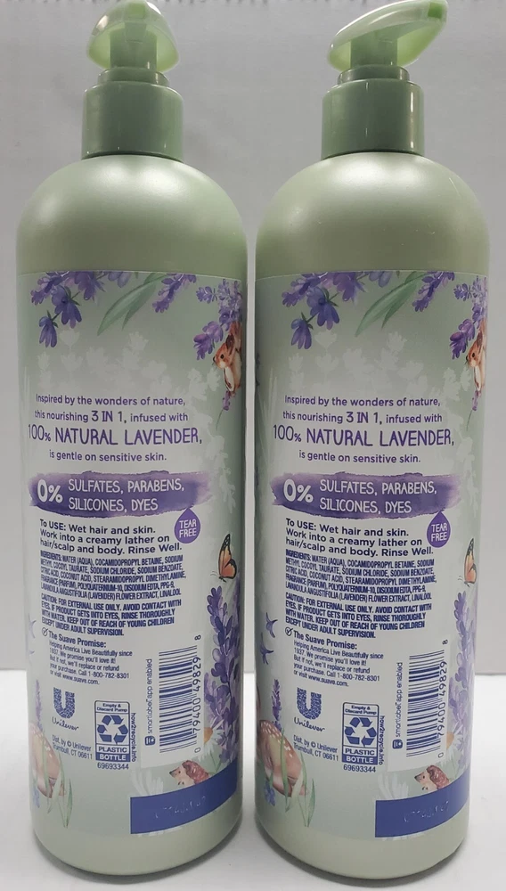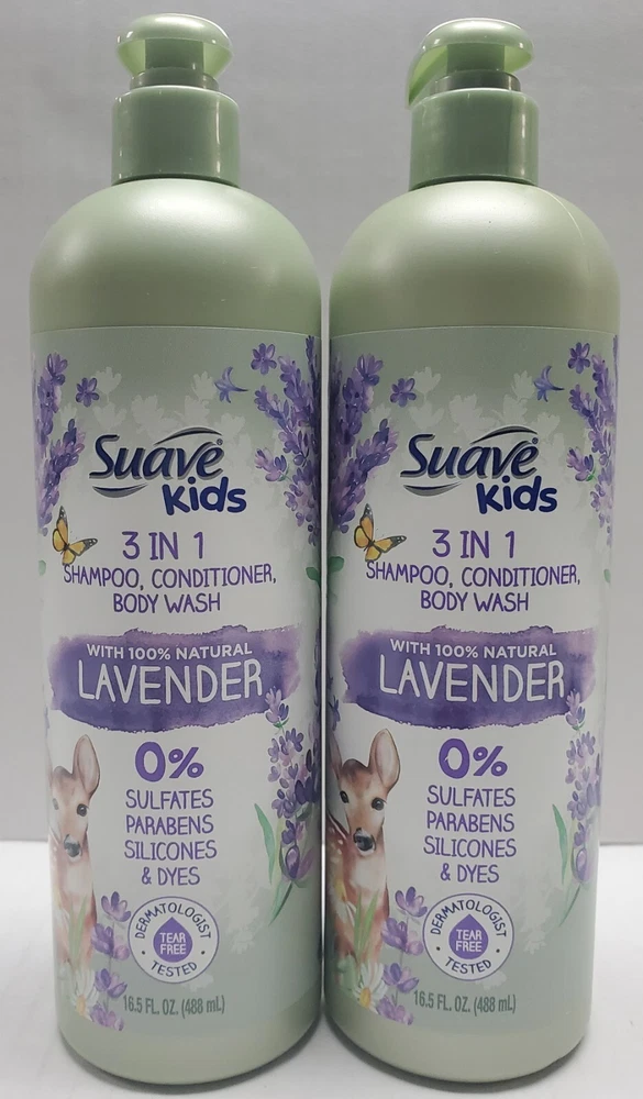 2 PACK Suave Kids 3-In-1 Shampoo with 100% Natural Lavender - Tear-Free Shampoo.
