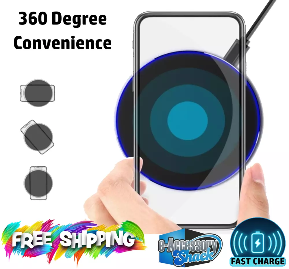 2 PACK Wireless Fast Charger Charging Pad Dock for Samsung iPhone Android Cell Phone Will charge most phones from empty to full in 3-4 hours or so as long as you use a 10w or higher power source. That means the power source's output is rated at 2A/5V or higher. 3-4 hours charge time is considered "fast" by most industry standards. Do faster ones exist? Yep, and I sell those too, in my eBay store at a higher price. This one for sale here is a very good combination of value vs performance. Go to bed at night and put your phone on this, it will be fully charged in the morning every time. I offer 60 day free returns for ANY reason. Buy with confidence. Specifications: Color: Black Output: 5W/7.5 W/10W Charging efficiency:>75% Charging frequency: 110-205 kHz The package includes: 2 x Wireless Fast Charger Pad 2 x 3ft Micro USB Cable Power Source is NOT included, but I sell them in my eBay store if needed. You'll save a % if you by 2 or more items from my store at one time, applied on last page of checkout. Typically it's 1% off for 2 items, 10% off for 3 items, 21% off for 4+ items at one time.