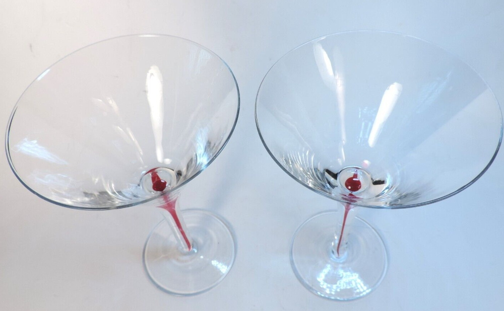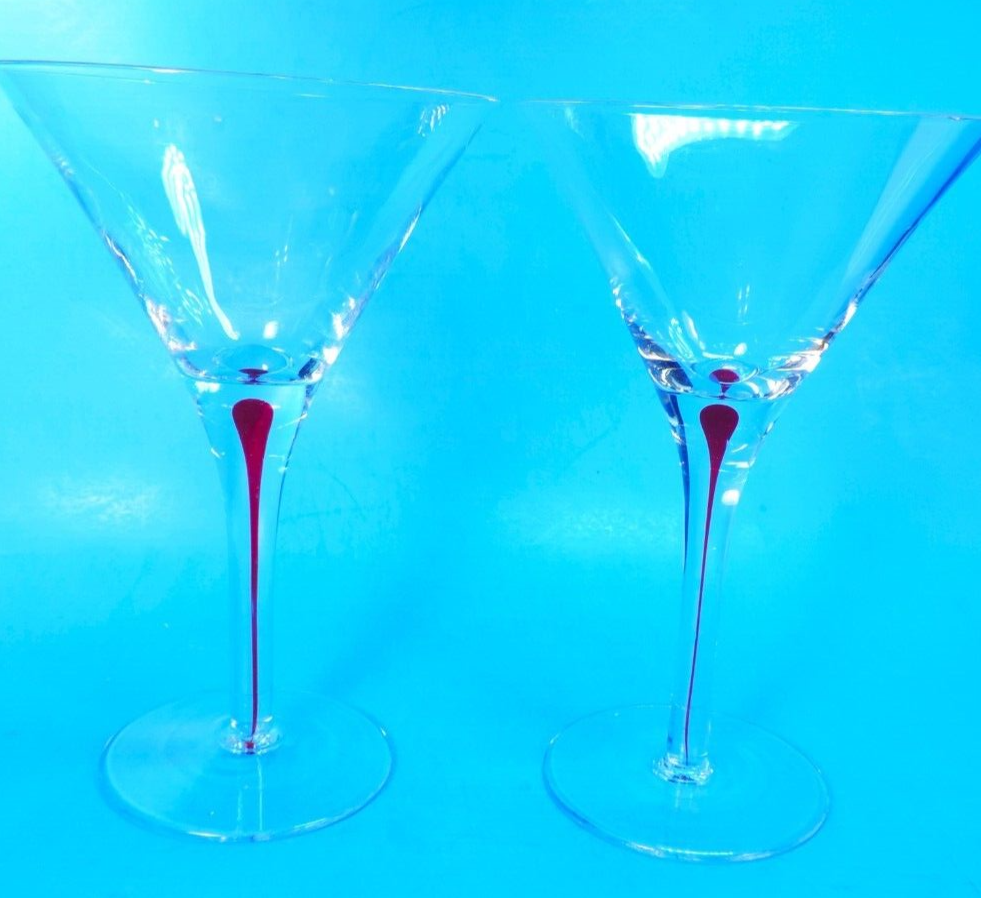 BRAND: PIER 1 ITEM: MARTINI GLASSES NUMBER IN LISTING: 2 PATTERN: TEARDROP COLOR: RED CONDITION: AS NEW SIZE: 7+" TALL SHIPPING: WEIGHT WILL BE 3 LBS. NOTE THAT I OFFER OPTIONS UNDER SHIPPING TAB. SELECTION MAY BE MADE UPON CHECKOUT