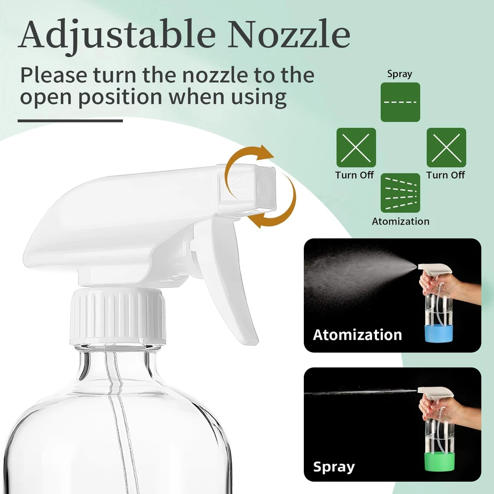 2 Pack Glass Spray Bottles with Silicone Sleeve,16Oz Clear Glass Spray Bottles SET INCLUDED: Mist spray bottles 16oz 2 pcs,2 removable silicone sleeve(Blue Green),2 white trigger nozzles,1 funnels,1 dropper,10 label,2 black lids,sufficient quantity and complete combination will meet your use and replacement needs,these spray bottle is made of thick glass,sturdy and strong,good airtight sealing effect prevents rapid evaporation and Helps maintain the original flavor ADJUSTABLE NOZZLE: Squeeze trigger spray bottles for cleaning solutions have three modes: full mist, directional spray and off.the continuous spray bottle has an adjustable nozzle,the trigger sprayer is easy to squeeze,simply twist the top of the squirt bottle nozzle to meet your needs in different environments,the 16oz capacity is large enough,so you don't have to constantly replenish it, saving you a lot of time REMOVABLE SILICONE PROTECTIVE SLEEVE :The bottom of the clear spray bottle is equipped with a silicone protective sleeve in different colors,the silicone sleeves included provide excellent grip and stability,The soft silicone is non-slip and slows the impact on the bottle,making glass bottle more sturdy,prevent slipping on countertops or tiled surfaces,effectively preventing the glass bottles from shattering and offering perfect protection FINE MIST SPRAY MULTI-USE:These reusable spray bottles for cleaning and refillable,mixing your own cleaning solutions,DIY household cleaning,hair moisturizing spray,cosmetic face,pet sprays,home linen spray,natural air freshener,making fragrances,vinegar and water mixture for cleaning windows,floor or carpet cleaner Safe and Reliable Material:These clear spray bottle is made of thick glass,Lead-free,sturdy and strong,easy clean,good airtight sealing effect prevents rapid evaporation,premium waterproof labels to differentiate between different liquids avoids confusion,the silicone funnel is easy to pour out and pour in liquids,transparent, graduated dropper makes it easy to add the liquids you need to mix These 16oz clear glass spray bottles are a versatile and eco-friendly solution for all your spraying needs. The set of two refillable and reusable bottles is perfect for misting plants, applying hair products, cleaning surfaces, or spritzing essential oils. Made of durable glass, these bottles are BPA-free and won't leach chemicals into your liquids. The adjustable nozzle allows you to switch between a fine mist and a powerful stream, giving you control over your spray. Easy to fill and clean, these versatile spray bottles are a must-have for any household. Use them for gardening, cleaning, pet grooming, or creating your own DIY cleaning solutions and hair products. Shipping We offer FREE shipping on all orders! We ship within Three business days of payment, usually sooner. We use a selection of shipping services such as UPS, FedEx, USPS etc. We only ship to the lower 48 states, no APO/FPO addresses or PO Boxes allowed. Local pickups and combined shipping options are not provided at this time. Return You can return a product for up to 30 days from the date you purchased it. Any product you return must be in the same condition you received it and in the original packaging. Please keep the receipt. Payment We accept payment by any of the following methods: PayPal Please pay as soon as possible after winning an auction, as that will allow us to post your item to you sooner! Feedback Customer satisfaction is very important to us. If you have any problem with your order, please contact us and we will do our best to make you satisfied. Contact Us If you have any queries, please contact us via ebay. We usually respond within 24 hours on weekdays. Please visit our eBay store to check out other items for sale! Thank you for shopping at our store.