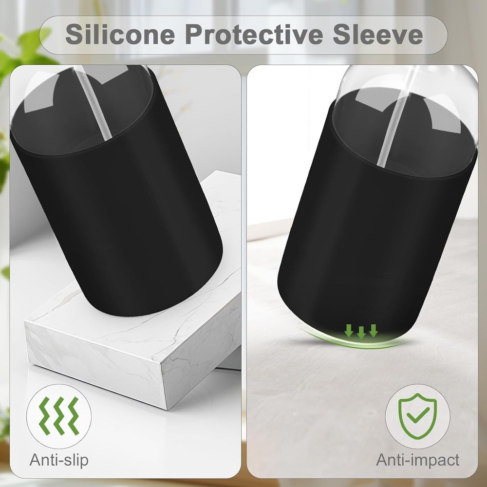 Fast Shipping On All Items 30 Days Money Guarantee Customer Support Excellent Service 100% Satisfaction Satisfaction Guaranteed 2 Pack Glass Spray Bottles with Long Silicone Sleeve, 16 Oz Empty Refillable Con Specification Reusability refillable Unit Count 2.0 Count Style Classic Capacity 473 Milliliters Number of Items 2 Part Number WT-040 Color Black Material Glass, Plastic Batteries Required? No Item Weight 1.59 pounds Item model number WT-040 Special Features Anti-Slip Included Components Handles Special Feature Anti-Slip Package Dimensions 8.66 x 6.65 x 3.5 inches 6.65 inches x 8.66 inches x 3.5 inches. Weight: 1.59 lb Item Description Premium Glass & Sturdy Silicone Sleeve: Crafted from high-transparency glass, our bottle offers a clear view of liquid levels, ensuring effortless monitoring and usage. The included silicone sleeve ensures minimizing the risk of breakage and slips, making it safe for daily use. Adjustable Spray Nozzles: This nozzle offers three distinct modes: off, mist, and stream, providing users with versatility. The nozzle is easy to operate, with a simple switch that allows you to seamlessly transition between modes. Fine Mist Spray & Versatile Applications: Switch to the mist mode for a gentle, fine spray that is perfect for watering delicate plants or refreshing the air. Perfect for a variety of needs, including home cleaning, gardening, and beauty care, this spray bottle meets all your spraying needs. Easy to Operate & Refill: With a wide-mouth opening, refilling the bottle is a breeze, allowing you to easily pour in your desired liquids, even the thicker ones. Cleaning is a straightforward process, whether you choose to hand wash or use a dishwasher, ensuring the bottle remains clean and hygienic. Eco-Friendly Material & Safe to Use: Made of recyclable glass, our spray bottle contributes to a sustainable lifestyle, reducing waste and promoting environmental responsibility. Free from harmful substances like BPA, our product ensures your safety and peace of mind, allowing you to use it with confidence. Product Description Non-slip Silicone Sleeve This silicone sleeve prevents accidental slipping of the spray bottle effectively. Anti-impact Silicone Sleeve The silicone sleeve ensures minimizing the risk of breakage, making it safe for daily use. Premium Glass & Spray Nozzles Crafted from high quality glass. This nozzle offers three distinct modes: off, mist, and stream. Glass Spray Bottles Series Add to Cart Add to Cart Add to Cart Customer Reviews 4.6 out of 5 stars 64 4.6 out of 5 stars 689 4.6 out of 5 stars 5,321 4.6 out of 5 stars 5,321 Price $11.99 $ 11 . 99 $13.99 $ 13 . 99 $7.99 $ 7 . 99 $16.99 $ 16 . 99 Capacity 16 OZ 16 OZ 16 OZ 16 OZ Quantity 2 2 1 3 Silicone Sleeve Long Silicone Sleeve Short Silicone Sleeve No No Adjustable Spray Nozzles ✔ ✔ ✔ ✔ Anti-slip ✔ ✔ ✘ ✘ About us We offer the best prices around on high quality products. Our E-store includes media such as books, movies, music and games while offering electronics, toys, sporting apparel, clothing, tools, general home, garden items and more. Shipping We are always working hard to ensure your package arrives as soon as possible. Please understand that some factors like weather, high postal traffic, and the performance of shipping companies are outside of our control. We offer free shipping to the lower 48 states and ship within 2-3 business days of payment, usually sooner. We do not accept P.O. Boxes. Please provide a physical address. For shipping outside of the continental USA, we only use eBay's Global Shipping Program.The item is shipped to KY and then sent to the rest of the world. International customers are responsible for all duties and taxes. Continue to check out to calculate costs for shipping the item to your country. Messages regarding eBay's Global Shipping Program MUST be directed at eBay EXCLUSIVELY. Returns We offer a 30-Day Return Policy on items in which you are not completely satisfied with. You have the option of a full-refund or an exchange of the item. No returns are available on items shipped outside of the USA Satisfaction We try over very best to make sure every customer is completely satisfied. If there's a problem, message us! We're happy to help. Payment Options Shop With Confidence