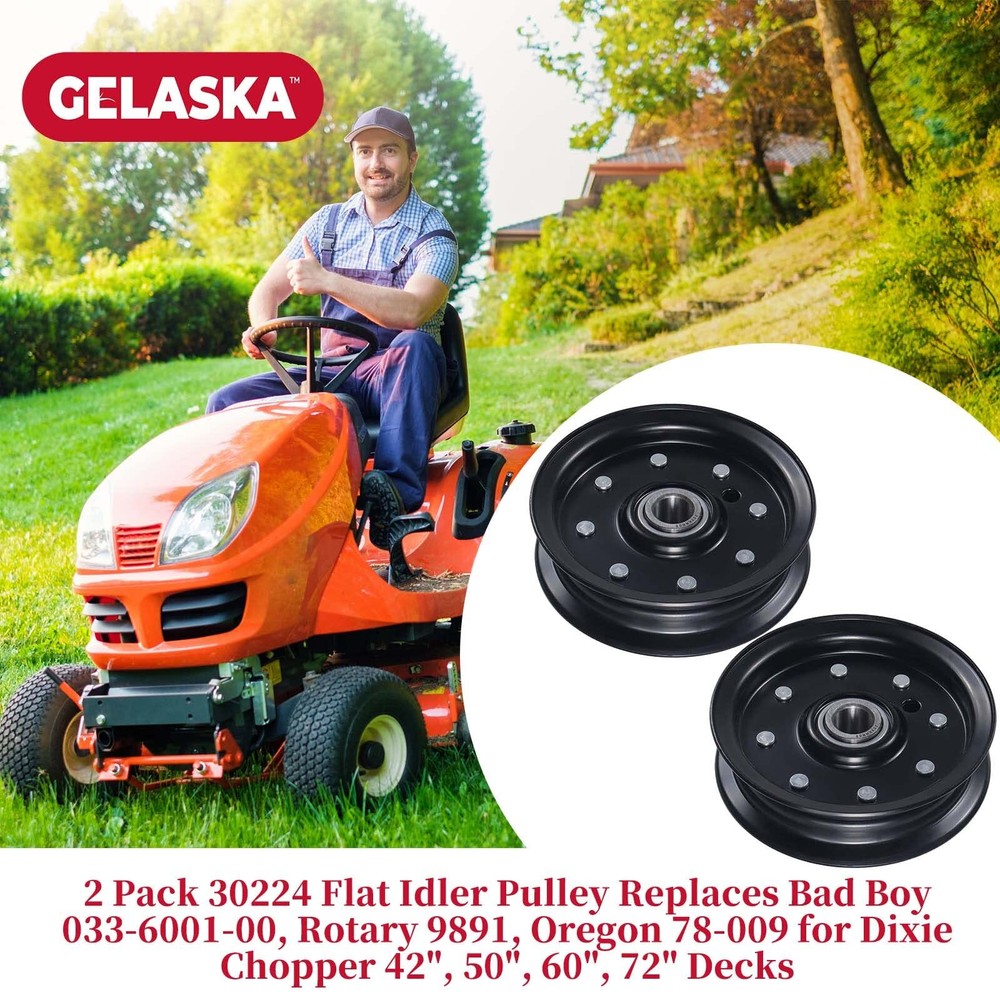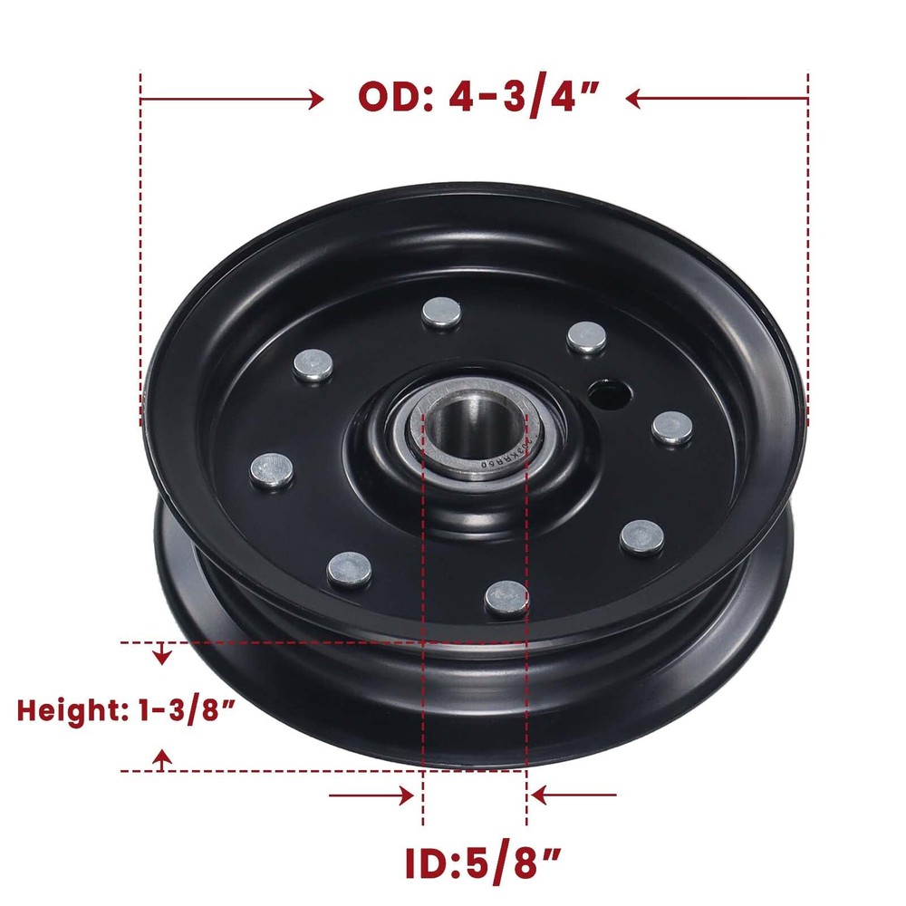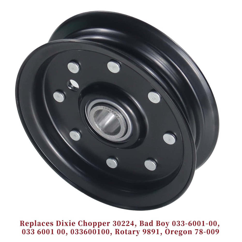 30224 Flat Idler Pulley Replaces 30224 Dixie Chopper 30224 Pulley, 30224 Idler Pulley, Dixie Chopper Pulley 30224, Dixie Chopper Idler Pulley 30224, Dixie Chopper Part 30224, Dixie Chopper Part Number 30224, Flat Idler 30224, Silver Eagle Idler Pulley 30224, Rotary 9891, Oregon 78-009, 280-850. Fits for Dixie Chopper 3372 (2008), 5018 Magnum (1983-1988), 5020 Sidewinder (1983-1988), 6024 Sidewinder (1983-1988), Classic 2550, Classic 2750, Classic 2750 T, Classic 2750 W, Classic 2750HP, Classic 2760 T, Classic 2760 W, Classic 3360 W, Classic 3372HP, Classic 3560 T, Flex-Deck Mowers Fits for Dixie Chopper LP3000-60, LP3000-72, LT1800-34, LT1800-44, LT2000-36, LT2000-44, LT2000-50, LT2000-50D, LT2200-34, LT2300-50D, LT2400-44D, LT2400-50D, LT2500-44D, LT2500-50D, LT2700-60D, LX2000, LX2000-42, LX2001, LX2001-42, LX2002-42, LX2400, LX2400-42, LX2401 (1997), LX2401-42, Mulch-a-Vac (1998-2001), N4218 (1988), RB2700-34, RB2700-44, RB2700-50, RT2760, SE2550, SE2734, SE2744, SE2750, SE2760HP, SP2800-60 Mowers Fits for Dixie Chopper 207 Models, Classic, Flex-Deck, Magnum, Mulch-a-Vac, N4218, Sidewinder. Specs: Height: 1 3/8", ID: 5/8", OD: 4 3/4";