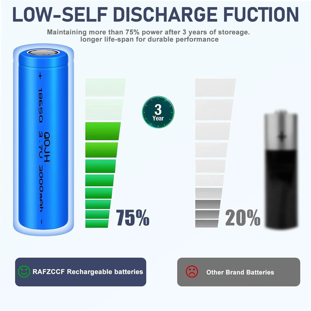 Store New Arrivals Add to Favorite View Feedback Contact 2 Pack 3.7 Volt 18650 Rechargeable Battery, 3000Mah Battery Flat Top Lithium Battery for Flashlight, Headlamp Description Reusability Rechargeable Unit Count 2.0 Count Battery Cell Type Lithium Ion Battery Capacity 3000 Milliamp Hours Amperage 3.7 Amps Battery Cell Composition Lithium Ion Battery Weight 0.1 Pounds Item Weight 1.6 ounces Voltage 3.7 Volts (AC) Model Name 18650 Recommended Uses For Product Indoor/Outdoor Number of Batteries 2 Lithium Ion batteries required. (included) 【Wide Compatibility and Rechargeable】3000mAh high capacity 18650 rechargeable battery can be widely used for LED flashlights, solar lights, racing, game controller, emergency lights, portable devices, headlamps, toys, remote controls, doorbells and other electronic devices. 【Product Parameters】This 18650 battery 3.7V standard voltage 3000mAh high capacity, Size:2.55*0.7inch(65 * 18mm) .it's a rechargeable battery FLAT TOP, Please confirm whether your device is suitable before purchasing. 【Pre-Charged】Each 3.7v lithium ion battery is ready to use and It can be recharged over 2000 times and keep 60% power after non-use for 2 years. 【Product Quality】Low discharge multiplier, no memory effect. 3.7 volt rechargeable battery are tested under strict quality control standards,safe and reliable use.Premium Li-ion Cells For Longer Battery Life . 【Quality Service】1 month return and exchange, if you have any questions about ours 3.7v battery, please feel free to contact us, we will provide you with professional solutions and satisfactory services as soon as possible. Product Description ABOUT US We offer the best prices around on high quality products. Our E-store includes media such as books, movies, music and games while offering electronics, toys, sporting apparel, clothing, tools, general home, garden items and more. SHIPPING We are always working hard to ensure your package arrives as soon as possible. Please understand that some factors like weather, high postal traffic, and the performance of shipping companies are outside of our control. We offer free shipping to the lower 48 states and ship within 2 business days of payment, usually sooner. We do not accept P.O. Boxes. Please provide a physical address. RETURNS We offer a 30-Day Return Policy on items which you are not completely satisfied with. You have the option for a full-refund or an exchange of the item. No returns are available on items shipped outside of the USA. PAYMENT We accept PayPal. CONTACT US This page content is yet to come Please ad us to your favorite seller and visit again later Thank You CUSTOMER SATISFACTION We try our very best to make sure every customer is completely satisfied. If there's a problem, message us! We're happy to help.
