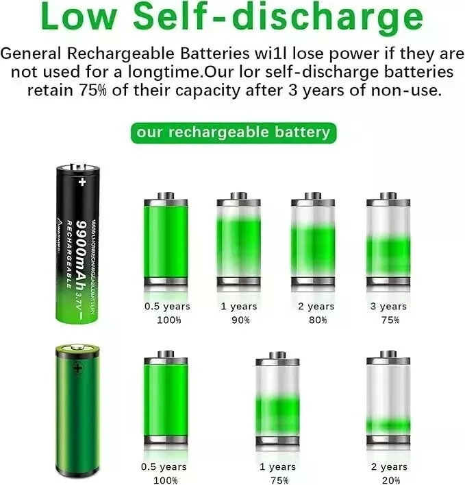 PAOWANG 18650 Rechargeable Battery 🔋 Key Features: Voltage: 3.7V Size: 18mm x 18mm x 65mm (larger than a standard AA battery). ⚙️ Versatile Usage: Compatible with flashlights, headlamps, and various other devices requiring 18650 lithium-ion batteries. ⏳ Ready to Use: Partially pre-charged for immediate use out of the box. For optimal performance, fully charge before first use. 🏷️ Specifications: Battery Cell Composition: Lithium-Ion Recommended Use: Indoor/Outdoor Unit Count: 1.0 Count This PAOWANG 18650 rechargeable battery combines convenience with versatility, making it ideal for powering a range of devices efficiently.