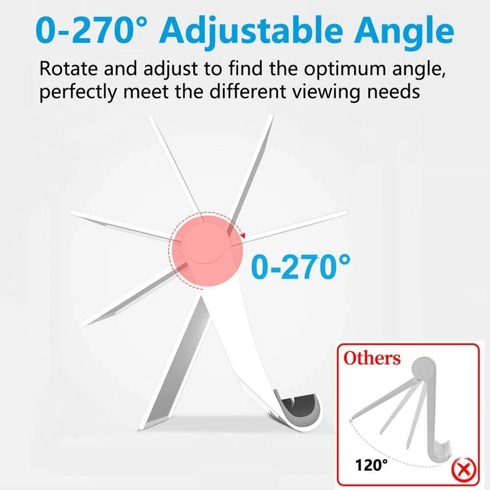 ATTENTION: Not recommended for the phones with too thick case, OR you can rotate the mobile stand to 270 degrees, OR remove the silicone pad. Lightweight Portable Foldable Phone Stands: 1. One-piece and foldable design makes the cell phone cradle easy to carry in a bag or travel. Ideal cell phone accessories for offices, living rooms, bedrooms, kitchens, airplanes and travel. 2. With premium ABS material and silicone rubber pad, desktop phone stand provides a high stability and protect your phone from sliding and scratches. 3.Multi-angle adjustable, the phone and tablet holder can be adjusted from 0 to 270 degrees, you can adjust it to any angle you preferred. Wide Compatibility: The cellphone holder works with all 4-10inch smart phones, mini tablets and e-readers. Such as, Apple iPhone SE 202012/ 12 Pro/ 12 Pro Max / 11 / 11 Pro / 11 Pro Max / XS Max / XS / X / XR / 8 /8 Plus / 7 / 7 Plus / 6 / 6S / 6S Plus / 5 / 5S / 5C / SE, 2020 iPad Pro11" , 2017 iPad Pro 10.5", 2016 iPad Pro 9.7" , iPad Mini 5 4 32 7.9", iPad Air 10.5"/ 9.7", 2017 2018 iPad 9.7" etc; Samsung Galaxy Tab A10.1" / 8.0" / 6.0", Tab S6 / Tab S5e / Tab E 9.6" / Tab S410.5" / S4 / S3; S20 / S20+ / S10 Plus / S10 / Note 10 / Note 10+ / Note 9/ Note 8 / S9 / S9 Plus / S8 / S8+/ S7 / S7 Edge / S6 / S6 Edge / A80 / A70 /A71 / A50 / A51 / A30 / A20 / A10 / S5 / S4 / S2 / A3 / A5 / A7 / J3 / J4 / J5; Nokia 3 / 8 / 7.1 /7.2 / 5.3 / 2.3 / 6.2 / 4.2 / Lumia 635 / 5 / 6 / 7 Plus, etc ; Google Pixel 3 /Pixel 3XL / Pixel 2 / Pixel 2XL / Pixel XL / Pixel C / Nexus 5X / Nexus 6P,etc; Specifications: Size: 3.9" x 3.2" x 0.7" (10cm x 8cm x 1.8cm) Weight: 2.1 ounces What you can get: 2 x Black cell phone stand for desk 12 Month Guarantee & 100% money back 【Lightweight & Foldable】With small size of 3.9" x 3.2" x 0.8" and weight of 1.3 ounces, cellphone stand is lightweight and portable, but can bear a load of up to 11 pounds. With foldable design, phone stand holder is super easy to take out wherever you go. A great cell phone holder for desk, travel, home, kitchen and office. 【Multi-Angle Adjustable】Simply adjust and choose your preferred viewing angles from 0° to 270°. Desk phone stand holds your smart phone or mini tablet at a comfortable angle, perfect for watching video, reading, video chatting, browsing the web, playing games or facetime call. 【Sturdy and Durable】High quality ABS material supports this desktop phone holder durable in usage. Silicone pads on the bottom and cradle protect both your phone and stand from sliding and scratches. 【Widely Compatible and Tips】The universal mobile phone stand fits all smartphones and mini tablet. Not recommended to the phones with too heavy case, OR you can choose to rotate the mobile stand to 270° (Please refer to the picture), OR choose to remove the silicone pad. 【Services】Our desk phone holder provides a worry-free guarantee for 12 months to prove the importance we set on quality. If you have any questions, please log in to your Amazon Account-Your Orders-Contact Seller to contact us.