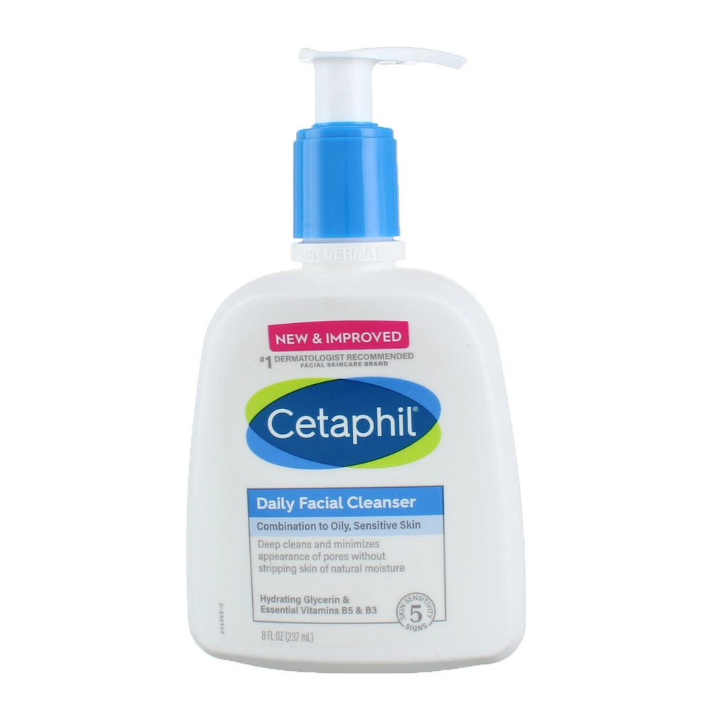 Product Description Step up your skincare regime with CETAPHIL Daily Facial Cleanser, a deep cleansing, gentle foaming formula designed for sensitive, combination skin. Ideal for daily use, this cleanser gently yet effectively removes dirt, excess oils, impurities and pollution microparticles, without leaving the skin dry or tight. Formulated with a new blend of key ingredients: hydrating glycerin, panthenol (vitamin B5) to hydrate, soothe and preserve the skin barrier, and niacinamide (vitamin B3) to help smooth skin’s texture and retain skin’s moisture barrier. CETAPHIL Daily Facial Cleanser minimizes the appearance of pores without stripping the skin of its natural oils and moisture barrier, helping to defend against 5 signs of skin sensitivity. Clinically proven to be suitable for sensitive skin, this gentle cleansing formula is hypoallergenic, non-comedogenic, and free of parabens and sulfate Cetaphil Daily Facial Cleanser, Face Wash for Sensitive skin, 8oz - CETAPHIL DAILY FACIAL CLEANSER: Reinforces the skin barrier, balances skin and minimizes the appearance of pores - IDEAL FOR SENSITIVE, COMBINATION TO OILY SKIN: Clinically proven to deep clean by removing dirt, excess oils, impurities and pollution microparticles - NEW AND IMPROVED INGREDIENT BLEND: Now with hydrating glycerin and skin essential vitamins B5 (panthenol) and B3 (niacinamide) - DEVELOPED FOR EVEN THE MOST SENSITIVE SKIN: The hypoallergenic, non-comedogenic formula is free of parabens and sulfates - DEFENDS AGAINST 5 SIGNS OF SKIN SENSITIVITY: Dryness, irritation, roughness, tightness and a weakened skin barrier Ingredients WATER, GLYCERIN, COCAMIDOPROPYL BETAINE, DISODIUM LAURETH SULFOSUCCINATE, SODIUM COCOAMPHOACETATE, PANTHENOL, NIACINAMIDE, PANTOLACTONE, ACRYLATES/C10-C30 ALKYL ACRYLATE, CROSSPOLYMER, SODIUM BENZOATE, MASKING FRAGRANCE, SODIUM CHLORIDE, CITRIC ACID Product Description Step up your skincare regime with CETAPHIL Daily Facial Cleanser, a deep cleansing, gentle foaming formula designed for sensitive, combination skin. Ideal for daily use, this cleanser gently yet effectively removes dirt, excess oils, impurities and pollution microparticles, without leaving the skin dry or tight. Formulated with a new blend of key ingredients: hydrating glycerin, panthenol (vitamin B5) to hydrate, soothe and preserve the skin barrier, and niacinamide (vitamin B3) to help smooth skin‚Äôs texture and retain skin‚Äôs moisture barrier. CETAPHIL Daily Facial Cleanser minimizes the appearance of pores without stripping the skin of its natural oils and moisture barrier, helping to defend against 5 signs of skin sensitivity. Clinically proven to be suitable for sensitive skin, this gentle cleansing formula is hypoallergenic, non-comedogenic, and free of parabens and sulfate Cetaphil Daily Facial Cleanser, Face Wash for Sensitive skin, 8oz - CETAPHIL DAILY FACIAL CLEANSER: Reinforces the skin barrier, balances skin and minimizes the appearance of pores - IDEAL FOR SENSITIVE, COMBINATION TO OILY SKIN: Clinically proven to deep clean by removing dirt, excess oils, impurities and pollution microparticles - NEW AND IMPROVED INGREDIENT BLEND: Now with hydrating glycerin and skin essential vitamins B5 (panthenol) and B3 (niacinamide) - DEVELOPED FOR EVEN THE MOST SENSITIVE SKIN: The hypoallergenic, non-comedogenic formula is free of parabens and sulfates - DEFENDS AGAINST 5 SIGNS OF SKIN SENSITIVITY: Dryness, irritation, roughness, tightness and a weakened skin barrier Ingredients WATER, GLYCERIN, COCAMIDOPROPYL BETAINE, DISODIUM LAURETH SULFOSUCCINATE, SODIUM COCOAMPHOACETATE, PANTHENOL, NIACINAMIDE, PANTOLACTONE, ACRYLATES/C10-C30 ALKYL ACRYLATE, CROSSPOLYMER, SODIUM BENZOATE, MASKING FRAGRANCE, SODIUM CHLORIDE, CITRIC ACID Suggested Use Massage a small amount onto wet skin. Rinse Disclaimer The product descriptions and instructions provided by vitabox.com are for informational purposes only and are qualified in their entirety by the information available from manufacturers of the products. You should carefully read all product packaging, and contact the manufacturer with any questions before using a product. While we endeavor to ensure that product descriptions are current, manufacturers sometimes change their products. We are not liable for inaccuracies or misstatements about products. We do not provide medical advice or recommendations. You should not use the information provided by vitabox.com for diagnosing or treating a health problem or disease. If you have or suspect that you have a medical problem, immediately contact your health care provider. Information and statements regarding dietary supplements have not been evaluated by the Food and Drug Administration or any other government agency and are not intended to diagnose, treat, cure, or prevent any disease.