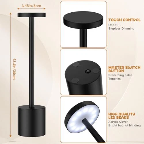 Menu 1. We require immediate payment. 2. We currently accept payment via eBay managed payments only. 3. Once payment is cleared, we will dispatch your shipment within 1-3 business days. Please refer to the "Shipping" tab for more information regarding shipping speed to your destination. 2 Pack Cordless Table Lamp,3 Colors Stepless Dimming Up,Battery Operated,Portable LED Desk Lamp for Bedroom/Restaurant/Bars/Outdoor Camping/Couple Dinner/Night Light/(Black) Product description 【3 Colors & Stepless Dimming】Our cordless rechargeable table lamp is available in 3 color temperatures: white, warm and warm white. It is controlled by the touch switch on the top of the table lamp, to switch the light mode, long press to control the light brightness (10%-100%). 【Portable battery Table lamp】Built-in high-capacity rechargeable battery supports up to 12hours of continuous usage after a full charge (can also be used while charging), which has been certified for safety, this perfect desk lamp will easily update your space. 【Minimalist Design】Portable small table lamp with clean silhouette, elegant round design, 360-degree illumination, smooth and slender metal arm with matte shade, make this table lamp its look more stylish and minimalist, with warmth and unparalleled power. 【Anti-accidental touch function】Our desk lamp controls the color temperature and brightness by touching the top, and also adds an anti-accidental touch function to avoid unnecessary opening. T is a switch button at the bottom of the desk lamp. Only when it is turned on, can the color temperature and brightness be adjusted by touching the top. 【Convenient USB charging light】 This LED cordless desk lamp charges with a USB cable. Even if you lose or forget the adapter, you can charge the lamp by connecting the cable to any USB port, including a laptop, mobile power supply, wall outlet, or electrical outlet. PLEASE MESSAGE US IF YOU HAVE ANY OTHER QUESTIONS, AND MANY THANKS FOR READING ALL OF THIS. Copyright ©#. All Rights Reserved.