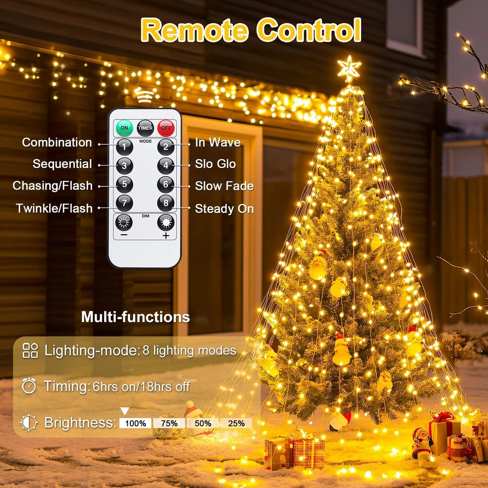 Store New Arrivals Add to Favorite View Feedback Contact Fast deliveries to the customer's home Quality customer service John Make the customers happy! 2 Pack Fairy Lights Battery Operated with Remote, Total 400 LED 132Ft Battery Powered Christmas String Lights, Twinkle Fairy Lights for Christmas Tree Bedroom Indoor Outdoor Decor, Warm White Description 2-PACK DECORATIVE CHRISTMAS FAIRY LIGHTS: 200 LED bulbs on 66ft high-quality copper wire, with a steady 360-degree viewing angle. In the dark, the wire fades to invisible, leaving the bright lights, and creating a classic, romantic, warm atmosphere. Therefore, the fairy lights are ideal for indoor-outdoor decorations, such as Mother's Day gift decor, Christmas trees, Xmas House, bedrooms, dates, centerpieces, fireplaces, porches, patios, gazebos, gardens, restaurants, etc. FLEXIBLE COPPER WIRE TWINKLE LIGHTS: The copper wire is flexible, you can bend it to any shape or wrap it on anything, such as a Christmas garland, tree, wedding bouquet, etc. You can enjoy the fun of DIY and decorating the house with your family on vacation. NOTE: Please gently untie or twist when using it, and DON'T bend it repeatedly, to avoid the twinkle light from breaking or not working. If not in use, it is recommended to coil the wire with a cylindrical object, to use it next time. PORTABLE WATERPROOF STRING LIGHTS WITH REEL: IP44 Outdoor waterproof string lights are powered by 3AA batteries (Not included). The battery-operated fairy string lights come packaged on a reel, so no tangle worries. The fairy string light is paired with a battery box, with no restrictions on sockets and venue. The battery box has a sealing ring, so it has good waterproof performance, and no worry about rain and snow splashing in. The portable and waterproof fairy light allows you to place it anywhere. BATTERY OPERATED CHRISTMAS LIGHTS WITH REMOTE: The remote control is up to 32.8 unobstructed feet away from the battery box of the Christmas lights; advanced IR technology and a smart chip remote control design with a greater launch angle, a stronger signal; It can respond quickly whether it is turning on/off, set a timer, or switching modes and dimming. The remote control is ergonomic and comfortable to touch. When using, just aim the remote control in the direction of the battery box. CUSTOMER SERVICE: What is more trustworthy is that we provide a one-year after-sales warranty. If you have any questions about the battery-operated Christmas fairy lights and service, please contact us. Product Description Hi! Suggestion: When you receive the product, it is recommended that you install the battery first after unpacking to test the light effect. If it doesn't work, you can ask us for help. It is recommended that you do not completely untie the fairy light at the beginning. Because the light is 66ft long, completely untied and pulling it forcibly easily causes the fairy light to become tangled or broken. Do not bend the same point repeatedly when using. When the fairy light is not in use, it is recommended that you use a cylindrical object to coil the wire lights and take out the battery from the battery box for the next use. Tips: fairy light is a single color, and it cannot change color. Multicolor color is four-color: red, yellow, blue, and green. It cannot be turned into pink, purple and other colors like RGB. Remote control: When in use, point the remote control to the unobstructed battery box. If the remote control does not work, try to replace the remote control battery (CR2025). The battery box uses 3*AA batteries. Please do not mix batteries of different brands; in addition, do not use new and old batteries at the same time. The battery box with a rubber ring, which can enhance the waterproof performance of the battery box. so please be careful not to remove the rubber ring in the battery box, otherwise, the waterproof performance of the battery box will be greatly reduced. Come to decorate your daily Life! Fairy lights for your gift decortain Mother's Day Flower Valentine's Day Flower Fairy lights for your Christmas Tree Christmas tree Fairy lights for your photo a decoration for photos Fairy lights for your summer decor Patio garden Flexible Fairy Lights The copper wire of the light string is sturdy and flexible, you could easily adjust and twist it in the desired position and the shape you like. The twinkle light is relatively soft, you do not need much effort to twist this light wire. Warm White Christmas Fairy Lights Specification Bulbs: 200 LED Light Color: Warm White Wire Material: Copper Copper Wire Color: Copper Space between LEDs: 10 cm/3.94 inch Copper Length: 2000cm/ 65.6ft Lead Wire Length: 50cm/ 1.64ft Total Length: 2050cm / 67.2ft Remote Control Timer: Can be turned on for 6 hours and off 18 hours automatically cycle. 8 Modes: Combination, in wave, sequential, slo glo, chasing/flash, slow fade, twinkle/flash, and steady on. Meet your different needs. 4 level brightness adjustment: press the "+" and"-" to adjust the brightness. Waterproof Bttery Box Waterproof Rubber: The rubber ring can enhance the water resistance of the battery box, Type of battery: 3 * AA battery (Not included) Button: There is a button on the battery box, which can control 8 functions and switches of fairy lights. IP44 Waterproof Pixie Lights The warm white pixie lights are IP44 waterproof, can prevent rain and snow, is very suitable for indoor/outdoor decoration, creating a warm and comfortable atmosphere for you. Safe to Use Using insulated wire design, so the fairy lights work at a low voltage of 4.5V. The fairy lights will not overheat. So you won't worry about your children touch the fairy lights accidentally. The fairy lights light up your home and make life better! warm Fairy lights light up your wedding Mini Fairy lights light up your house sign Firyfly twinkle lights light up your patio Warm White LED fairy Lights for Indoor/Outdoor Decorations! Light Source Type LED Style Classic Number