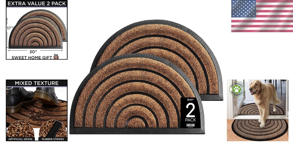 Functional 2 Pack Decorative Outdoor Mats - Stain Resistant & Water Resistant ‹ › ‹ › ‹ › ‹ › ‹ › ‹ › ‹ › ‹ › Functional 2 Pack Decorative Outdoor Mats Enhance your home with our exquisite 2 pack set of outdoor door mats, designed specifically to collect dirt and dust from your shoes while elevating your entrance's aesthetic appeal. With a combination of rubber stripes , artificial grass , and captivating patterns, these mats serve as the perfect addition to your backdoor or front door. Key Features: Stain-resistant and water-resistant materials ensure longevity and durability. Each mat features a large coverage area (30” x 17”) for optimal dirt collection. The 0.4-inch low profile design prevents mat jamming under doors. Rubber backing provides added safety and stability, even in high traffic areas. Versatile usage: ideal for front doors, back doors, laundry rooms, garages, or as camping welcome mats. Benefits: Keeps your floors clean, covered, and dry, eliminating dirt transfer. Stylish and functional design enhances your home's entryway. Effortless cleaning: simply spray with water and shake off, or vacuum/wash in warm water. Perfect for high-traffic areas, ensuring lasting performance. Welcoming design adds a touch of charm and sophistication to your entrance. Why Choose Our Decorative Outdoor Mats? Are you looking for a door mat that is both practical and stylish? Our Functional 2 Pack Decorative Outdoor Mats are just what you need! Made with high-quality materials, these mats not only effectively trap dirt and moisture but also beautify your entryway with their chic designs. Experience effortless cleaning and long-lasting use, making your home welcoming and immaculate. Don’t compromise on style or functionality - elevate your home with our outdoor mats today! Shipping Free & Fast Shipping - We offer free shipping to most of the USA with a normal delivery time of 3-10 businessdays. However, due to various situations, additional delivery time (up to 3 weeks) may be required for some items. Alternative Carriers - We may use alternative carriers (e.g. USPS, FedEx, UPS, etc.) to ensure your package arrives safely and on time. Due to the use of multiple carriers, we are unable to provide a tracking number automatically. Handling Time - Orders are processed and shipped within 1-5 business days of receiving cleared payment. Shipping Restrictions - Shipping to Alaska, Hawaii, Puerto Rico, Guam, and other US territories may incur shipping charges or delivery restrictions. Please contact us before ordering, or your order can be refunded/cancelled. State Restrictions - There may be restrictions based on your state of purchase. For example, certain items may not be shipped to California due to state regulations. Contact for Tracking Updates - If you require tracking updates or have any concerns about the delivery of your order, please feel free to contact us, and we will be happy to assist you. Return Please see our ebay return policy. We do not accept return on most products. This is to avoid customers mis-using ebay returns. All sales are final. Please be sure to check the return policy listed at the top of the listing. In rare cases, we may accept returns, if the buyer pays both ways shipping and 20% restocking fee. If you are un-sure of return policy of a particular item, please ask before buying. Payment We accept all major credit cards, PayPal, and Apple Pay for your convenience. Your payment information is secure and encrypted to ensure a safe and seamless transaction. Please complete your payment within 3 days of purchase to avoid any delays in shipping. Feedback Your feedback is extremely important to us. We strive to provide the best products and customer service possible. If you are satisfied with your purchase, please take a moment to leave us a positive review. If you have any concerns or issues with your order, please contact us before leaving negative feedback. We are committed to resolving any problems and ensuring your satisfaction. Contact Us If you have any questions or concerns, please feel free to reach out to our customer support team. You can contact us through the eBay messaging system. We are available Monday to Friday, 9:00 am to 5:00 pm EST, and we will do our best to respond to your inquiry within 24 hours. Buy it now and enjoy a pleasant shopping experience! UPC: Not Set Unit Quantity: 2.47 Room: Any Room,Laundry Room Material: Rubber,Polypropylene Features: Easy to Clean,Stain Resistant,Anti Slip,Moisture Barrier,Washable Department: Adults Theme: Welcome Brand: Unbranded Type: Doormat Color: Deep Brown Pattern: Round Shape: Rectangular Item Width: Not Set Item Length: Not Set MPN: Not Set Model: Not Set Size: 30 x 17 in Style: Farmhouse Pile Height: Low Pile Regional Design: Not Set Country/Region of Manufacture: Not Set Pile Type: Low Pile Weave: Handmade Era: 21st Century (2000-Now) Unit Type: Not Set Personalize: Not Set Personalized: Not Set