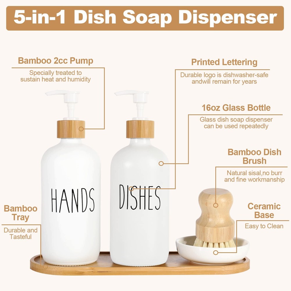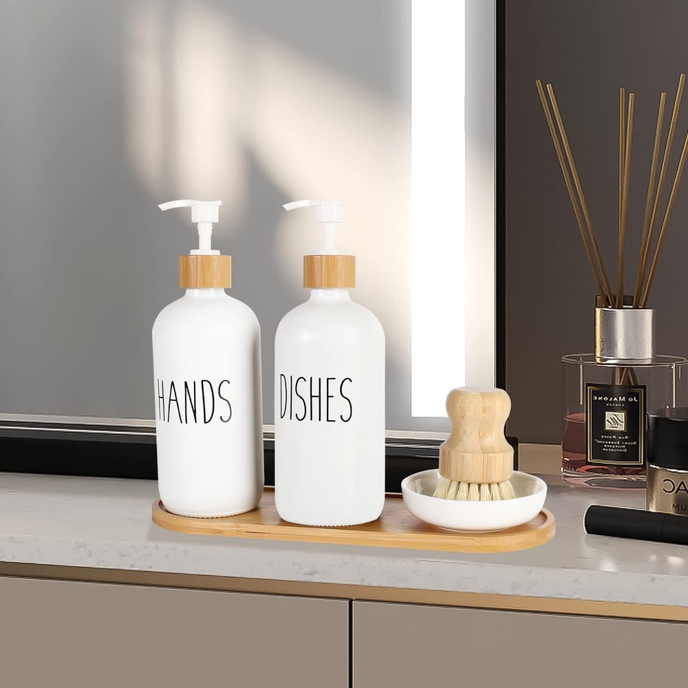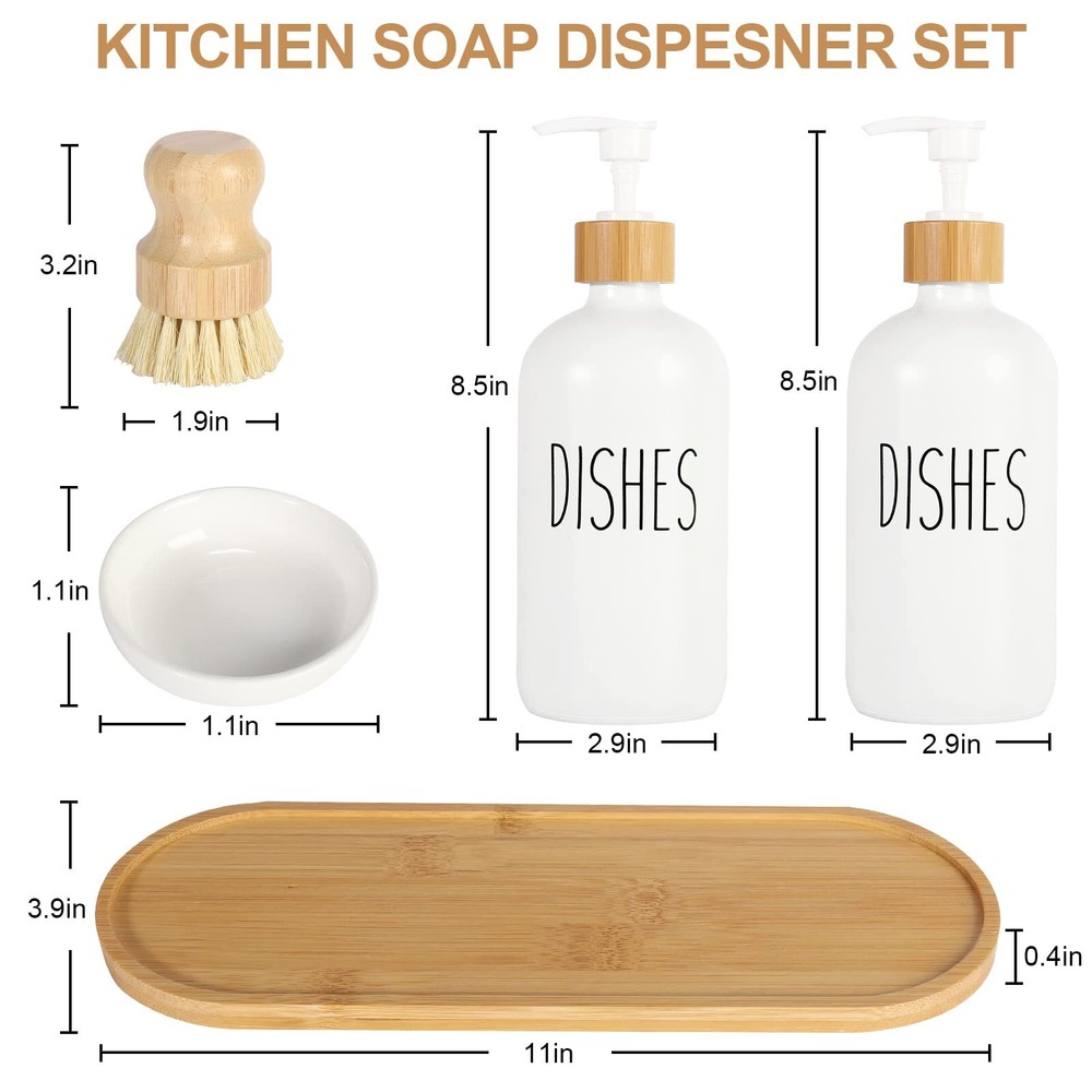 2 Pack Glass Soap Dispenser Set with Tray and Bamboo Dish Brush, Hand and Dish Soap Dispenser 16oz Kitchen Soap Dispenser Set Farmhouse Decor Soap Pump Bottle (White & White) 【GLASS SOAP DISPENSER WITH TRAY & BAMBOO DISH BRUSH】 This glass soap dispenser set would make a surprising difference in your kitchen. The package includes two 16oz dish soap dispenser, ceramic base, bamboo soap tray and a bamboo dish brush. And the bamboo dish brush would make your dishwashing job much easier and more convenient, meet your daily multiple needs. 【FARMHOUSE STYLE】This kitchen soap dispenser set with tray and dish brush would be the perfect antique and extremely practical decorations for your kitchen. Whether you're looking for any farmhouse decor for the kitchen or farmhouse soap dispenser, this hand and dish soap dispenser set will add charm, elegance and style to any kitchen. 【QUALITY CRAFTSMANSHIP】The hand and dish soap dispenser set is made of quality glass, can be used repeatedly for a long time. The bamboo dish brush is made of high-quality natural bamboo and durable bristles, which make the bamboo dish brush perfect for all kinds of cleaning jobs in kitchen such as cleaning dishes, bowls, pans, spatulas, etc. Best choice for ktichen cleaning job. 【EASY TO REFILL AND USE】Wide opening design, makes the soap dispenser for kitchen sink easy to refill. The pump of kitchen soap dispenser set is made of high-quality stainless steel, which would keep long-lasting beautiful bright. Press smoothly without being stuck. No worry about leakage! 【Multiple Application Scensrios】Suitable for dish soap, hand soap, lotion, body wash, shampoo and conditioner dispenser etc. The farmhouse decor kitchen soap dispenser set makes for an ideal housewarming, birthday and Christmas gift! SHIPPING Domestic Buyers - We have confidence in our products, but if you are not fully satisfied please contact us within 30 days of purchase and you will get full refund. - We ship within 3 business days of payment, usually sooner - We offer FREE shipping on all orders! - We only ship to the lower 48 states, no APO/FPO addresses or PO Boxes allowed International buyers – please note: Import duties, taxes, and charges aren't included in the item price or postage cost. These charges are the buyer's responsibility. - Please check with your country's customs office to determine what these additional costs will be prior to bidding or buying. * Order Cancellation Policy ** You can return a product for up to 30 days from the date you purchased it. 1. The seller reserves the right to cancel the special case only due to eBay cancellation fee. 2. The decision of seller is the final. 3. The seller will respond to the cancellation request within 2 business days. Please wait for the result of cancellation. 4. In case the cancellation is not completed by some reasons, the buyer can follow the options below to get the refund. 4.1 The buyer can reject the item when it arrives. 4.2 The buyer can send the item back to the seller within 30 days If the buyer receives item (USA Shipment ONLY). The seller will provide the FREE return label to the buyer when the buyer opens " Return Item" case on eBay by using the reason as "Change my mind" ONLY. 5. When buyer has placed the order. The order will be processed and completed by automatic warehouse system within 5 minutes. In case that buyer sends the cancellation request after 5 minutes of placing the order, the request will be rejected. **Sending direct message to cancel the order is not allowed for every case.* Return Policy For the return case - If buyer would like to return the items for refund or replacement, please CONTACT SELLER to receive the free return label from seller. The refund or replacement will be processed with the tracking number of return label which is provided by seller only. The other ways of return which are not approved by seller will not be processed for the refund or replacement.