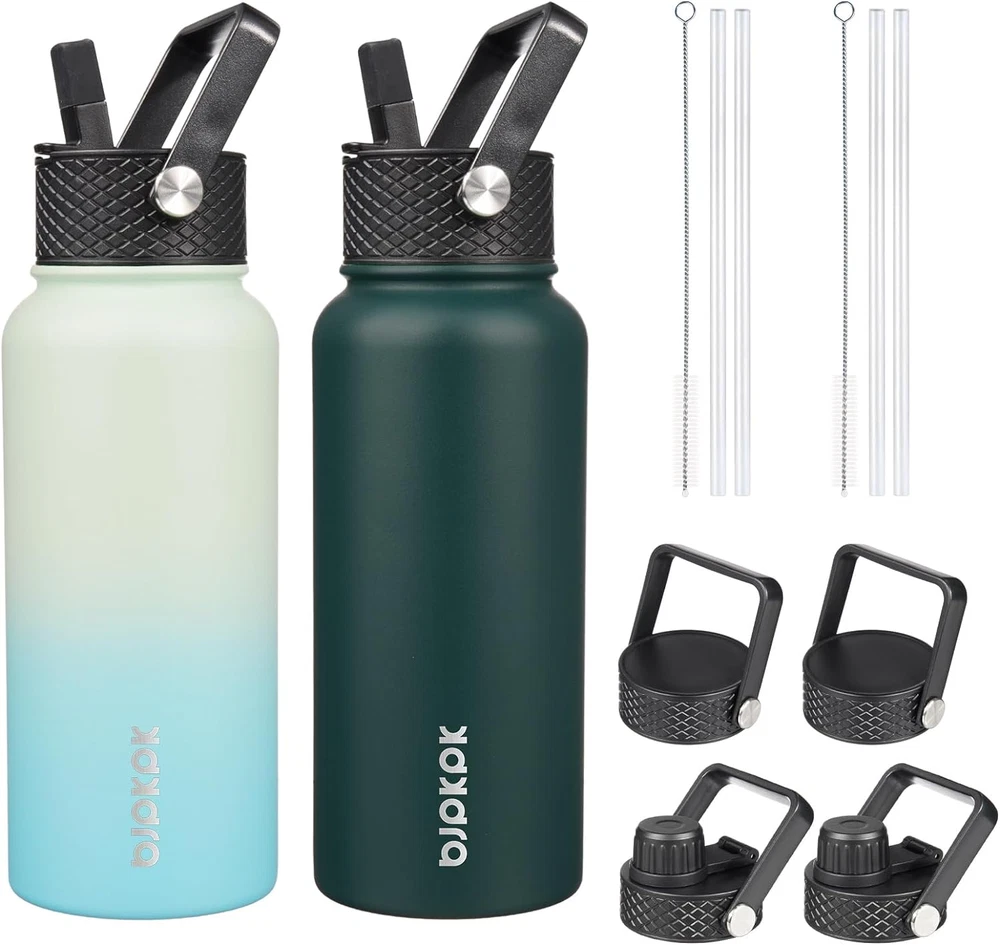 Store New Arrivals Add to Favorite View Feedback Contact 2 Pack Insulated Water Bottles with Straw Lids, 32Oz Stainless Steel Metal Water Bottle with 6 Lids, Leak Proof BPA Free Thermos, Cups, Flasks for Travel, Sports (Army Green+Mint) Description Item model number TK32oz-Army Green+Mint Capacity 32 Fluid Ounces Number of Items 2 Country of Origin China Theme Travel, School, Sport, Gym With Lid Yes Is Microwaveable No Cap Type Straw Cap Product Dimensions 3.5"W x 9.6"H Material Stainless Steel, Metal Model Name Insulated Water Bottle Included Components Straws X 4, Insulated Water Bottles X2, Straw Brushs X 2, Lids X 6 Age Range (Description) Adult Is Dishwasher Safe Yes Item Weight 1.86 pounds Special Feature Sweat Resistant, Wide Mouth, Double Wall Vaccum, Leak Proof, Dishwasher Safe Color Army Green+Mint Recommended Uses For Product Water Base Diameter 3.5 Inches Product Care Instructions Dishwasher Safe Size 32oz(950ml) FULLY EQUIPPED: BJPKPK 2 pack metal water bottles equipped 2 insulated water bottles, 6 lids, 4 straws and 2 straw brush to meet your every need. Flex removable lids for drinking smoothie or fruit drinks. Spout lids for hot water. Straw lids for iced beverages. All of the 6 lids are convenient to carry, BPA FREE and leak proof 2 PACK INSULATED WATER BOTTLE: BJPKPK insulated water bottles with straw lids use double-walled vacuum insulation technology to keep your beverage cold for up to 24 hours, or hot for up to 12 hours, make sure you enjoy your favorite beverages at the most suitable temperature all day PREMIUM MATERIALS: BJPKPK metal water bottles made with high-quality 18/8 food-grade stainless steel, ensuring its durability and rust-resistant quality. With a powder coating finish for a secure grip, a wide-mouth opening for easy ice filling and cleaning, this sports water bottle is perfect for office, gym, traveling, hiking and more SWEAT-FREE & REUSABLE: Say goodbye to those annoying sweat rings on your desk or in your car, our thermos water bottle is designed to be sweat-free! Get more out of your outdoor adventures with our reusable water bottle that can be refilled multiple times, reducing single-use plastic waste and promoting a sustainable lifestyle IDEAL PRESENT CHOICE: BJPKPK 2 pack water bottles comes with multiple colors combinations, and various sizes (18 oz, 22 oz, 27 oz, 32 oz, 40 oz) to choose from according to your need. Whether you're at the office or out and about, this thermos bottle is the perfect accessory to complement any outfit. It is also a great present for your loved ones to help them keep hydrated and healthier BJPKPK 2 Pack Insulated Water Bottles with Straw Lids, 32oz Stainless Steel Metal Water Bottle with 6 Lids, Leak Proof BPA Free Thermos, Cups, Flasks for Travel, Sports (Army Green+Mint) ABOUT US We offer the best prices around on high quality products. Our E-store includes media such as books, movies, music and games while offering electronics, toys, sporting apparel, clothing, tools, general home, garden items and more. SHIPPING We are always working hard to ensure your package arrives as soon as possible. Please understand that some factors like weather, high postal traffic, and the performance of shipping companies are outside of our control. We offer free shipping to the lower 48 states and ship within 2 business days of payment, usually sooner. We do not accept P.O. Boxes. Please provide a physical address. For shipping outside of the continental USA, we only use eBay's Global Shipping Program.The item is shipped to KY and then sent to the rest of the world. International customers are responsible for all duties and taxes. Continue to check out in order to calculate costs for shipping the item to your country. Messages regarding eBay's Global Shipping Program MUST be directed at eBay EXCLUSIVELY. RETURNS We offer a 30-Day Return Policy on items which you are not completely satisfied with. You have the option for a full-refund or an exchange of the item. No returns are available on items shipped outside of the USA. PAYMENT We accept PayPal. CONTACT US This page content is yet to come Please ad us to your favorite seller and visit again later Thank You CUSTOMER SATISFACTION We try our very best to make sure every customer is completely satisfied. If there's a problem, message us! We're happy to help. WE ACCEPT Copyright © 2021 AutoDS. | All Rights Reserved
