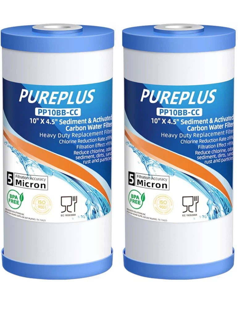 2 Pack PUREPLUS Water Filter Replacement Cartridge Activated Sediment Carbon
