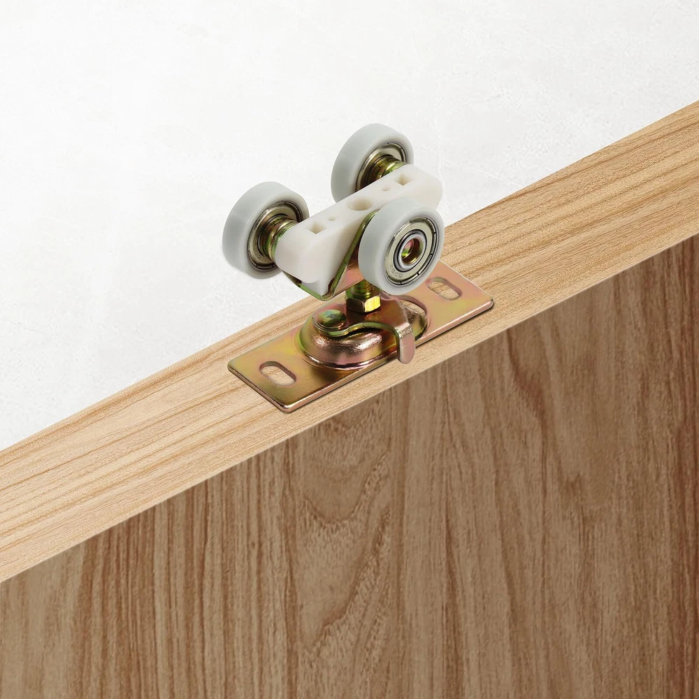 Pocket door rollers used for Johnson and other sliding closet doors Sliding door wheels is compatible with 100, 134F, 138F, 2610F Series sliding door Track. Package include: pocket door rollers *2, hanger plate *2, pocket door guide *2, door stopper *1, wrench *1, screws. Please refer to the pocket door track cross section of picture 3 before ordering. All the necessary mounting pocket door hardware is included for a quick and easy installation.