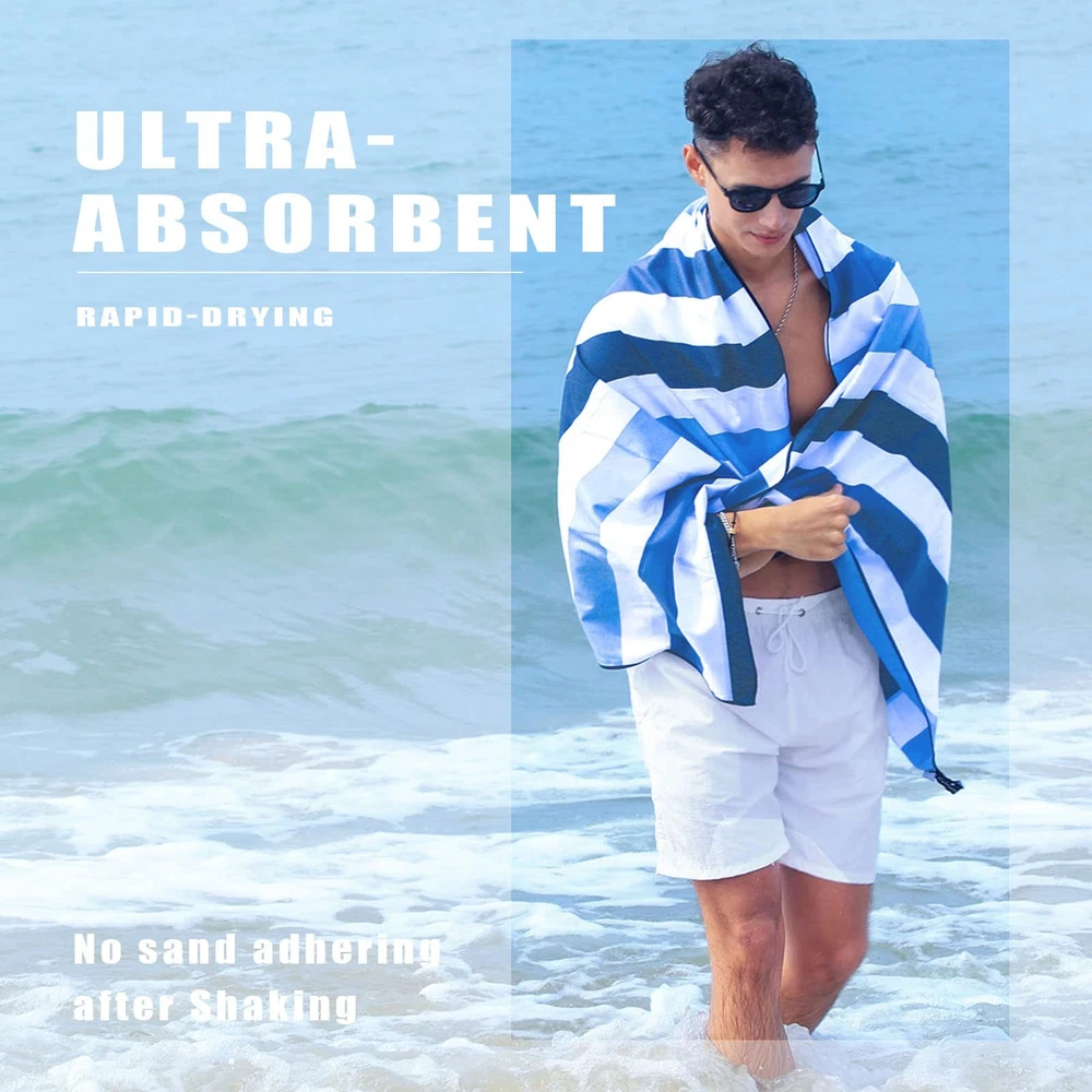 Absolutely love these beach towels! The microfiber material is incredibly soft, dries fast, and shakes off sand effortlessly. Perfect size for lounging, and the retro stripes add a stylish touch. Lightweight and compact, they’re ideal for travel or pool days. Highly recommend for anyone who hates dealing with heavy, sandy towels—these are a game-changer!