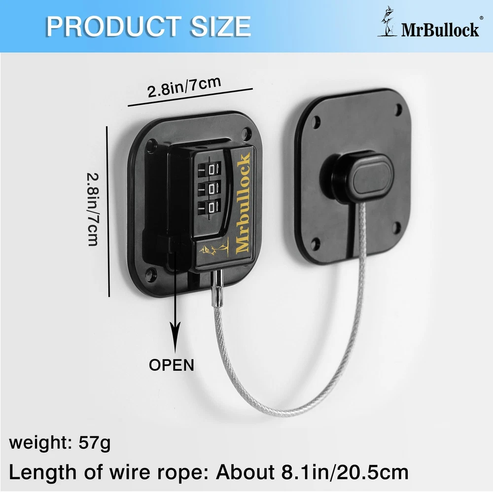 Fridge Lock No Keys Required:Upgraded refrigerator lock combination design. no need to search for keys or worry about losing keys. Just set the code and press the button to unlock the refrigerator. Save your time and make your life easier. Widely application: Our fridge door lock is not only suitable for freezer but also works great as cabinet lock, oven lock, and tool chest lock; can be used on side by side refrigerators and drawers. Child and Babyproofing:Children are curious about everything, and without parental care, they may come into with harmful substances or eat uncontrollably. At this time, our refrigerator and drawer locks can effectively solve your problem, keeping them away from harmful substances and more food. The Adhesive Extremely Strong:Our refrigerator lock come with high quality and big adhesive pads,which is tested to be very strong and can be reused for many times.no drill is needed! the initial password for the cabinet lock is (: 000) High-quality Material:The refrigerator safety lock is made of high-quality ABS+stainless steel+zinc alloy material, the multi-strand steel wire rope is twisted and thickened, it is strong and wear-resistant suitable for any scene.