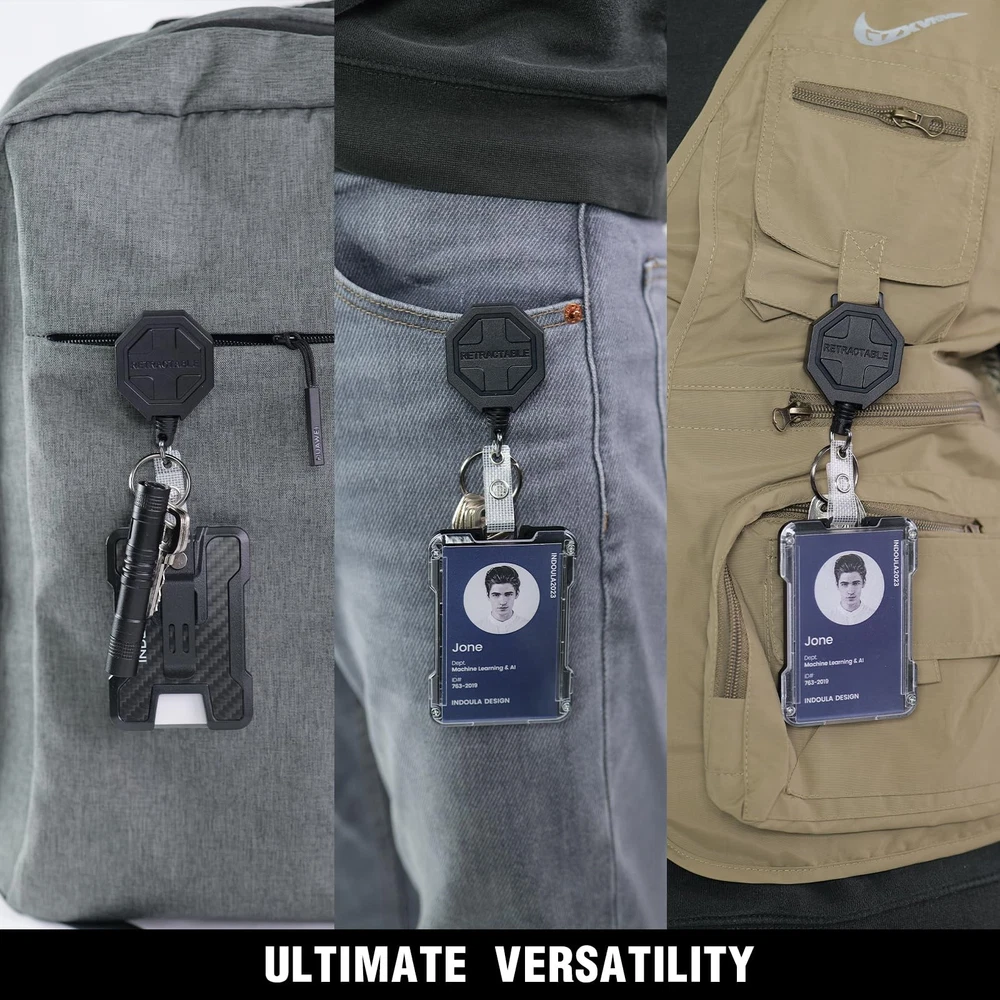 2 pcs Retractable keychain with 2 pcs black airtag holder/case 【Secure & Durable Combo】:retractable keychain and Airtag holder combo offers detachable design - use them together or separately! The steel cord and metal clip securely hold keys, badges without slipping. 【8 oz Retraction】:Engineered with a reinforced spring mechanism, this heavy duty badge reel supports most items (8oz/227g) like badges and most keys. The anti-slip cord stays taut even with frequent pulls. 【31.5" Extended Cord】:With a 31.5" steel cord, easily access doors, lockers, or scanners without removing your keys. The smooth retraction system prevents tangling, ideal for backpacks, belts or lanyards. 【Multi-Use & Versatile】:Attach the Airtag holder to valuables (bags, wallets) for anti-loss tracking, or clip the retractable keychain to belts/backpacks. Both units feature a swivel hook for 360° rotation - adapts to any angle! 【Trusted by Professionals】:2 pack set includes everything for work or travel: 2 retractable keychains + 2 Airtag cases. airTag retractable keychains backed by a 12-month - trusted by hospital staff, teachers, Office workers and outdoor enthusiasts.