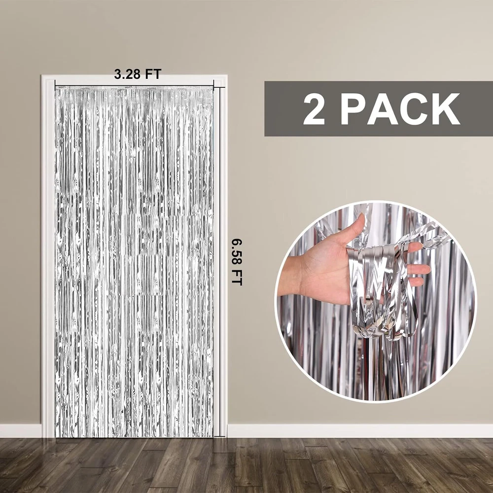 tinsel Foil Fringe Backdrop: 2Packs/Set, enough quantity for your party decoration. Each pack curtains size is 3.28 ft x 6.56 ft, enough length for decorate your party. Perfect accessories for decorating doors and walls. Celebration Party Decorations: You can use this shiny gorgeous tinsel foil fringe background to decorate your celebration party. Hang them on a carpeted end or wall as a backdrop,or it could be one entrance to the party. You can paired with an LED light, balloons, banners and various photo props on this backdrop. All the guests who come to bless you will feel your love and beauty and was remembered for having a great party! Material: The metallic tinsel backdrop is made of tinsel with shiny surface, durable material can be reused. Good for adding sparkle as decorations for parties. Applicable Scenes: The foil backdrop are wonderful finishing touch for any theme party such as birthday, baby shower, wedding, engagement, bridal shower, bachelorette, holiday celebration, halloween, graduation, anniversary, hollywood party, homecoming, christmas or new year, etc. Easy Installation: Paste or hang them on a smooth surfaces , It doesn't take a lot of effort to paste them, Just tear off the back of double-sided adhesive tape and paste them gently. Product Description Add to Cart Add to Cart Add to Cart Add to Cart Add to Cart Add to Cart Customer Reviews 4.4 out of 5 stars 357 4.4 out of 5 stars 357 4.5 out of 5 stars 70 4.5 out of 5 stars 70 4.4 out of 5 stars 357 4.4 out of 5 stars 357 Price $4.99 $ 4 . 99 $5.59 $ 5 . 59 $4.99 $ 4 . 99 $3.99 $ 3 . 99 $4.99 $ 4 . 99 $5.59 $ 5 . 59 Patterning Wavy Wavy Straight Straight Straight Straight PET Film Glitters Glitters Glitters Glitters Glossy Glossy Color Pink,Light Blue,Silver,Green,Purple Pink,Light Blue,Silver,Green,Purple Pink,Light Blue,Silver,Green,Black ,Red Pink,Light Blue,Silver,Green,Black ,Red Pink,White,Black,Rainbow Pink,White,Black,Rainbow