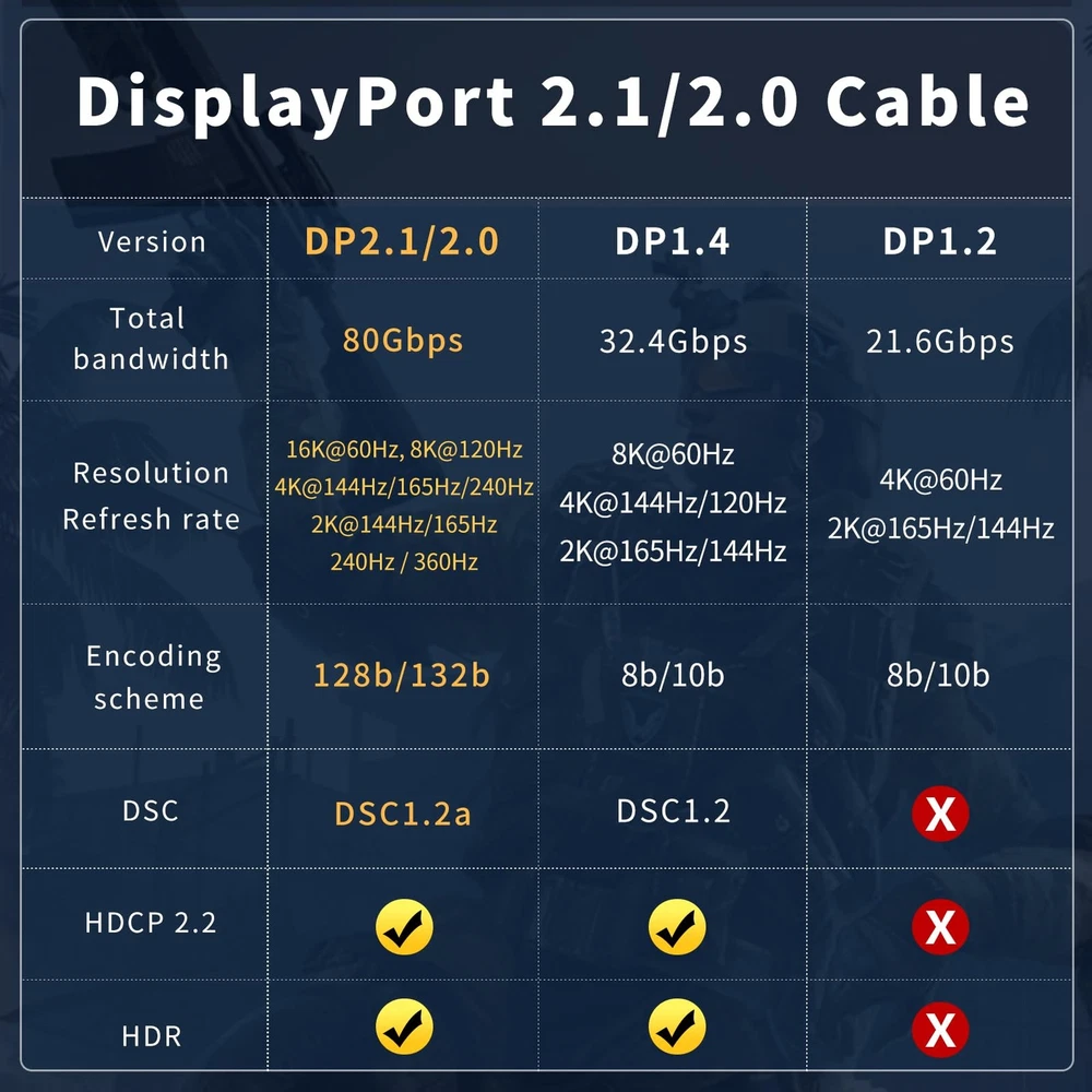 Premium eBay Listing Luxe Treasures Exceptional Quality, Exceptional Service VESA Certified DisplayPort 2.1 Cable 10ft 2Pack, 16K DP 2.0 Cable, Supports 80Gbps, 16K60Hz, 8K120Hz, 4K240Hz / 165Hz, 2K360Hz for 5090, 7900XTX, Gaming Monitor Product Showcase About This Item Why Choose This Product? Our items are carefully selected for their exceptional quality, design, and value. Each product undergoes rigorous quality checks before shipping to ensure your complete satisfaction. Outstanding Features Service Support: If there are any issues with DisplayPort Cable 2.1, we will provide after-sales service support. 80Gbps High Speed: The transmission rate of this nylon braided displayport cable 2.0 is up to 80Gbps. No delay and no signal loss. 3X faster than displayport cable 1.4. 16K DP 2.1 cable meets the VESA Standard and supports Dynamic HDR 4:4:4 / HDR 10 and HDCP 2.2. Plug and play. Works with DP, DP++, and DisplayPort++. FEC forward error correction. UHBR10 and UHBR13.5 supported. *Note: Please don't use the extension cord. 16K60Hz & 4K240Hz: displayport 2.1 cable support 16K60Hz with DSC, 10K60Hz, 8K120Hz/60Hz, 4K240Hz/165Hz/144Hz/120Hz, 2K360Hz. And flawless audio pass-thru for uncompressed digital 7.1, 5.1 or 2 channels. Upgraded Structure: dp 2.0 cable has a triple shielded & tinplate, it is highly resistance with EMI. The conductor is made of 26AWG OFC. Its has a strong nylon braided jacket, which is 10X more durable than PVC. Tolerance a 16,000+ bend lifespan. It can provides higher connectivity for the signal transmission. DP connector with no latch provides a secure connection. DP 24k gold-plated terminal can prevent oxidation and corrosion. Zinc alloy shell can accelerate heat dissipation. Compatibility: Unlock universal compatibility for your gaming setup. Our DisplayPort to DisplayPort 2.1/2.0 cable works with all standard DP ports, offering a seamless link between your powerful graphics card—be it a new RTX 50 series (5090D/5080/5070Ti/5070/4090/4080/4070Ti/3090/3080 Ti/3070) or AMD 7900—and your high-performance monitor from brands like compatible with Samsung Odyssey, Alienware, or ROG Swift. Enjoy G-Sync and FreeSync support for fluid gameplay. A Special Thank You We genuinely appreciate your business and trust in our products. Every purchase supports our commitment to bringing you exceptional items at fair prices. 100% Satisfaction Guaranteed Customer Support Have questions? Our dedicated support team is here to help! Message us through eBay's messaging system anytime. We pride ourselves on rapid responses — typically within 12 hours or less. Secure Payment Your transaction is protected through eBay's secure payment system. We accept: All transactions are securely processed through eBay's trusted payment system for your complete peace of mind. Premium Shipping We only ship to the address provided at checkout. Please verify your address before completing your purchase Orders are processed within 1-2 business day (excluding weekends and holidays) Delivery usually takes 3-5 business days We use trusted shipping services such as UPS, FedEx, and USPS Shipping is available only within the contiguous United States. We do not ship to Alaska, Hawaii, Puerto Rico, or PO Boxes If there are any shipping delays, please contact us for support Safe & Reliable Shipping Buyer Protection Hassle-Free 30-Day Returns If you're not completely satisfied, contact us within 30 days of delivery We'll provide a prepaid return label for your convenience Simply package the unused item securely and ship it back Once received, we'll process your full refund within 2 business days Quality Guaranteed Secure Shopping Thank you for visiting Luxe Treasures on eBay | Dedicated to Excellence