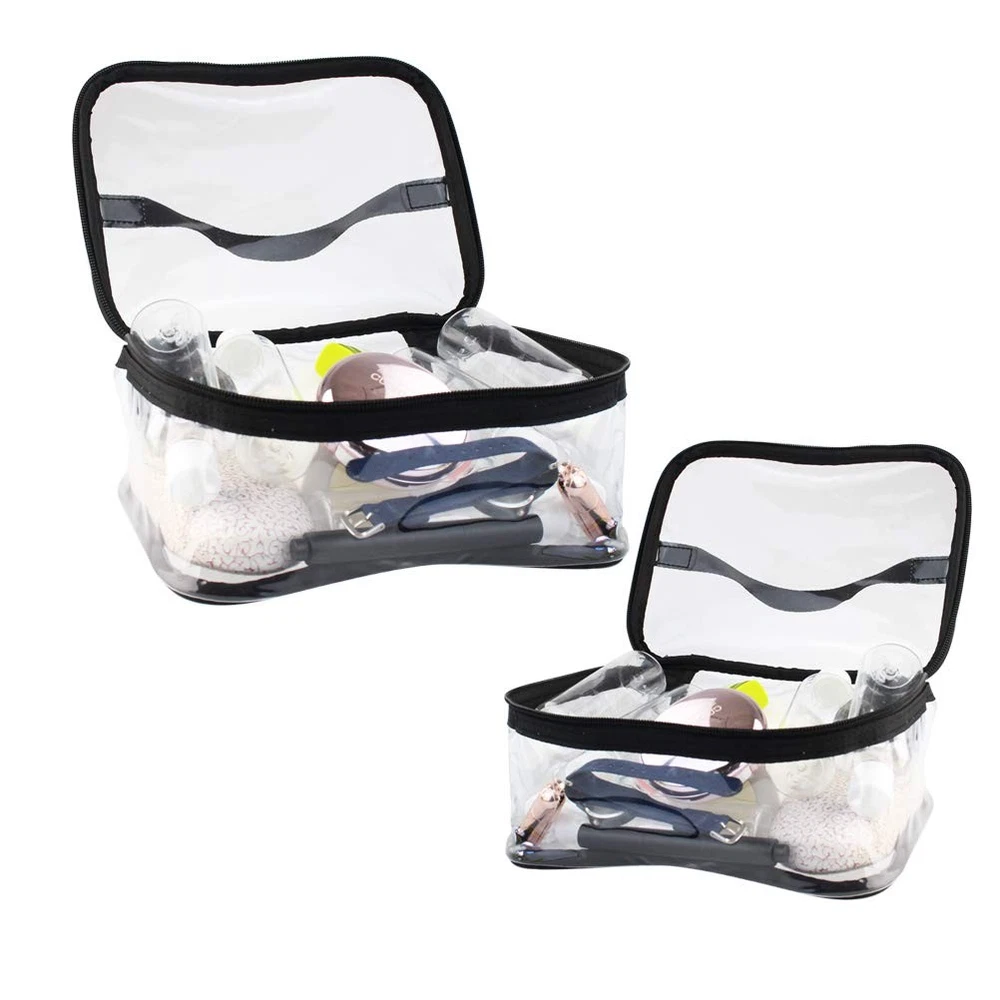 Wobe 2 Pack Portable Clear Makeup Bag Zipper Waterproof Cosmetics Bag Transparent Travel Storage Carry Pouch PVC Zippered Toiletry Bag Organizers With Handle for Vacation Travel, Bathroom Size: The size of the Clear Cosmetics Bag is about (L x W x H): large: 9.1 x 6.7 x 3.9 inches / 23*17*10cm; Medium: 8.3 x 5.9 x 3.5 inches / 21*15*9cm; Lightweight and Large capacity. Package: 1 x large toiletry organizer, 1 x mideum toiletry bags. PVC Material: These Zippered Toiletry Carry Pouches are made from sturdy and clear PVC material, along with large opening zipper on top make it easy to pack, can meet your requirement for various purpose. Uses: Can be used as storage bag, waterproof bag, gift bag, jewelry bag, general packaging, daily necessities packaging bag, cosmetics bag, travel bag, even stationery bag or schoolbag. It can be used for a wide range of small items, such as lipstick, lipstick, blush, makeup brush, eye shadow, etc. Make your dressing table neat and orderly. Transparent Travel Cosmetic Bag: Transparent design allows you to easily see the content and location of stored items, quickly find what you are looking for, without wasting time. These portable toiletry bags are lightweight, suitable for traveling, business trip, student trip and more. Waterproof & Easy to Clean: PVC material is waterproof. It is not easy to get wet like a cosmetic bag made of cloth. Very lightweight, sturdy, reusable. Multipurpose makeup travel bags are great organizing & storing solutions. Specifications: Dimensions(L x W x H): Large: 9.1 x 6.7 x 3.9 inches / 23*17*10cm; Middle: 8.3 x 5.9 x 3.5 inches / 21*15*9cm Material: PVC Color: Clear Features: Application: Can be used as storage bag, waterproof bag, gift bag, jewelry bag, general packaging, daily necessities packaging bag, cosmetics bag. You can use it as a travel bag, wash bag ,even the Stationery bag or school bag. Clear bag with handle is very portable. PVC material is waterproof. It is not easy to get wet, unlike a cosmetic bag made of cloth. Sturdy quality zipper: sturdy PVC clear bag with sturdy quality zipper. Make your dressing table neat and orderly. The clear bag keeps everything is organized and clear at a glance, easily find what you are looking for without wasting time, good for use for home and travel. Package includes: 1 x large toiletry organizer 1 x mideum toiletry bags. SHIPPING Domestic Buyers - We have confidence in our products, but if you are not fully satisfied please contact us within 30 days of purchase and you will get full refund. - We ship within 3 business days of payment, usually sooner - We offer FREE shipping on all orders! - We only ship to the lower 48 states, no APO/FPO addresses or PO Boxes allowed International buyers – please note: Import duties, taxes, and charges aren't included in the item price or postage cost. These charges are the buyer's responsibility. - Please check with your country's customs office to determine what these additional costs will be prior to bidding or buying. * Order Cancellation Policy ** You can return a product for up to 30 days from the date you purchased it. 1. The seller reserves the right to cancel the special case only due to eBay cancellation fee. 2. The decision of seller is the final. 3. The seller will respond to the cancellation request within 2 business days. Please wait for the result of cancellation. 4. In case the cancellation is not completed by some reasons, the buyer can follow the options below to get the refund. 4.1 The buyer can reject the item when it arrives. 4.2 The buyer can send the item back to the seller within 30 days If the buyer receives item (USA Shipment ONLY). The seller will provide the FREE return label to the buyer when the buyer opens " Return Item" case on eBay by using the reason as "Change my mind" ONLY. 5. When buyer has placed the order. The order will be processed and completed by automatic warehouse system within 5 minutes. In case that buyer sends the cancellation request after 5 minutes of placing the order, the request will be rejected. **Sending direct message to cancel the order is not allowed for every case.* Return Policy For the return case - If buyer would like to return the items for refund or replacement, please CONTACT SELLER to receive the free return label from seller. The refund or replacement will be processed with the tracking number of return label which is provided by seller only. The other ways of return which are not approved by seller will not be processed for the refund or replacement.