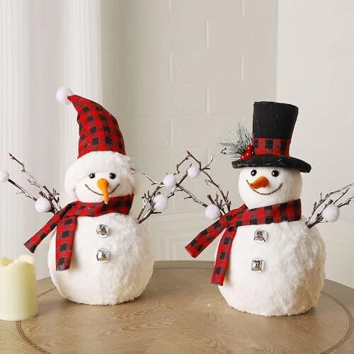 Menu 1. We require immediate payment. 2. We currently accept payment via eBay managed payments only. 3. Once payment is cleared, we will dispatch your shipment within 1-3 business days. Please refer to the "Shipping" tab for more information regarding shipping speed to your destination. 2 Packs Christmas Snowman Decorations, 15.4" H Snowmen Wearing Buffalo Check Scarfs & Hats, Xmas Tabletop Ornaments for Mantel Fireplace Window Sill Holiday Decor Product description SET OF 2 ORNAMENTS: Christmas ornaments are shaped in the appearance of adorable snowman made of lightweight foam inside and covered in soft velvet fabric, which are 100% handmade with skilled craftsmanship so the details may differ one to another. ADORABLE SNOWMAN: The snowman shelf sitters are in soft fluffy white, giving them real snow-made looks. Both snowmen wear classic black and red checked hats and scarves. One hat of them had a thin wire inside that you could have a shape by your liking. The tinkle bells adorned on their chests as buttons can ring a silvery tinkle sound add them more loveliness. STAND WELL: Separately measured 6.9 x 15 x 15.4 inch and 6.9 x 15.4 x 11.8 inch in dimension, snowman ornaments have very flat bottom, allowing them to stand firmly on any even surfaces for festive display to highlight your Xmas and winter decoration. FABULOUS CHRISTMAS DECOR: Pine needles, pine cones and red berries adorned add great winter touch. The branches on their bodies seem to be their open arms, embracing winter and the coming Christmas season. People will own good moods once they see the bright smile on their faces. VERSATILE APPLICATION: Place the two snowman ornaments in your living room, kitchen, tabletop, study, shelves, window sills and more to add great winter and holiday touch. In addition to a decoration, they can also be gifts for your kids, friends and parents. PLEASE MESSAGE US IF YOU HAVE ANY OTHER QUESTIONS, AND MANY THANKS FOR READING ALL OF THIS. Copyright ©#. All Rights Reserved.