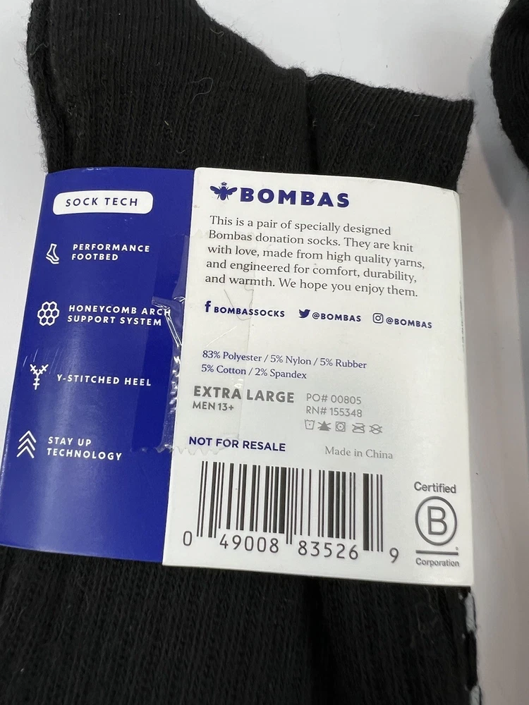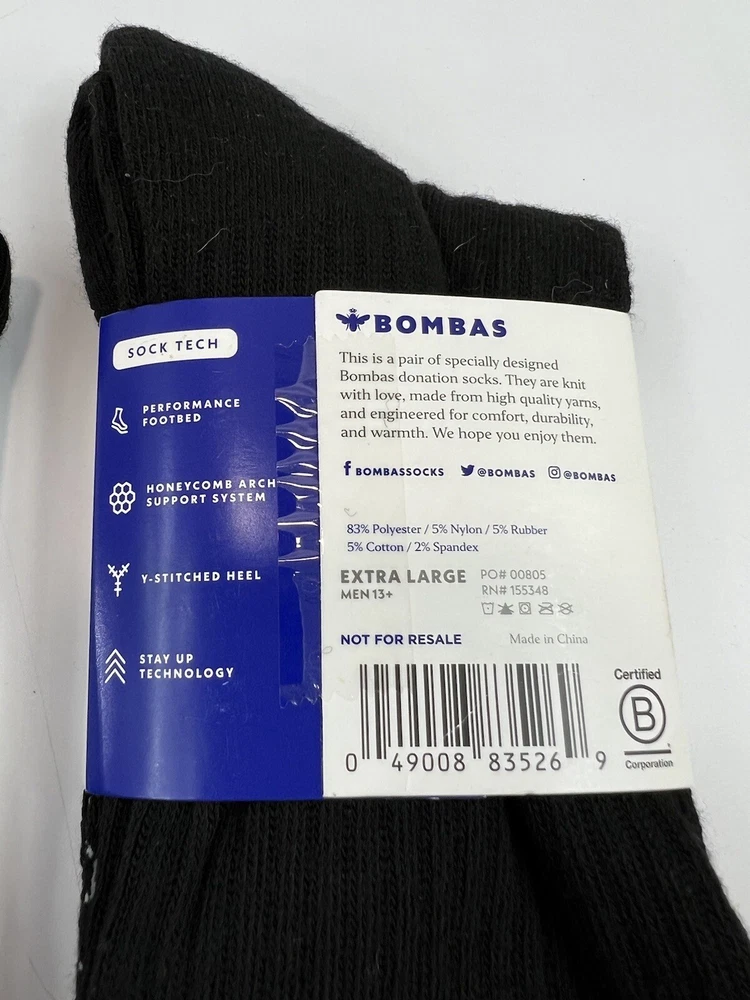 Country/Region of Manufacture:ChinaNumber in Pack:2 PairsCharacter:noneSize:XLDepartment:MenStyle:Athletic SocksSock Length:Over the CalfMaterial:PolyesterPersonalize:NoPerformance/Activity:everydayHandmade:NoFeatures:LightweightBrand:BombasType:SocksPattern:SolidMPN:155348Theme:ModernColor:BlackSize Type:RegularToe Style:Full Toe