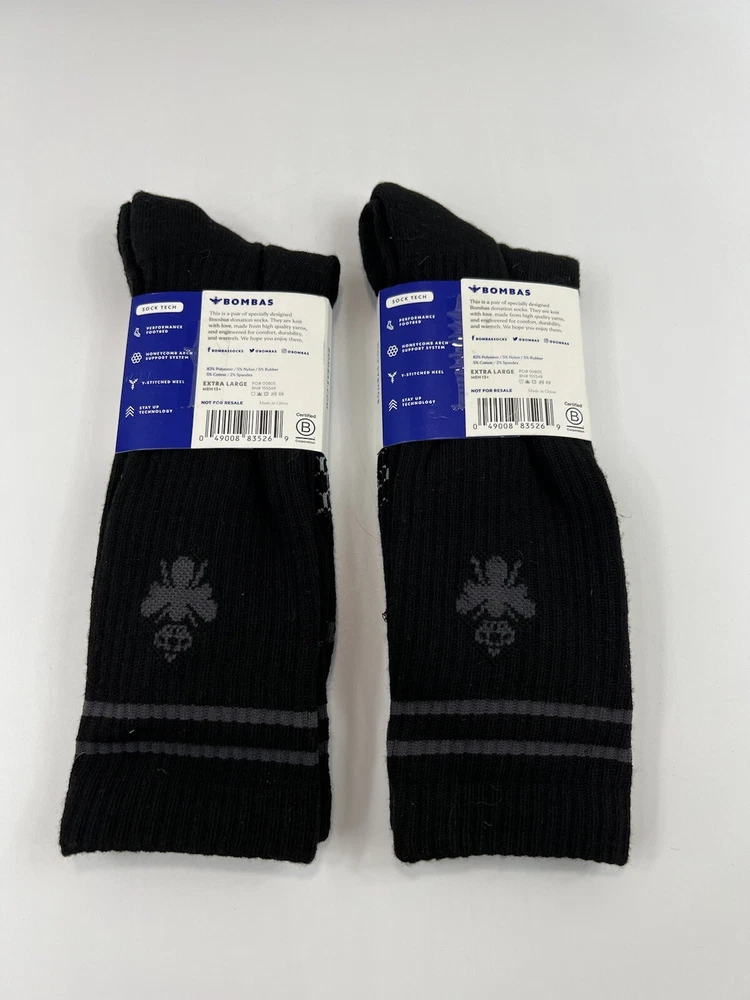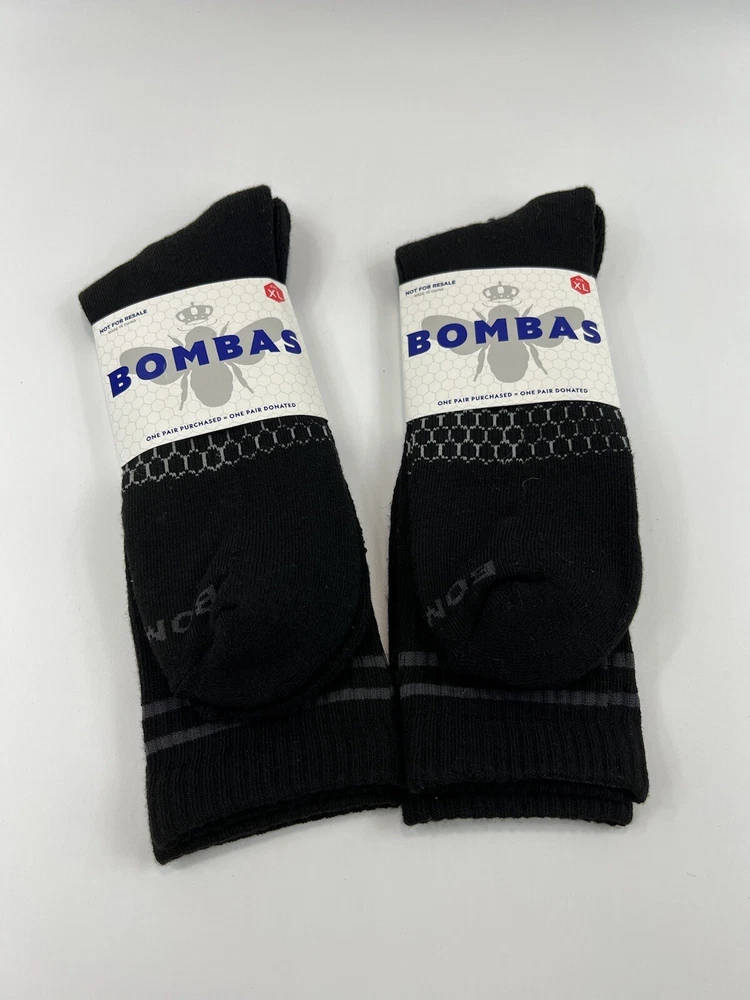 2 Pairs Bombas Men's X Large Mens Black Calf Socks