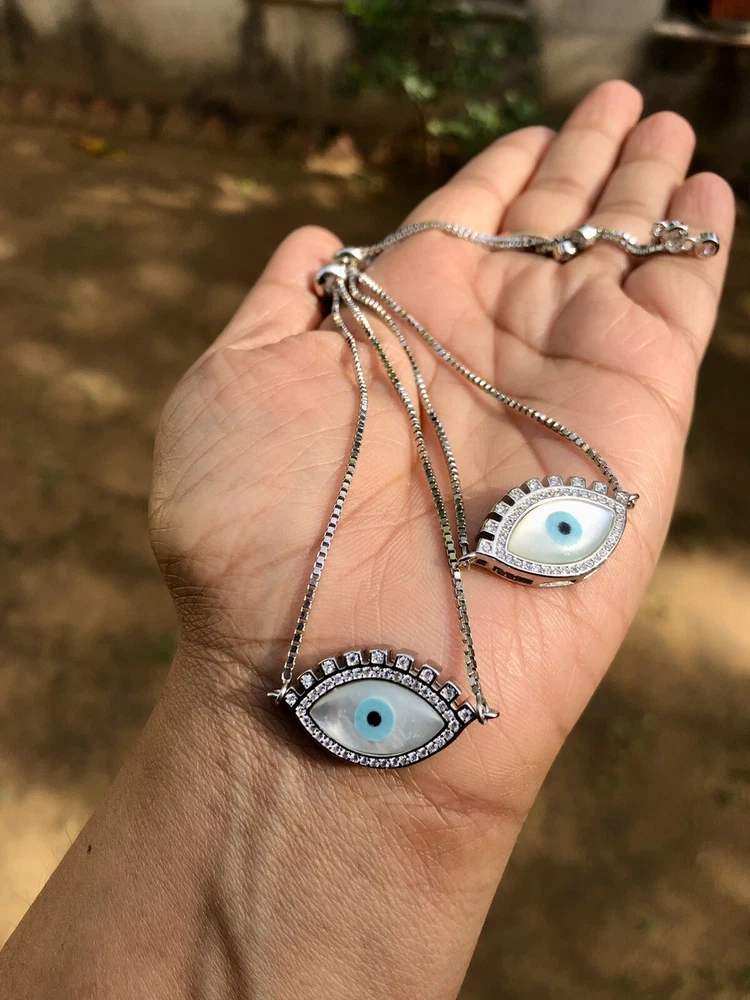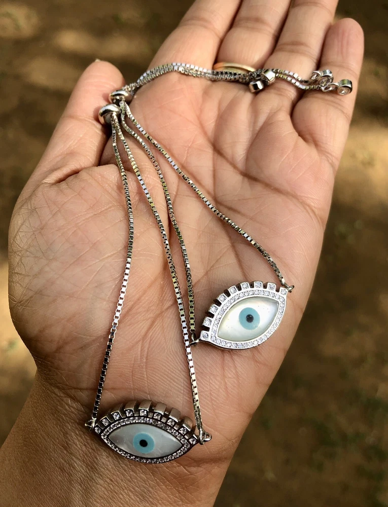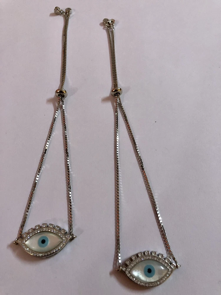 Artisan Crafted 925 Silver Evil Eye Protection Anklet, Amulet Nazariya, Mother of Pearl 2 Pc Jewelry, Handmade, Handcrafted Very High End, high polish, White Gold Plated Adjustable Anklet Anklet for Feet Round Shape with Cz in between Evil Eye Anklet for women, girls. Sterling silver 925 metal Weight in grams as shown in the image Evil eye charm, evil eye Anklet, protection charm Anklet, protection Anklet, Gift for daughter, gift for daughter in law, gift for her, gift for mom, gift for beloved, jewelry “Our products are handcrafted from the finest .925 Sterling Silver and rarest precious and semi-precious gemstones available while subscribing to the highest standards of excellence in craftsmanship. Slight irregularities and variations in silversmith work or in natural stone colors and inclusions are characteristic of the uniqueness and individual handcraftsmanship of the product and are not be considered defects. Colors, shapes, sizes and weights may vary a bit since these are all exclusively handcrafted pieces and no two pieces are identical like casted jewelry."
