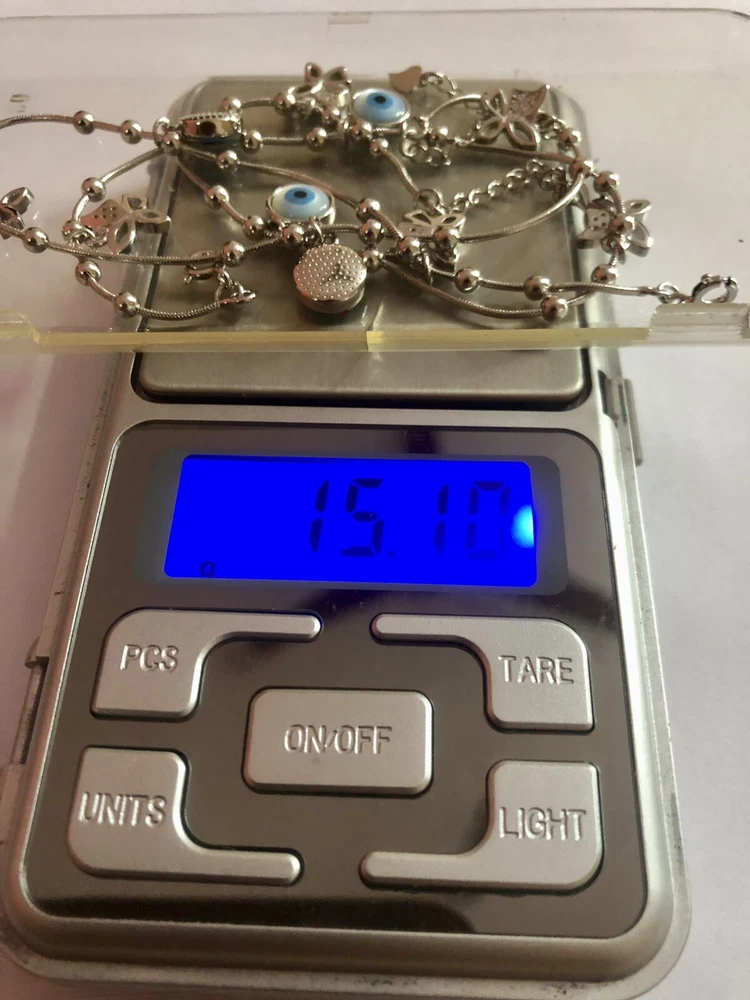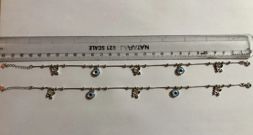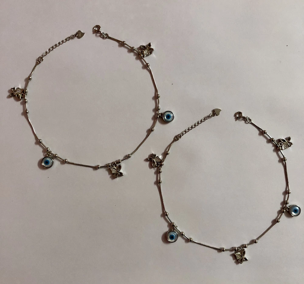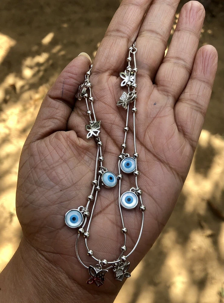 Artisan Crafted 925 Silver Evil Eye Protection Anklet, Amulet Nazariya, Mother of Pearl 2 Pc Jewelry, Handmade, Handcrafted Very High End, high polish, White Gold Plated Adjustable Anklet 10 inch + 1 inch extension Anklet for Feet Butterfly Shape with Cz in between Evil Eye Anklet for women, girls. Sterling silver 925 metal Weight in grams as shown in the image approximately 15 grams. Evil eye charm, evil eye Anklet, protection charm Anklet, protection Anklet, Gift for daughter, gift for daughter in law, gift for her, gift for mom, gift for beloved, jewelry “Our products are handcrafted from the finest .925 Sterling Silver and rarest precious and semi-precious gemstones available while subscribing to the highest standards of excellence in craftsmanship. Slight irregularities and variations in silversmith work or in natural stone colors and inclusions are characteristic of the uniqueness and individual handcraftsmanship of the product and are not be considered defects. Colors, shapes, sizes and weights may vary a bit since these are all exclusively handcrafted pieces and no two pieces are identical like casted jewelry."