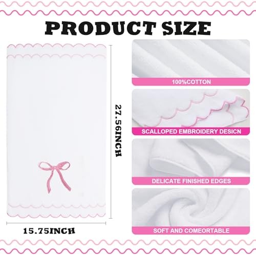 Return Policy Fast Delivery Trusted seller 2 Pcs Coquette Bow 100% Cotton Hand Towels for Bathroom Scalloped Hand Towels 16 * 27 Inch Embroidered Decorative 500 GSM Soft Absorbent Bath Towel for Spa Yoga Hotel Sport (Pink) Product Description Value Set: 2 packs hand towels are contained in the set, with delicate designs that makes them beautiful and practical accessories for cleaning and drying Cute Design:Our hand towels are embroidered with pink bow, look very exquisite and cute; The feature of scalloped and embroidered edges distinguishes it with a fashionable charm; Please note: the hand-cut edges may display a bit of fringe, but it doesn't affect normal usage Ideal Size: Each hand towel is 15.75 x 27.56 Inch, proper size for drying, cleaning, cooking and other uses High quality materials: Made of premium cotton, machine washable and can be dried. Soft and reusable, these towels will not scratch your hands, face, body, etc Multipurpose Usages: designed for your convenience, these hand towels set are effortlessly easy to wash; The towels are surface smooth, ensuring they retain their softness even after countless machine washes; Ideal for a variety of settings, including spa, poolside, bathroom, Beach, salon, college dorm room or the gym; A must-have addition to your travel or home, these towels help you maintain your personal hygiene Shipping Returns Payment Shipping Shipping is FREE to all addresses other than APO/PO boxes in the lower 48 states. All our stock ships from US-based warehouses. Shipped via USPS or UPS (depending on location and package weight) Unless stated otherwise, all orders will ship within 24-72 hours of your payment being processed. Check our feedback to see the great reviews of FAST shipping we offer. Returns Seller does not accept returns Payment We currently accept payment via eBay managed payments only. Once payment is cleared, we will dispatch your shipment within 1-3 business days. Please refer to the "Shipping" tab for more information regarding shipping speed to your destination.