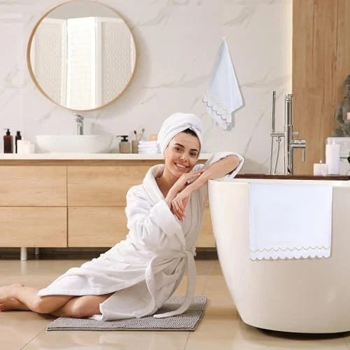 Return Policy Fast Delivery Trusted seller 2 Pcs Coquette Bow 100% Cotton Hand Towels for Bathroom Scalloped Hand Towels 16 * 27 Inch Embroidered Decorative 500 GSM Soft Absorbent Bath Towel for Spa Yoga Hotel Sport (Brown) Product Description Value Set: 2 packs hand towels are contained in the set, with delicate designs that makes them beautiful and practical accessories for cleaning and drying Cute Design:Our hand towels are embroidered with brown, look very exquisite and cute; The feature of scalloped and embroidered edges distinguishes it with a fashionable charm; Please note: the hand-cut edges may display a bit of fringe, but it doesn't affect normal usage Ideal Size: Each hand towel is 15.75 x 27.56 Inch, proper size for drying, cleaning, cooking and other uses High quality materials: Made of premium cotton, machine washable and can be dried. Soft and reusable, these towels will not scratch your hands, face, body, etc Multipurpose Usages: designed for your convenience, these hand towels set are effortlessly easy to wash; The towels are surface smooth, ensuring they retain their softness even after countless machine washes; Ideal for a variety of settings, including spa, poolside, bathroom, Beach, salon, college dorm room or the gym; A must-have addition to your travel or home, these towels help you maintain your personal hygiene Shipping Returns Payment Shipping Shipping is FREE to all addresses other than APO/PO boxes in the lower 48 states. All our stock ships from US-based warehouses. Shipped via USPS or UPS (depending on location and package weight) Unless stated otherwise, all orders will ship within 24-72 hours of your payment being processed. Check our feedback to see the great reviews of FAST shipping we offer. Returns Seller does not accept returns Payment We currently accept payment via eBay managed payments only. Once payment is cleared, we will dispatch your shipment within 1-3 business days. Please refer to the "Shipping" tab for more information regarding shipping speed to your destination.