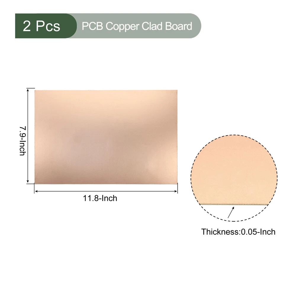 Document MULTIPURPOSE - Our blank circuit boards are great for your various electronic hobbies, such as etching, making models, testing, circuit projects, etc.WHAT YOU GET - The package comes with 2 Pcs copper clad board that measures 300mmx200mmx1.2mm(L*W*H).RELIABLE MATERIAL - The PCB board is made of FR4 glass fiber, copper-plated surface, durable and stable, with good adhesion of the copper to the fiberglass (no peeling or chipping).SPECIAL DESIGNED - The blank PCB is specially designed for making your own PCB circuit boards or making signs for your business.KINDLY NOTE - The boards may come with surface marks or scratches but don't affect performance. 2 Pcs PCB Copper Clad Board, Single-Sided Circuit Boards (300mmx200mmx1.2mm) MULTIPURPOSE - Our blank circuit boards are great for your various electronic hobbies, such as etching, making models, testing, circuit projects, etc. WHAT YOU GET - The package comes with 2 Pcs copper clad board that measures 300mmx200mmx1.2mm(L*W*H). RELIABLE MATERIAL - The PCB board is made of FR4 glass fiber, copper-plated surface, durable and stable, with good adhesion of the copper to the fiberglass (no peeling or chipping). SPECIAL DESIGNED - The blank PCB is specially designed for making your own PCB circuit boards or making signs for your business. KINDLY NOTE - The boards may come with surface marks or scratches but don't affect performance. Hot Item Payment 1.We accept eBay payment . 2.Payment must be received within 7 business days of auction closing. Shipping 1.We ship to your eBay or Paypal address. Please make sure your eBay and Paypal address is correct before you pay. 2.Items will be shipped within 1-3 business day when we received payment. 3.Delivery time depends on destination and other factors. Description Policy 2 Pcs PCB Copper Clad Board, Single-Sided Circuit Boards (300mmx200mmx1.2mm) MULTIPURPOSE - Our blank circuit boards are great for your various electronic hobbies, such as etching, making models, testing, circuit projects, etc. WHAT YOU GET - The package comes with 2 Pcs copper clad board that measures 300mmx200mmx1.2mm(L*W*H). RELIABLE MATERIAL - The PCB board is made of FR4 glass fiber, copper-plated surface, durable and stable, with good adhesion of the copper to the fiberglass (no peeling or chipping). SPECIAL DESIGNED - The blank PCB is specially designed for making your own PCB circuit boards or making signs for your business. KINDLY NOTE - The boards may come with surface marks or scratches but don't affect performance. Hot Item Payment 1.We accept eBay payment . 2.Payment must be received within 7 business days of auction closing. Shipping 1.We ship to your eBay or Paypal address. Please make sure your eBay and Paypal address is correct before you pay. 2.Items will be shipped within 1-3 business day when we received payment. 3.Delivery time depends on destination and other factors.